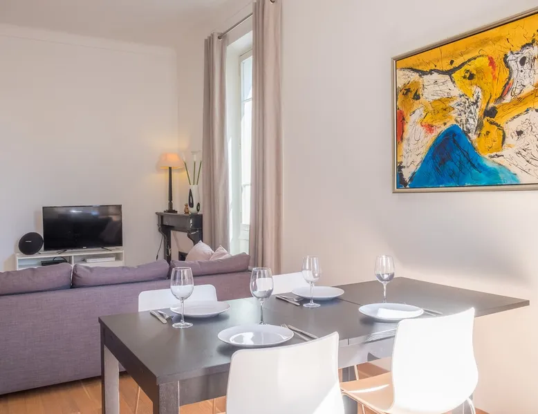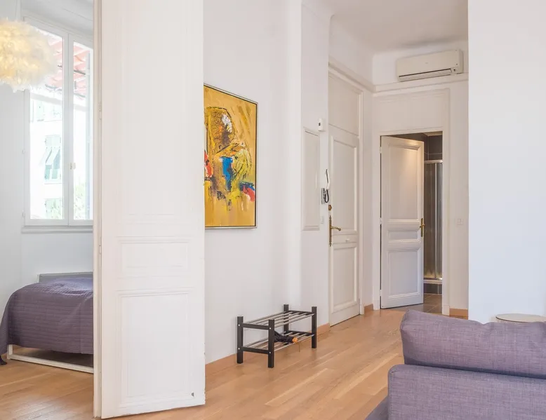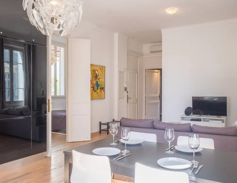Spacious Bourgeois style apartment with high ceiling, central location The space Very beautiful and spacious Bourgeois style apartment with high ceiling and windows to bring in lots of natural light. Located on the edge of the old town (Le Suquet) in the center of Cannes with only 5 min to Palais des Festivals and less then 10 min to the beach, this is an ideal apartment both for holiday and congress. Walking distance to everything. You have two bedrooms with a double bed in each. To one of the bedrooms you have en-suite bathroom with bathtub. There is also a second bathroom with shower. If you need additional bed space, the sofa in the living room can be converted into a double bed. Dinner table for six+ persons. The apartment is best suited for a family with one or two children, or for two couple on holiday together. Fully equipped kitchen with washing machine. Individual air conditioning in all rooms. A small balcony offers views of the Marché Forville, one of three food markets in Cannes, and further out to the Vieux Port (old port) and the Mediterranean. The house and the apartment was built at that time one had servants so there is also a second balcony, which was originally the kitchen entrance. Here you can sit and enjoy the afternoon and evening sun before it’s time to head out in Cannes nightlife. This is the place to stay if you prefer the old town and appreciate the charm of traditional apartments with modern comfort. The apartment is situated on the second floor, without elevator. Distances (by foot) - Beach: 7 min - Palais des Festivals: 5 min - Train station and bus station for the airport coaches: 7 min - Restaurant: Just around the corner. - Shops for essentials and grocery: Just around the corner. The nearest parking garage is P02 - Parking Suquet Forville and is located next door to the apartment, at 6 Rue Forville. Other things to note If you rent the apartment for a business trip, we have more flexible check-in / check-out times than what is specified by default. Registration Details 06029004313DP