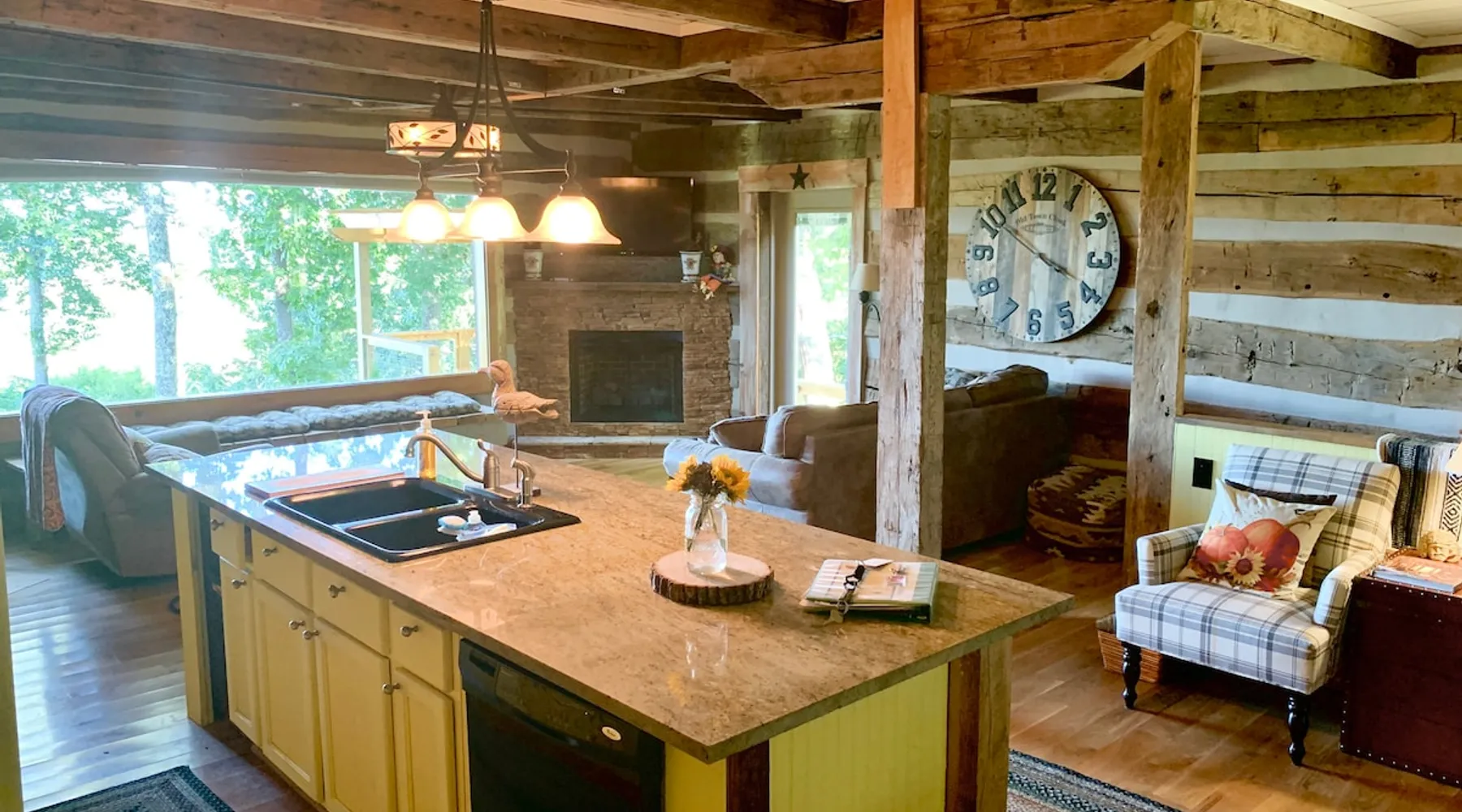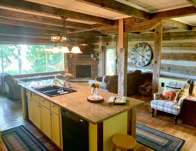 Almost Heaven, a historic log cabin with all the updated amenities including a deck with a spectacular view of Center Hill Lake. This authentic log cabin has beautiful mountains and lake views, serve as a backdrop to a large 2 level deck with a pergola, outdoor seating, fire pit and grilling year around. You have the best of both worlds with all the comforts of home and spectacular sunrise and sunsets on the lake, just a short drive from Nashville and pet friendly. The space This is our second home and we spend as much time here as we can. We invite you to enjoy this amazing unique home and look forward to your return trips. This historic authentic home has plenty of exposed white oak beams to maximize the spectacular views. The beautiful mountains and lake serve as a backdrop to a large deck with a pergola, outdoor seating, dining and grilling year around. Located 65 miles away from Nashville makes the location and the cabin a perfect match. The Interior of the cabin features 3 bedrooms, 2.5 baths, a kitchen/living room open concept, cozy fireplace with a monster picture window to take in the amazing view of the lake and mountains. You can have the best of both worlds with all the comforts of home and spectacular sunrise and sunsets on the lake, just a short drive from Nashville. The cabin has nice modern features including a modern kitchen, and wi-fi/cable/smart tv's through out the home. The dining room is set up in the beautiful sunroom, which has an amazing view and a custom hand-made table that seats 14. The community swimming pool, exercise room and pavilion are also available for your enjoyment and is located just minutes from the cabin. Hidden Harbor Marina is just a 10 minute drive and gives you access to all lake activities including fishing, pontoon, wave runners and house boats available year around for daily rentals. More Info about the cabin history and reconstruction: The Sunrise Point cabin was built outside the Chattanooga area utilizing the joint method of construction indicates it was built in 1820's. The logs are of dense American white oak, which was the preferred Lumber due to its strength, durability and size. The cabin was tagged and moved to Center Hill Lake Tennessee. A new concrete walk out basement was built to the exact specifications of the cabin. The basement is constructed of think outer layers of rigid insulation and a rebar and concrete inner core. The logs were rebuilt using a specialized cabin restoration company, the same people that dismantled it. The roof is constructed with heavy panels and there are double glazed windows throughout the home. Guest access You will have access to the entire home. We do have several locked closets with our personal belongs. The kitchen has spices and other cooking stuff available for your use, if you use something a lot please replace. Other things to note There is a Guest book that explains many of the quirks about this home. There are 3 different gas heating areas and each one is set a little bit differently so please use the books to understand each one.