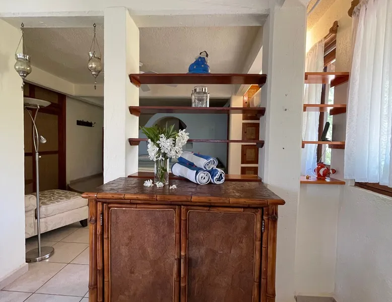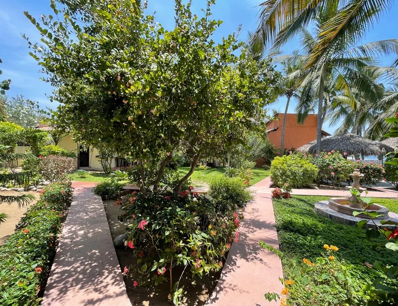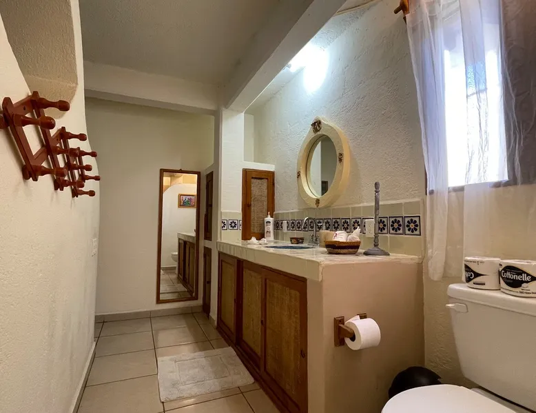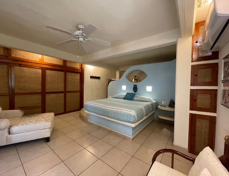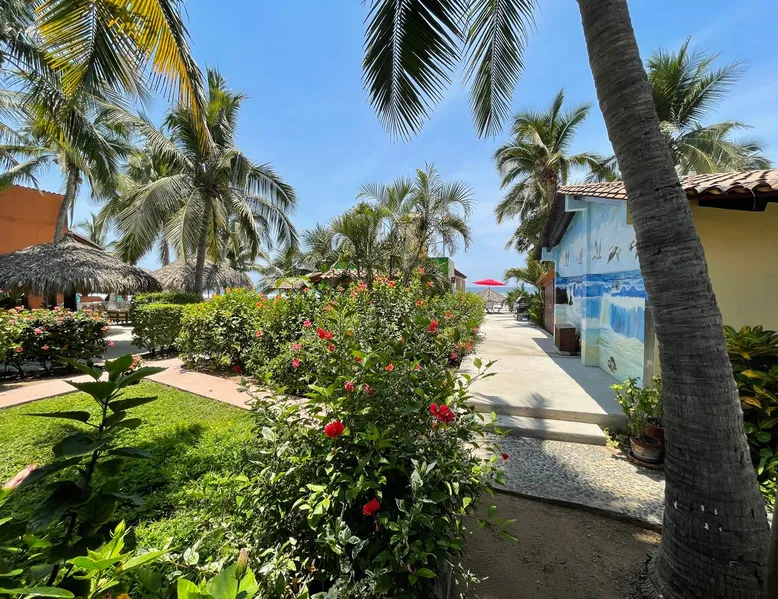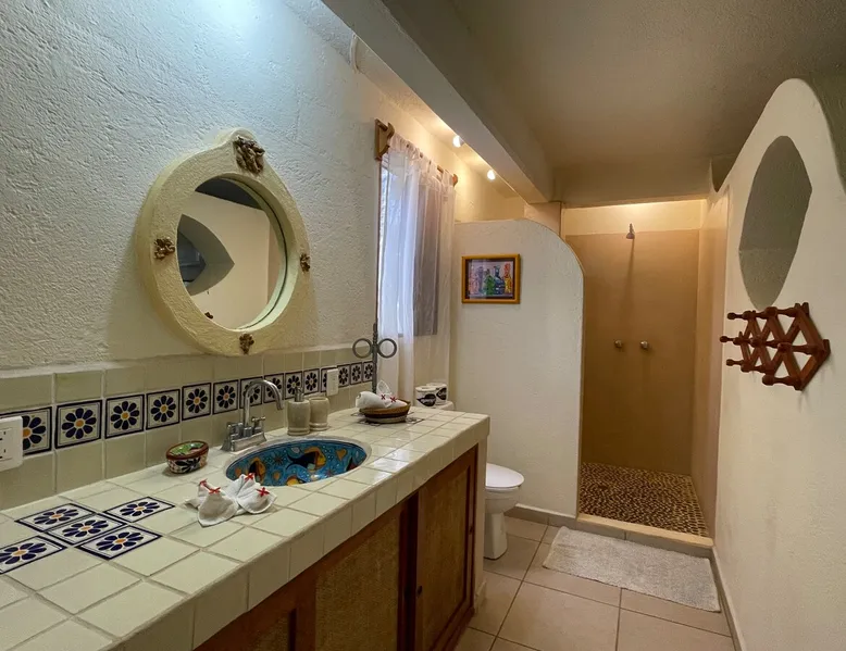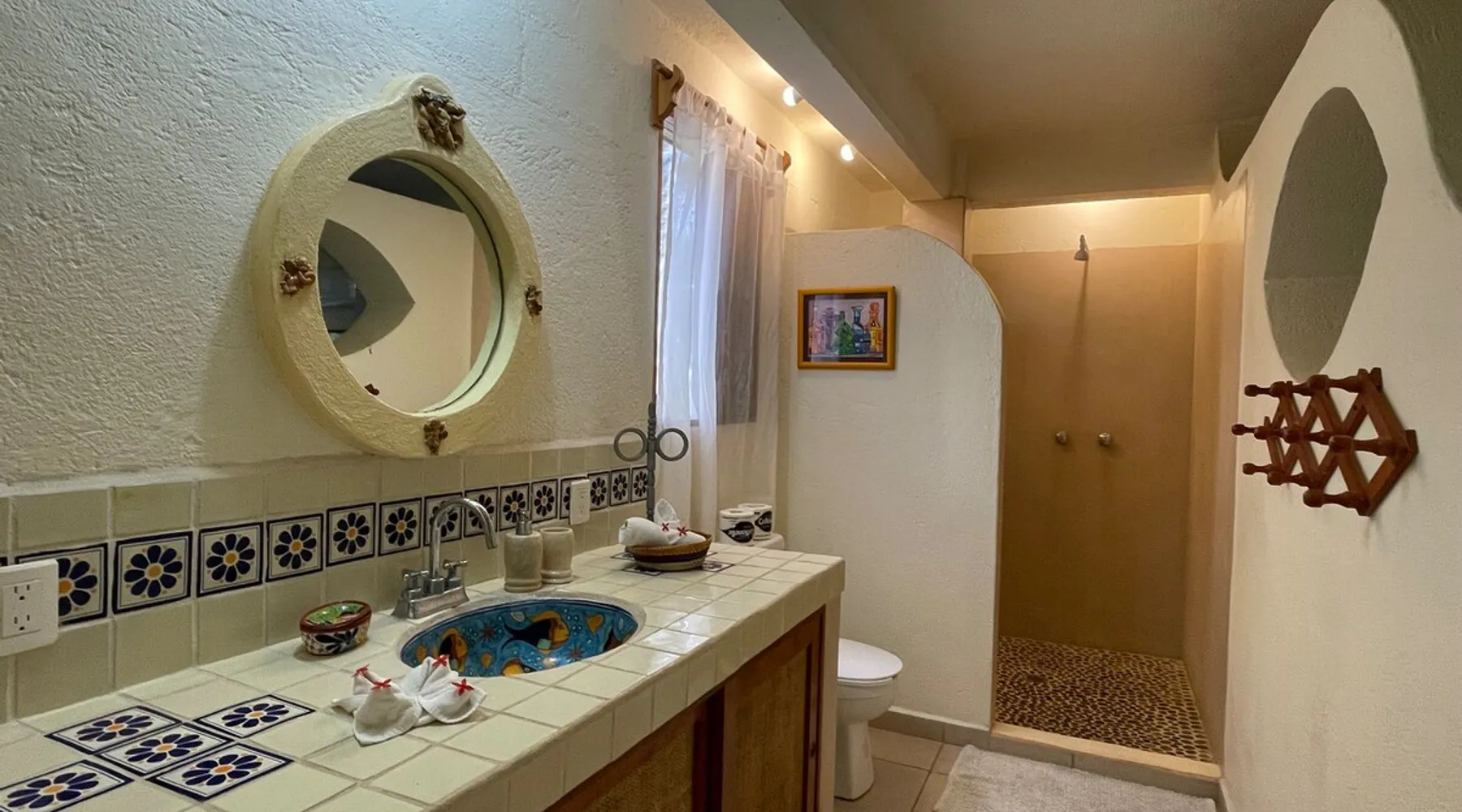 Sol de Agua is a ground floor studio that has a king bed, bathroom, lots of closet space and a full kitchen. We can add a single bed for a small additional fee. Air conditioning and a large front porch for your morning coffee and dining. Maid service and purified water included. Quinto Sol Troncones is in the best location with a rock free beach and walking distance to many food/liquor stores, clothing boutiques, live music and 20+restaurants. The space Quinto Sol Troncones is in the best location with a rock free beach and walking distance to many food/liquor stores, clothing boutiques, live music and 20+restaurants. Parking available on site. Guest access Parking is available on site but not gated in. Other things to note Casa Quinto Sol is three houses divided into five suites spread out over 2400 sqm or 1/2 a acre. We can combine suites for larger groups with 6 bedrooms and 8-11 beds which will accommodate up to 17 people. Beachfront, huge pool, private beach palapas, plenty of lounge chairs and dining tables to keep everyone comfortable. We are dog friendly but no dog is allowed in the pool, on the furniture , no excessive barking or bothering other guests.