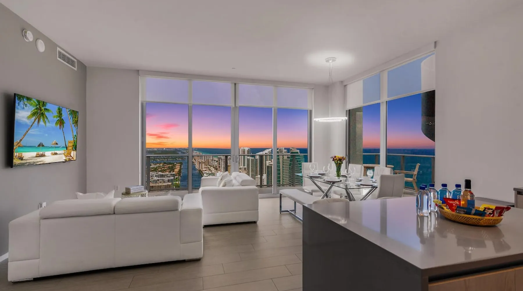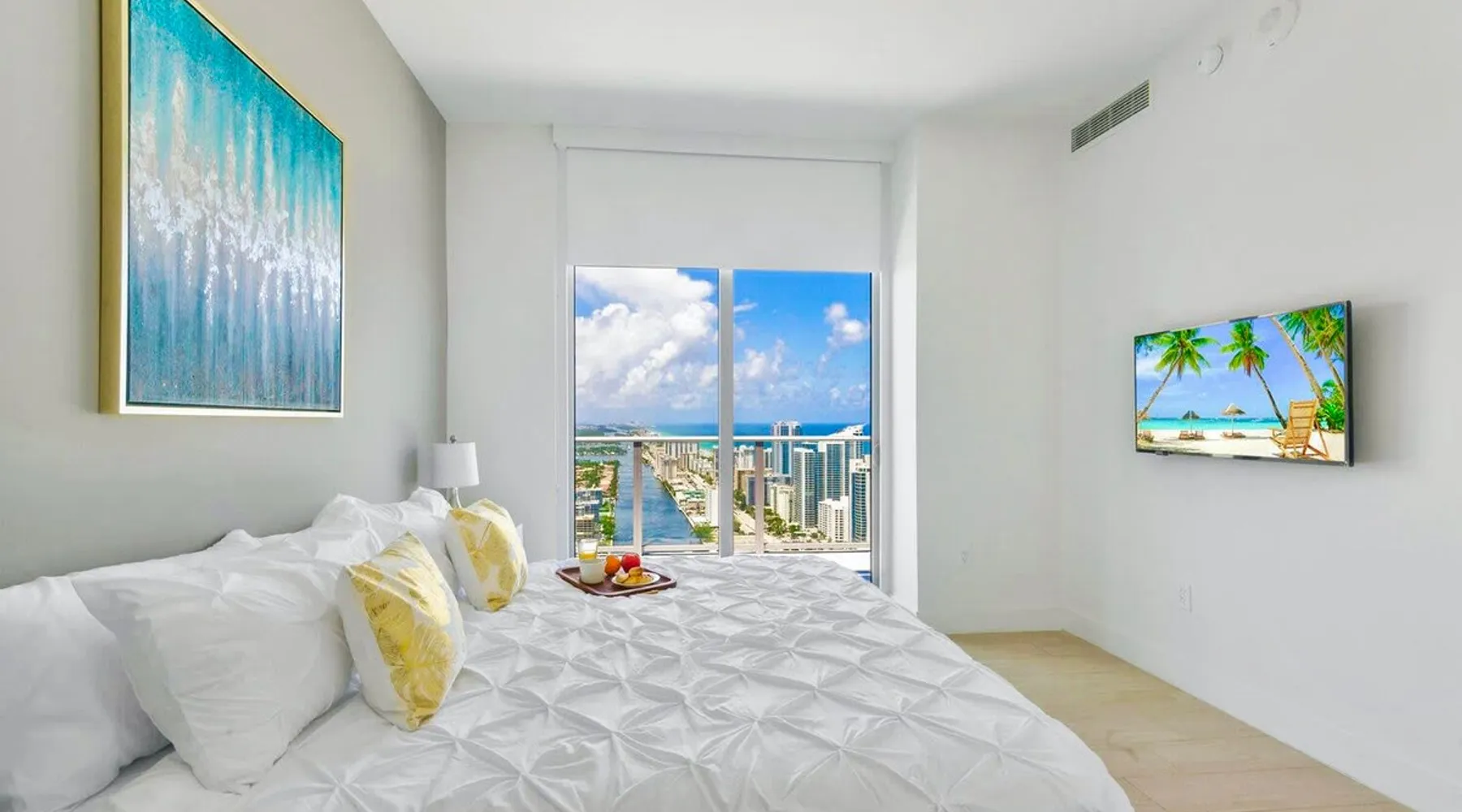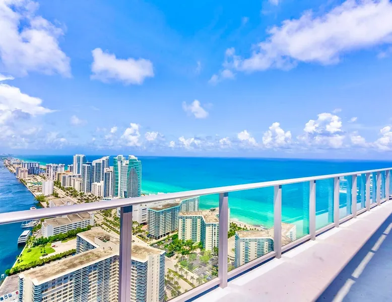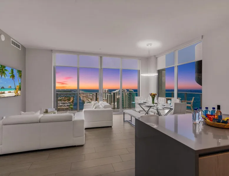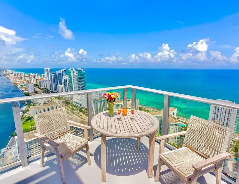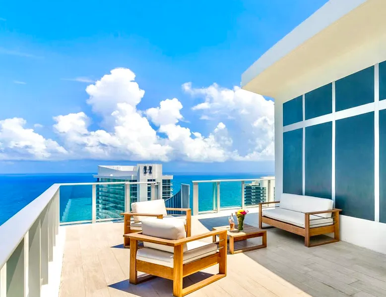 Step into the comfort of the high-end 2BR 2Bath penthouse in the upscale condominium complex in Hollywood Beach, FL. Explore nearby beaches, entertainment, and attractions from this prime location. Once you are done sightseeing, retreat to the stylish oasis with spectacular panoramic views, which will keep you coming back. - Full Kitchen - Balcony & Upper Patio - Smart TVs - High-Speed Wi-Fi - Community Amenities (Pool, Tennis Court, Gym Theatre, Valet Parking & more) See more below! A blend of comfort, luxurious style, and utmost convenience greets you as soon as you enter this elegant Hollywood penthouse. While decorating this inviting retreat, we have worked hard to create a "2nd home" feeling for our guests. The open concept design living area is the condo's heartbeat, successfully combining the relaxing living room with an inviting dining area and a fully equipped kitchen. Large floor-to-ceiling windows and balcony doors allow plenty of natural light to illuminate the space throughout the day. The bright floors and tasteful décor create a feeling of warmth and coziness. Two comfortable bedrooms are designed to offer all the rest you need after a long day of exploring Hollywood, its attractions, and picturesque beaches. And now we come to the balcony offering breathtaking views of the city and the ocean. If you think these panoramic views can get better, you are right! Climb the spiral staircase to the private upper patio and enjoy a mesmerizing outdoor setting that will make you want to stay forever. - A picture is worth a thousand words," but there are no words that can describe the beauty of our penthouse. You'll have to come and see it for yourself! - LIVING ROOM Never miss a fun moment in this contemporary open-concept design space. See what the chef is up to, help them set the table, or sit on the comfortable sofa and marvel at the stunning views. - Two Comfortable Living Room Sofas with Pillows - Smart TV - Designer Coffee Table - KITCHEN & DINING Even the most demanding chefs would enjoy preparing delicious meals using numerous state-of-the-art cooking appliances. In addition, spacious countertops and the central kitchen island provide plenty of workspaces for you to prepare delicious homemade delicacies. - Microwave - Stove - Oven - Coffee Maker - Refrigerator/Freezer - Dishwasher - Sink - Hot & Cold Water - Trays - Glasses - Silverware - Pots & Pans - High end knives So much more! Serve those delicious meals on the adjacent dining table and let the smell of freshly cooked homemade delicacies invite everyone for a tasty feast. - Dining Table with Seating for 6 - Kitchen Island with Seating for 2 - SLEEPING ARRANGEMENTS - 2 BEDROOMS Two tastefully furnished bedroom is designed to provide hotel-like comfort and convenience needed to relax and rest so you can remain energized and do everything you have planned the next day. - Master Bedroom: King-Size Bed, Access to the Balcony - Bedroom 2: Queen-Size Bed, Bunk Bed (Double over Queen) Both bedrooms are equipped with a similar set of amenities. - Ensuite Bathrooms - Premium Pillows, Linens, and Sheets - Smart TVs - Closets with Hangers and Shelves - Night Stands with Reading Lights - BATHROOMS As you already know, the master bedroom features its ensuite bath. Another full bathroom is accessible from the second bedroom and the living area. You don't have to worry about packaging towels or essential toiletries, as we have already prepared these for you. - Soaker Tub + Walk-In Shower (Master Bath) - Walk-In Shower - Vanity (Double in the Master Bath) - Mirror - Toilet - Towels - Hair Dryer - Essential Toiletries - BALCONY + PATIO Marvel at the mesmerizing ocean and city views from the balcony that wraps the living room on two sides. The view is even better while relaxing on the comfortable lounge of the upper patio accessible by the spiral staircase. - Upper Patio (Lounge Area with Table and Chairs) - Balcony (Wooden Coffee Table with Seating for 2) Let us know if you have any questions regarding this beautiful home. We are more than happy to assist! The entire condo is exclusively yours, without interruption during your stay, so relax, unwind, and make yourself at home. - $35 daily resort fee (includes 4 beach towels, 2 beach chairs & 1 beach umbrella) - $35 for valet parking. Hyde Resort requires a $150 per night security deposit hold Other than the already mentioned amenities, the house also features: - High-Speed Wi-Fi - Self-Check-In - Air Conditioning - Heating - Washer/Dryer - Iron/Board - Baby Crib The condo is a part of the upscale residential complex featuring high-end facilities you are welcome to use during your stay: - Swimming Pool - Fitness Center - Tennis Court - Lounge Seating - Outdoor Cinema - Outdoor Bar - Picnic Area with BBQ Grills - Valet Parking We will be in touch throughout your entire stay. The condo is nestled in the upscale condominium complex in Hollywood Beach, FL. This prime location offers breathtaking views and quick access to the downtown area, sunny beaches, restaurants, shops, attractions, and landmarks. Here are some of the numerous attractions you will want to visit during your stay. - Gulfstream Park Racing and Casino (9 min away) - Dr. Von D. Mizell-Eula Johnson State Park (10 min away) - Oleta River State Park (14 min away) - St Bernard De Clairvaux (16 min away) - Fort Lauderdale-Hollywood International Airport (22 min away) - Fort Lauderdale (25 min away) - Seminole Hard Rock Hotel & Casino (25 min away) - Hard Rock Stadium (26 min away) - Downtown Miami (32 min away) - Flamingo Gardens (33 min away) - Miami International Airport (35 min away) - Distance times are calculated if traveling by car. If you arrive by car, you will be happy to know that we offer valet parking. If you would like to avoid driving during your stay, there are many convenient, easily accessible transportation options close to our home. - Car Rental - Trolley - Buses - Taxis - Both Lyft & UBER operate in the area
