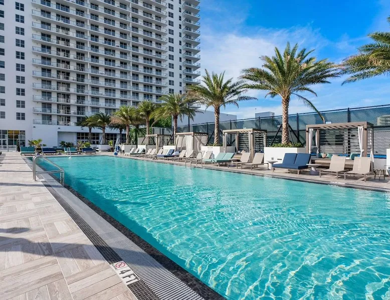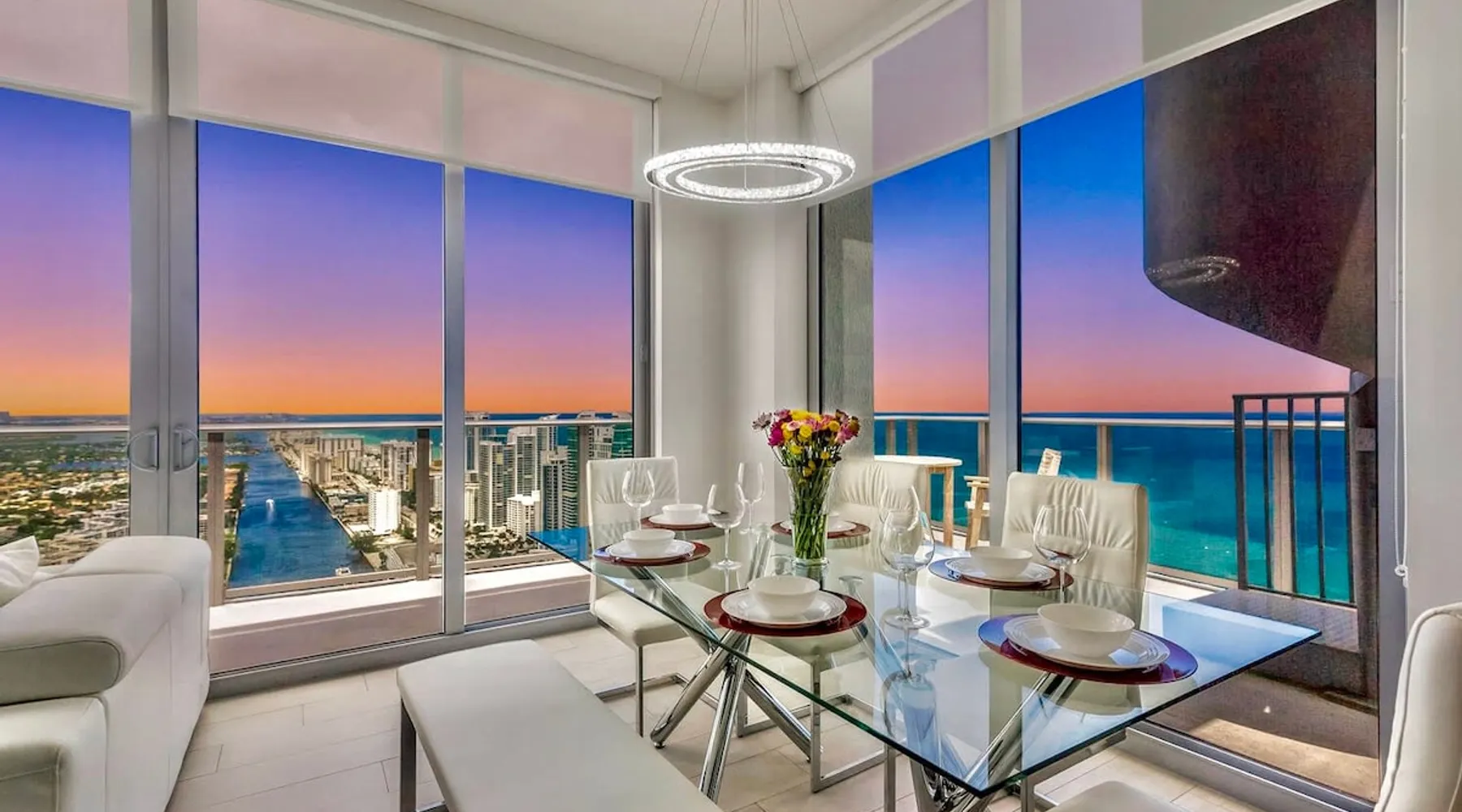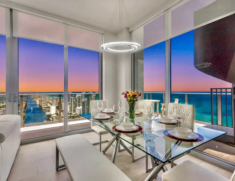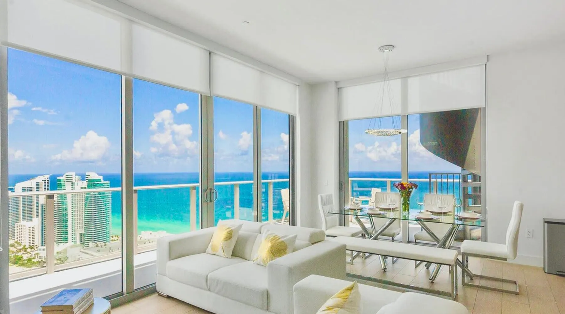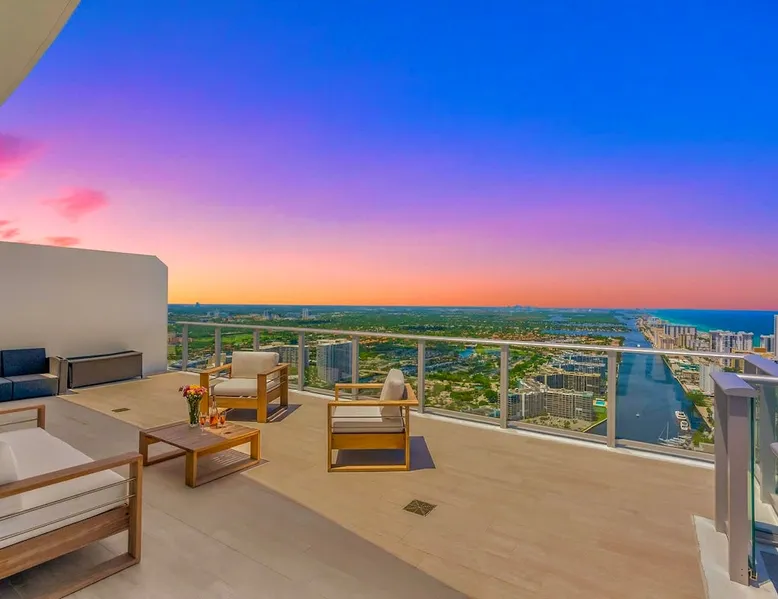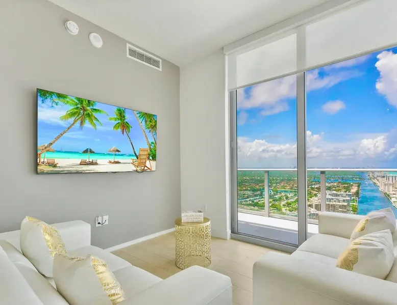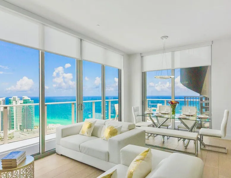 Step into the comfort of the high-end 2BR 2Bath penthouse in the upscale condominium complex in Hollywood Beach, FL. Explore nearby beaches, entertainment, and attractions from this prime location. Once you are done sightseeing, retreat to the stylish oasis with spectacular panoramic views, which will keep you coming back. - Full Kitchen - Balcony & Upper Patio - Smart TVs - High-Speed Wi-Fi - Community Amenities (Pool, Tennis Court, Gym Theatre, Valet Parking & more) See more below! A blend of comfort, luxurious style, and utmost convenience greets you as soon as you enter this elegant Hollywood penthouse. While decorating this inviting retreat, we have worked hard to create a "2nd home" feeling for our guests. The open concept design living area is the condo's heartbeat, successfully combining the relaxing living room with an inviting dining area and a fully equipped kitchen. Large floor-to-ceiling windows and balcony doors allow plenty of natural light to illuminate the space throughout the day. The bright floors and tasteful décor create a feeling of warmth and coziness. Two comfortable bedrooms are designed to offer all the rest you need after a long day of exploring Hollywood, its attractions, and picturesque beaches. And now we come to the balcony offering breathtaking views of the city and the ocean. If you think these panoramic views can get better, you are right! Climb the spiral staircase to the private upper patio and enjoy a mesmerizing outdoor setting that will make you want to stay forever. - A picture is worth a thousand words," but there are no words that can describe the beauty of our penthouse. You'll have to come and see it for yourself! - LIVING ROOM Never miss a fun moment in this contemporary open-concept design space. See what the chef is up to, help them set the table, or sit on the comfortable sofa and marvel at the stunning views. - Two Comfortable Living Room Sofas with Pillows - Smart TV - Designer Coffee Table - KITCHEN & DINING Even the most demanding chefs would enjoy preparing delicious meals using numerous state-of-the-art cooking appliances. In addition, spacious countertops and the central kitchen island provide plenty of workspaces for you to prepare delicious homemade delicacies. - Microwave - Stove - Oven - Coffee Maker - Refrigerator/Freezer - Dishwasher - Sink - Hot & Cold Water - Trays - Glasses - Silverware - Pots & Pans - High end knives So much more! Serve those delicious meals on the adjacent dining table and let the smell of freshly cooked homemade delicacies invite everyone for a tasty feast. - Dining Table with Seating for 6 - Kitchen Island with Seating for 2 - SLEEPING ARRANGEMENTS - 2 BEDROOMS Two tastefully furnished bedroom is designed to provide hotel-like comfort and convenience needed to relax and rest so you can remain energized and do everything you have planned the next day. - Master Bedroom: King-Size Bed, Access to the Balcony - Bedroom 2: Queen-Size Bed, Bunk Bed (Double over Queen) Both bedrooms are equipped with a similar set of amenities. - Ensuite Bathrooms - Premium Pillows, Linens, and Sheets - Smart TVs - Closets with Hangers and Shelves - Night Stands with Reading Lights - BATHROOMS As you already know, the master bedroom features its ensuite bath. Another full bathroom is accessible from the second bedroom and the living area. You don't have to worry about packaging towels or essential toiletries, as we have already prepared these for you. - Soaker Tub + Walk-In Shower (Master Bath) - Walk-In Shower - Vanity (Double in the Master Bath) - Mirror - Toilet - Towels - Hair Dryer - Essential Toiletries - BALCONY + PATIO Marvel at the mesmerizing ocean and city views from the balcony that wraps the living room on two sides. The view is even better while relaxing on the comfortable lounge of the upper patio accessible by the spiral staircase. - Upper Patio (Lounge Area with Table and Chairs) - Balcony (Wooden Coffee Table with Seating for 2) Let us know if you have any questions regarding this beautiful home. We are more than happy to assist! The entire condo is exclusively yours, without interruption during your stay, so relax, unwind, and make yourself at home. - $35 daily resort fee (includes 4 beach towels, 2 beach chairs & 1 beach umbrella) - $35 for valet parking. Hyde Resort requires a $150 per night security deposit hold Other than the already mentioned amenities, the house also features: - High-Speed Wi-Fi - Self-Check-In - Air Conditioning - Heating - Washer/Dryer - Iron/Board - Baby Crib The condo is a part of the upscale residential complex featuring high-end facilities you are welcome to use during your stay: - Swimming Pool - Fitness Center - Tennis Court - Lounge Seating - Outdoor Cinema - Outdoor Bar - Picnic Area with BBQ Grills - Valet Parking We will be in touch throughout your entire stay. The condo is nestled in the upscale condominium complex in Hollywood Beach, FL. This prime location offers breathtaking views and quick access to the downtown area, sunny beaches, restaurants, shops, attractions, and landmarks. Here are some of the numerous attractions you will want to visit during your stay. - Gulfstream Park Racing and Casino (9 min away) - Dr. Von D. Mizell-Eula Johnson State Park (10 min away) - Oleta River State Park (14 min away) - St Bernard De Clairvaux (16 min away) - Fort Lauderdale-Hollywood International Airport (22 min away) - Fort Lauderdale (25 min away) - Seminole Hard Rock Hotel & Casino (25 min away) - Hard Rock Stadium (26 min away) - Downtown Miami (32 min away) - Flamingo Gardens (33 min away) - Miami International Airport (35 min away) - Distance times are calculated if traveling by car. If you arrive by car, you will be happy to know that we offer valet parking. If you would like to avoid driving during your stay, there are many convenient, easily accessible transportation options close to our home. - Car Rental - Trolley - Buses - Taxis - Both Lyft & UBER operate in the area