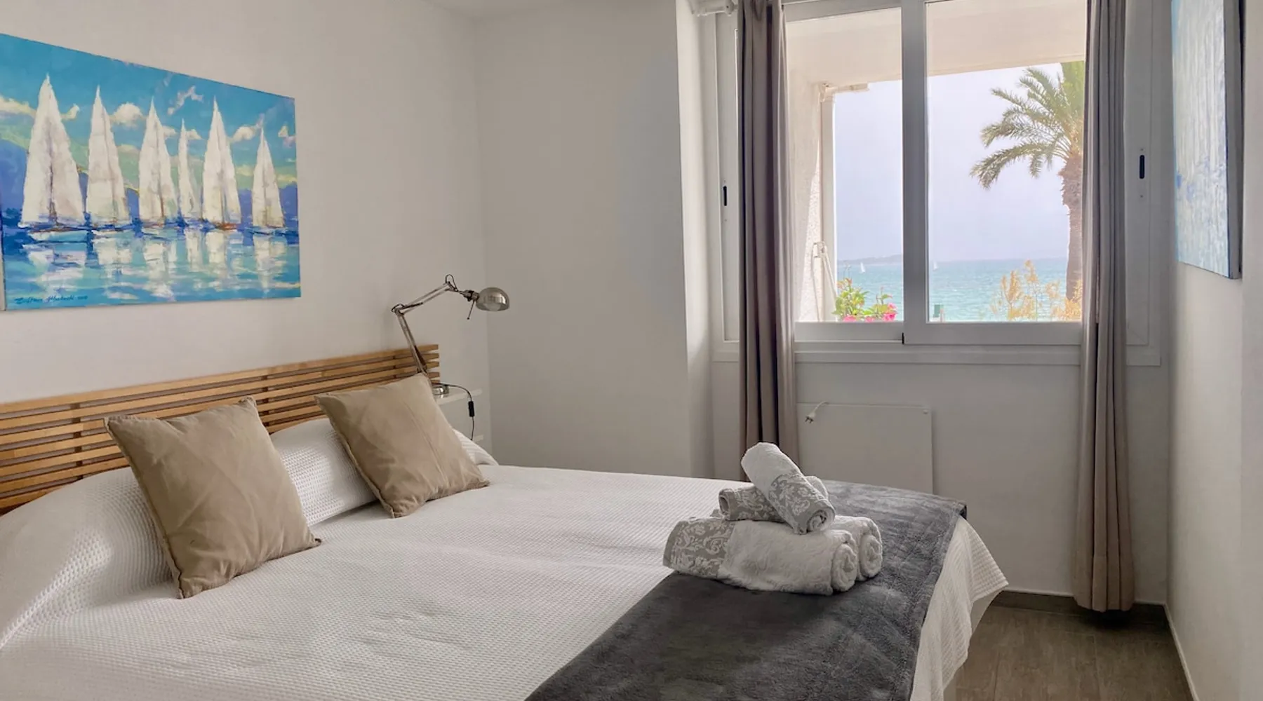 Can Sivella is a newly renovated apartment on the beach of Puerto Pollença. From the balcony you can enjoy the wonderful view of the beach, the sea and the harbor. The view extends far over the bay of Pollença and the foothills of the Tramuntana mountains. Nearby is a sailing and windsurfing school. You can find good and restaurants small shops in the neighborhood. The space Apartment Sivella can accommodate 3 people. It is newly renovated and furnished and offers a bedroom (if desired with 2 single beds or as a double bed), a living room with a sofa bed, an open kitchen and a bathroom. Guest access The apartment is exclusively at guests' disposal Other things to note The Eco Tasa bar is payable on arrival. Registration details Spain – National registration number ESFCTU00000703000014467400000000000000000ETVPL/149996 Mallorca – Regional registration number ETVPL/14999