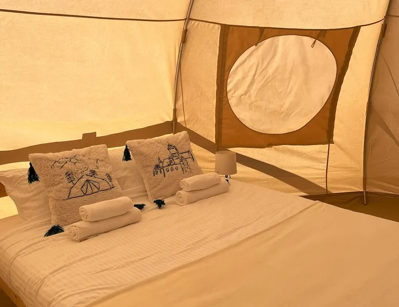 Flore’s Garden Glamping is a unique destination for a relaxing retreat in the middle of the nature. Its strategic location offers the best of both worlds. Here, you are able to enjoy the peace and quiet of the nature while being surrounded by the picturesque views of the green hills around, while also being able to explore the lively city center of Bran, the legendary hometown of Dracula and his castle, located only 4 kilometers away. The space Flore’s Garden Glamping is a unique destination to spend an unforgettable vacation, being one of the few glampings in Romania. Here you can sleep in a tent, but not any kind of tent, but a remarkable one, extremely spacious of 20m2, fully furnished and heated, designed so that you can enjoy the nature with maximum comfort. Other things to note Here you can find: Five luxury tents for two or three people Fully equipped kitchen Outside Grill Spacious terrace with tables Covered terrace Free Wi-Fi Free parking Relaxation areas with hammocks and swings Bathrooms Heating in each tent Nearby activities: Visit Bran Castle Mountain trails for any level Walks on the hills of the village Bike Rental Off-road routes with ATV Guided mountain running (on request) Bran Museum Brite Bran Monastery Devil Mill Waterfall Râșnov Fortress (19km) Dino️Dino Park (19km)