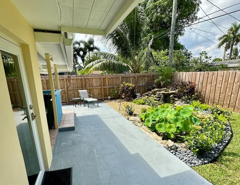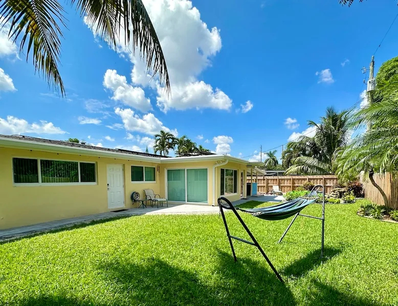 Welcome to sunny Fort Lauderdale! Our home is a quiet tropical retreat just 15 minutes from Fort Lauderdale-Hollywood International Airport, 15 minutes from the beach, and 10 minutes from the clubs and restaurants on Wilton Drive, one of the most exciting gay spots in the U.S. Come and see the scene, then come home to rest and take in the new memories you've made. Please note that this is a gay, clothing-optional household. The space You'll have your own private entrance to come and go as you please. Guest access You'll have everything you need in your private corner of the home, and you're welcome to use the kitchen, chat with friends in the common areas, and relax by the fountains in the backyard. During your stay We live in the home, and are usually here to help any way we can. Other things to note This room is only for short-term vacations; please don’t request a stay longer than two weeks. We have a (lovely) cat, so please keep that in mind if you're allergic. And note that when we say the home is clothing optional, your hosts are usually comfortably nude at home, so consider other nearby options if that would cause you any distress. Please reach out with any questions, and best wishes for your travels!