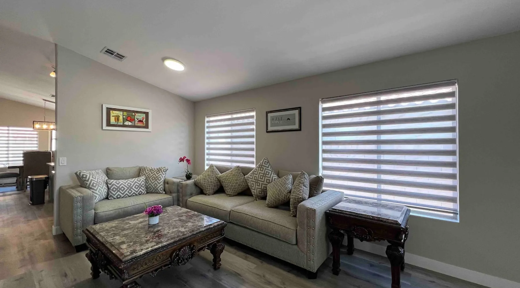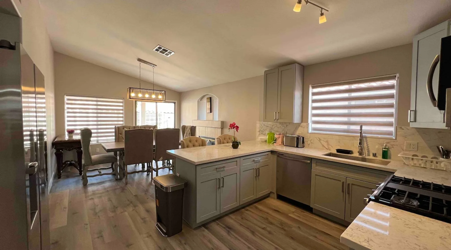 Relax with the whole family at this peaceful place to stay. Renovation was finished in 2023 with new appliances. There are 3 bedrooms in the house--1 King and 2 queens. Backyard is fully accessible with a patio. We provide Hulu, Disney+, Peacock and Paramount on our TVs. To the Strip: 20 Minutes drive To Red Rock Canyon: 15 minutes drive To the airport: 20 minutes drive No garage access. Driveway fits 2 vehicles. Free street parking included. The space Welcome! We’re so happy to host you. To help ensure a comfortable stay for you (and for future guests), please take a moment to review our house guidelines. ⸻ You will be occupying the entire house except the garage. Check In: 4pm (check with us for possible early check in on the day of your arrival) Check Out: 11am (No late check out request if the same day is reserved. $100 penalty for unapproved late check out) NO PETS especially for local residents who temporarily need a place) Or $500 pet fee will be charged if unapproved pets found) Please remove shoes in the house. You are welcome to use our slippers or bring your own. 🚭 Smoking & Vaping • Smoking or vaping is not allowed indoors. • Weed smoking is not permitted anywhere on the property—this includes the patio, backyard, and all outdoor spaces. • If smoke or vape residue is found inside, an additional $450 deep-cleaning fee will apply. We kindly ask that guests who plan to smoke weed please book another home. Thank you for your understanding! ⸻ 🔇 Quiet Hours & Guests Our neighborhood is peaceful, and we want to keep it that way. • Quiet hours are 10 PM – 7 AM. • No parties or events, please. • Only registered guests are allowed unless you’ve received approval in advance. If these rules are broken, your stay may be canceled without a refund, and guests are responsible for any fines related to noise complaints. ⸻ 🛋️ Care for the Home Please help us keep the home in great condition: • Any missing or damaged items (furniture, décor, towels, linens, etc.) will be charged at replacement cost. • In cases of significant or negligent damage, an additional fee of up to $200 may apply. ⸻ 🧺 Towels & Linens We provide fresh towels and linens for your comfort. • Please use makeup removers, not towels, for removing makeup. • Towels and washcloths should not be used for cleaning. • Permanent stains will be considered damage. Damage fees: • Towels – $50 each • Linens – $100 each ⸻ 🗑️ Trash Day Notice Trash pickup is once a week on Fridays. Before and on trash day, we’ll move the bins to the curb and then return them to the side or backyard through the side gate. We will not enter or access the house during this process. If you prefer that we don’t come to the property at all, please feel free to pull the trash cans to the curb and return them after pickup — we truly appreciate your help! Thank you for helping us keep everything clean and tidy 🌿 We prefer to keep our conversation records in airbnb. Please contact through the message inbox. 💖 Thank You! We truly appreciate your cooperation. Following these guidelines helps us maintain a welcoming space for every guest. We hope you enjoy your stay! Guest access The entire house is yours except the garage. Other things to note ⚠️ Important Reminder Regarding A/C Usage (June-October) Please note that from June to October, the thermostat is managed by NV Energy as part of their energy-saving program. This means: Daytime A/C may be set to 74°F Nighttime A/C may be set to 71°F This is due to energy conservation measures enforced during times of high electricity demand. Unfortunately, we are unable to override these settings during those periods. If this is a concern or if you require cooler indoor temperatures, we kindly recommend not booking through us during these months to avoid any inconvenience. Thank you for your understanding! Registration Details Exempt