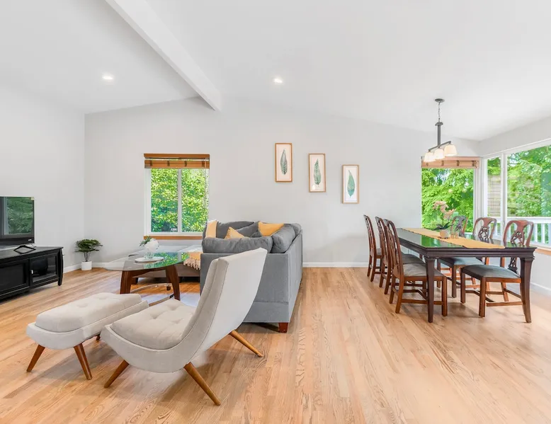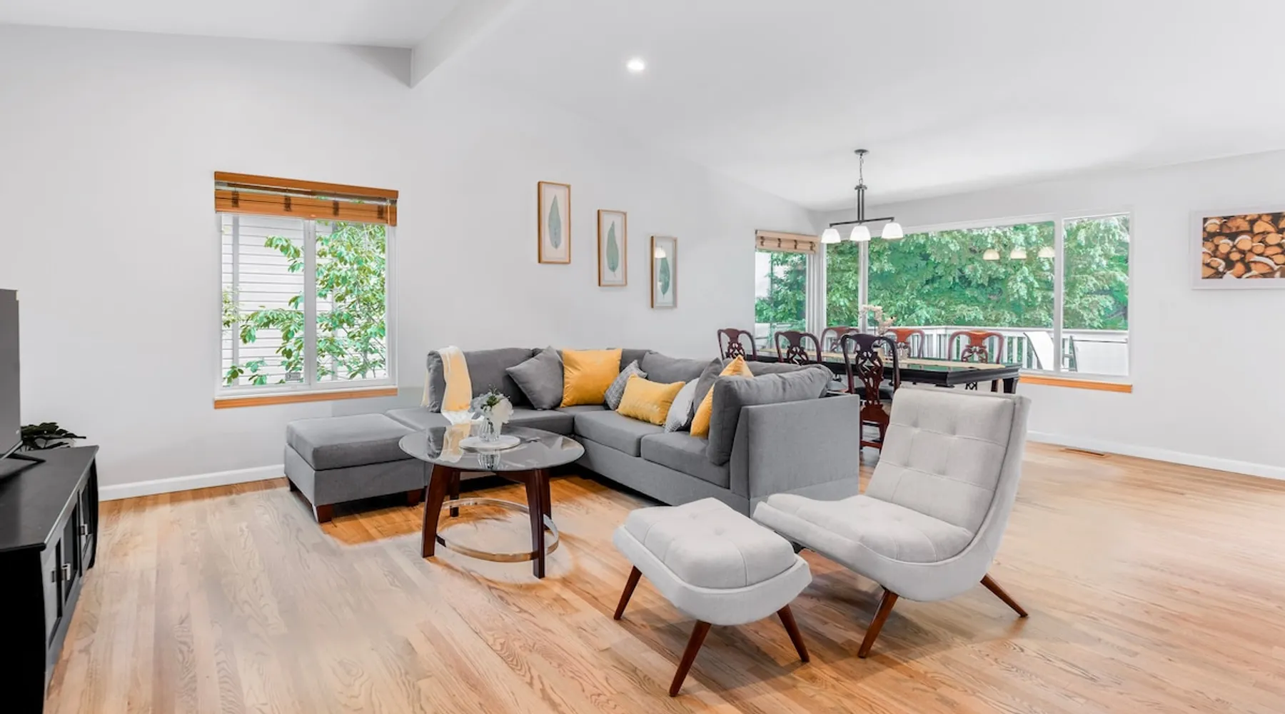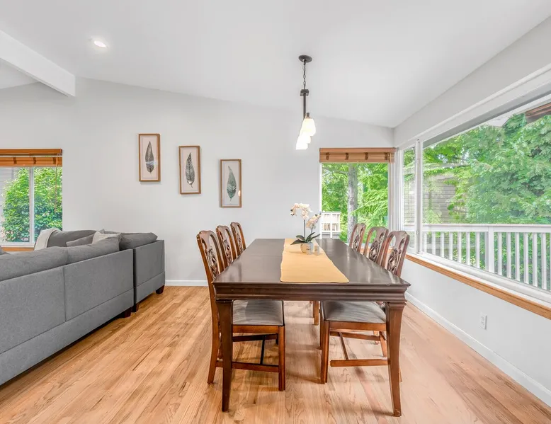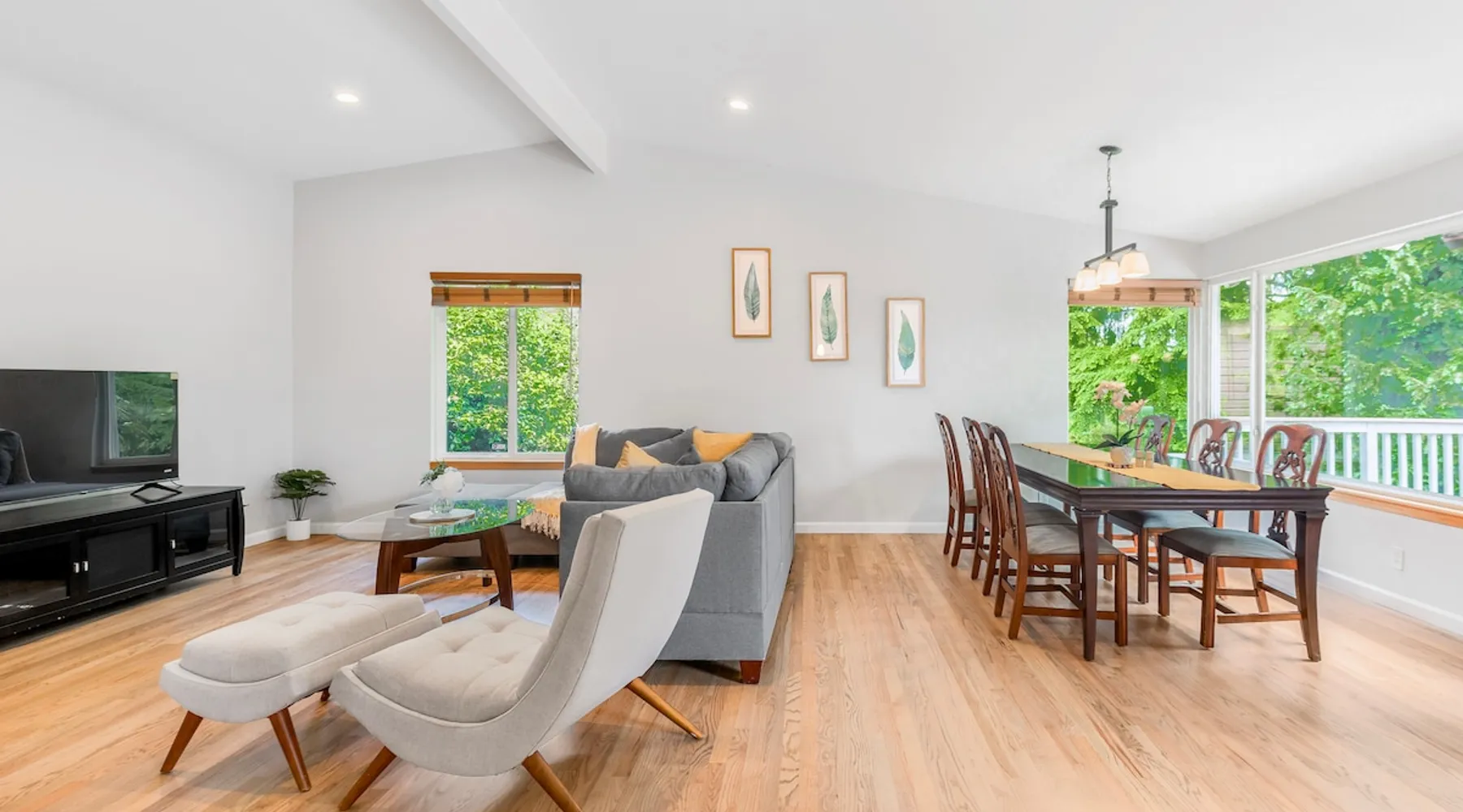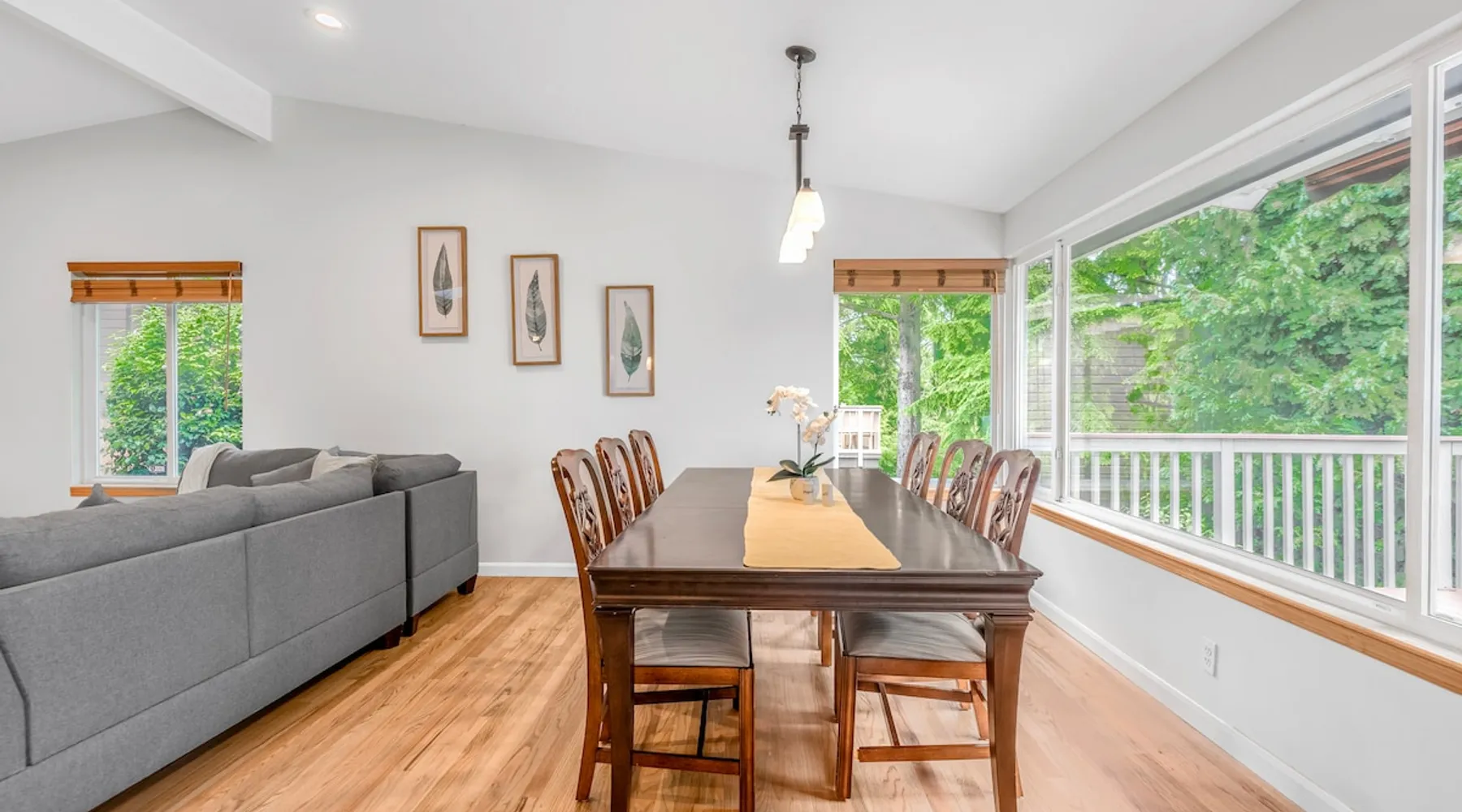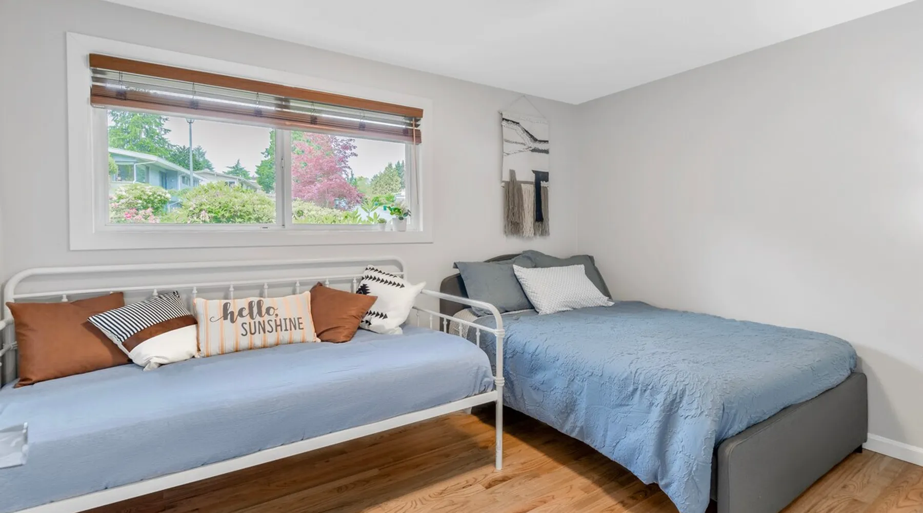 This home features 3 bedrooms, 2 bathrooms, a living room, kitchen, patio & garage. Comfortable for 7 people with bed & down/feather bedding. Perfect for large group up to 11 people with couch/airbed. Spacious outdoor space with big dining set and auto-shed offer you opportunities to enjoy the Seattle sunshine or rains. Super convenient location. 7 mins to Sea-Tac Airport/ shopping mall. 20 mins to Seattle and Major cities. *This house has another listing downstairs with separate entrance* The space **The entire house is a duplex with two separate units** ** This listing is about Unit B, the upper-level** ** Each unit has its own private entrance** **There is no indoor sharing space** This listing is about Unit B (the upper level ) has the access to patio. Another listing (the lower level) has separate entrance and access to backyard. If you are interested in booking the lower level or both levels, please check my other listings. [Entrance] A calm and welcoming space with wall art and flowers to say hi. We also have indoor slippers for you. Please take off your shoes. [Sleeping Area] 1 Master Bedroom, 2 Guest Bedroom, Couch in the living room. With 3 queen/full, 1 twin daybeds and couch/airbed, it is perfect for large groups and families up to 11. [Dining Area] A large dining table for family/ group sharing. The modern kitchen is outfitted with brand-new kitchenware. [Physical Care Area] 2 Bathrooms with enough towels and shower essentials for every guests. [Outdoor Space] Spacious patio with big dining set and auto-shed for you to enjoy the nature. [Parking] Private garage and in front of garage ( right side with sign B) parking. Up to 3 vehicles. [Transportation] The Museum of Flight 4 mins Airport 10 mins Seattle 15-20 mins Pike Market 15-20 mins Bellevue DT 15-20 mins **NO PARTIES/EVENTS** Guest access This entire house is divided into lower Unit A and upper Unit B. Each of them has separate entrance and private space. There is NO INDOOR SHARING space. This listing is about the upper Unit B. You can follow the sign to find out Unit B Entrance on the right of the garage. Other things to note **NO PETS** **NO SMOKING** **NO PARTY/EVENTS** **NO ILLEGAL ACTIVITIES** **PLEASE TAKE OFF YOUR SHOES** **QUIET HOUR FROM 10PM TO 8AM**