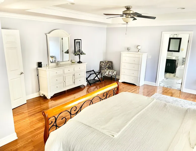 The Executive Winchester Orchard House is a large, quiet home in the heart of Silicon Valley. This is the same home as before but listed with the en-suite Master bedroom now available to add even more space. This house is tucked away in a quiet neighborhood, yet is a half mile from Santana Row and Westfield Valley Fair. We are located near the major freeways, making for an easy commute around the Bay. The whole group will enjoy easy access to everything from this centrally located place. The space The bedrooms are furnished with new mattresses, crisp sheets, and minimalist decor. Our open kitchen and living areas provide plenty of room to relax during your stay. The lush backyard provides a welcoming space to enjoy the temperate Bay Area weather. Guest access Guests are welcome to relax in the four bedrooms, either of the two living areas, the kitchen, or the backyard. There is an additional room in the house that is used for storage and is not available for guests Other things to note If you desire the backyard area to be cleaned professionally then there will be an additional charge. It is just like a normal backyard that will require table to be wiped down as needed. Please request this at time of booking.