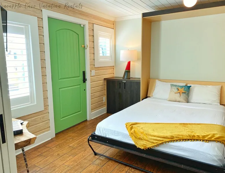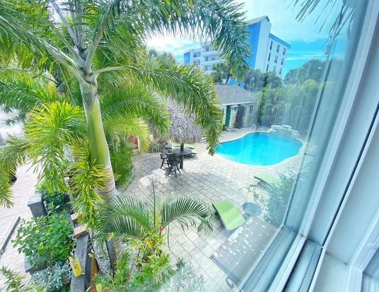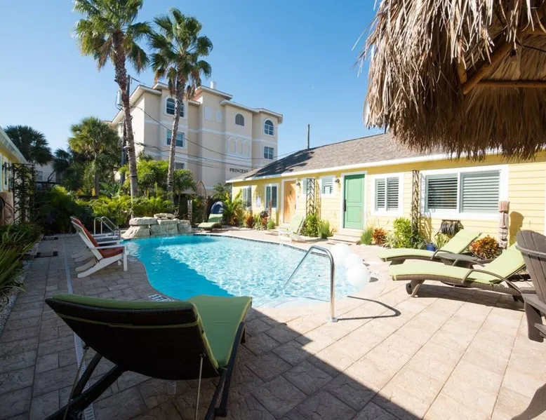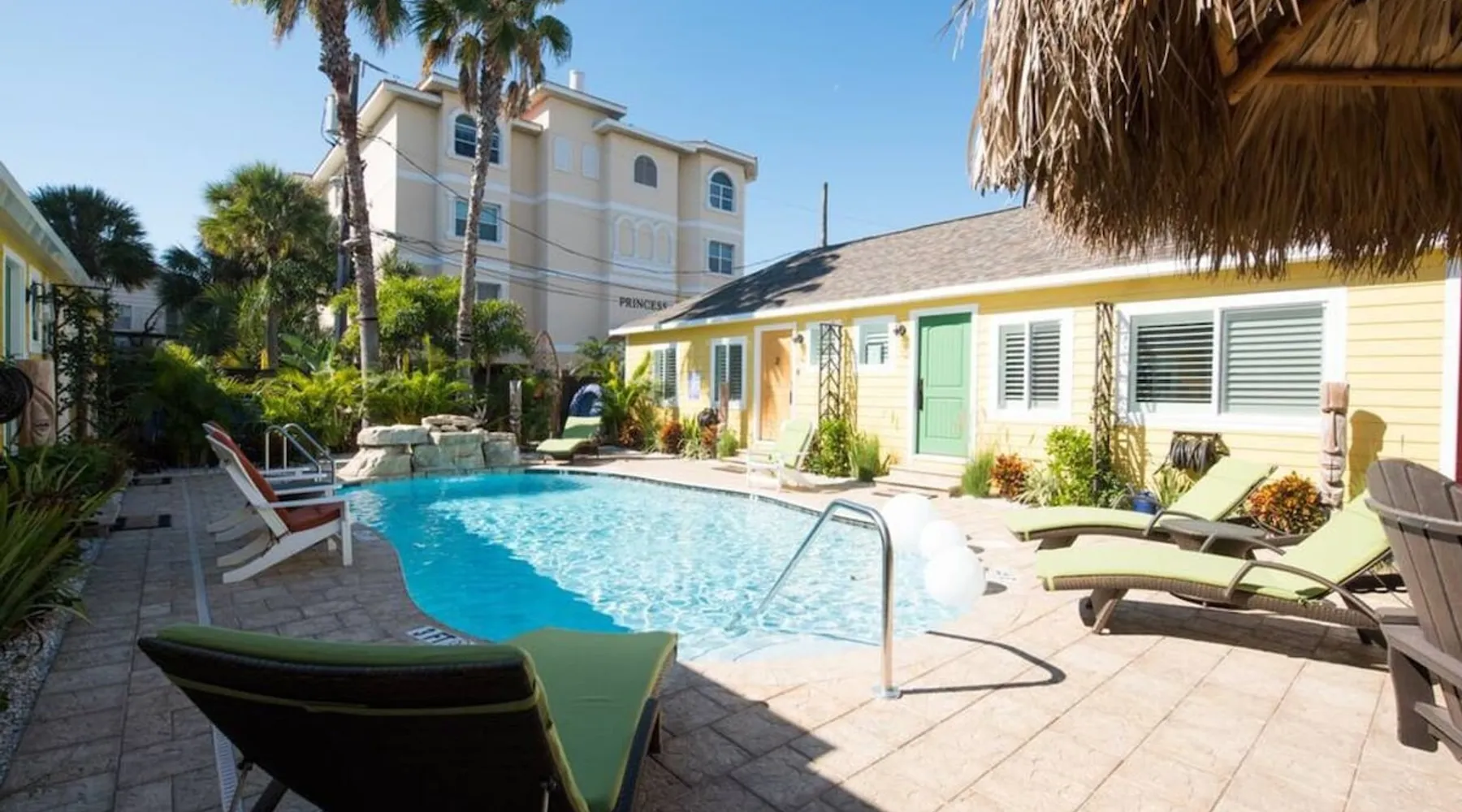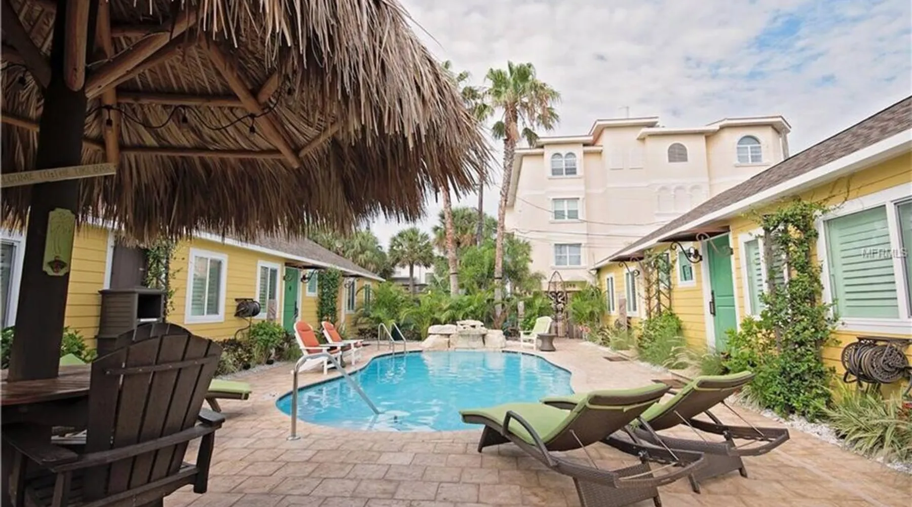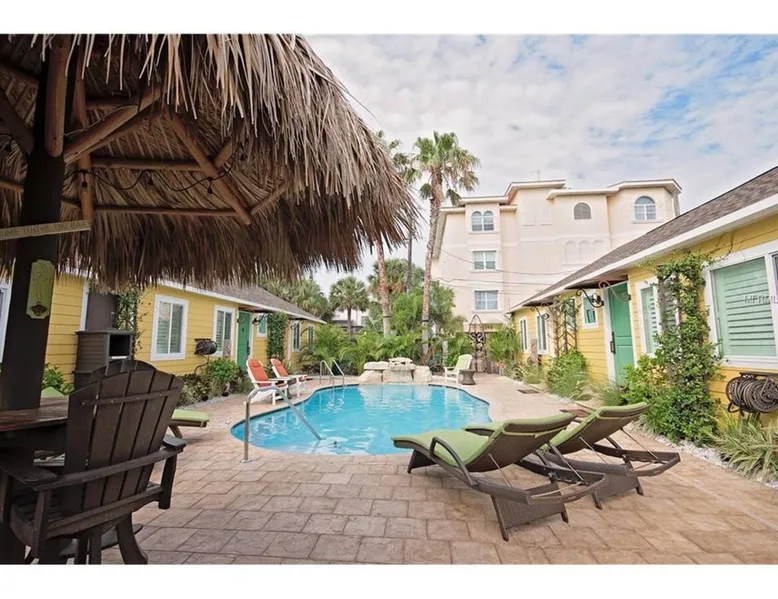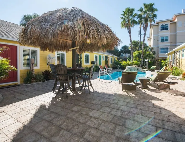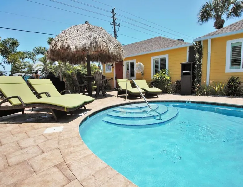 ■ What You Will Love ■ Welcome to 6West! This small and private luxury complex has 6 beautifully updated cottages that surround the pool in the center of the courtyard. -1 minute walk to the beach (Beach access is located through the alley behind the building) -Pool -8 minutes walk to Johns Pass (Waterfront restaurants, bars, shops, boat rentals, activities) -Free WiFi -Two story 2 bedroom 2 bath bungalow sleeps 4 -Stairs up to the second floor Cottage #0 is an adjacent studio, based on availability there is the option to rent that one separately and make this a three bedroom three bathroom. Message us to check availability on #0 for you Book one cottage or for larger groups book the entire place (6 cottages in total) based on availability. The property can accommodate 22 guests when all bungalows are booked together. Main Bedroom -Located upstairs is the main bedroom with a queen size bed -Walk in closet -TV -JEn-suite bathroom with a copper soaking tub -Ceiling fan Second bedroom -Features a murphy bed that makes it nice to fold up during the day if you want some additional space -TV -Two accent chairs -Ceiling fan Downstairs bathroom -Walk in shower -Toilet -Sink Living Spaces -There is one dedicated living area near the staircase with a loveseat, and there is a secondary living space where the murphy bed is located, when the murphy bed is folded up and out of the way and the pocket sliding doors are open, this makes for one large living/gathering space Kitchen/Dining Area -Upgraded appliances -Fully equipped with a stovetop, cooking utensils, coffee maker, toaster, dishes, silverware, cups, mugs, and wine glasses. -Dishwasher -Bar height table with 4 barstools -2 additional bar stools in front of the kitchen counter Outdoor living -This is the ultimate Florida vacation hangout spot, the pool is right outside your front door -Hang out by the covered tiki table -Lounge by the pool -Walk to the beach (1 minute away!) Important information: LIMITED PARKING!!! There is only 1 compact designated parking space for each bungalow. Sand and oil MUST be washed off before entering the pool. There is an outdoor shower for your use. This is a residential area and we ask that the noise is kept at a respectful level. Not respecting the noise ordinance can result in disciplinary actions and/or termination of your rental agreement without refund. An initial “starter” supply of toilet paper, garbage bag, paper towel is provided.