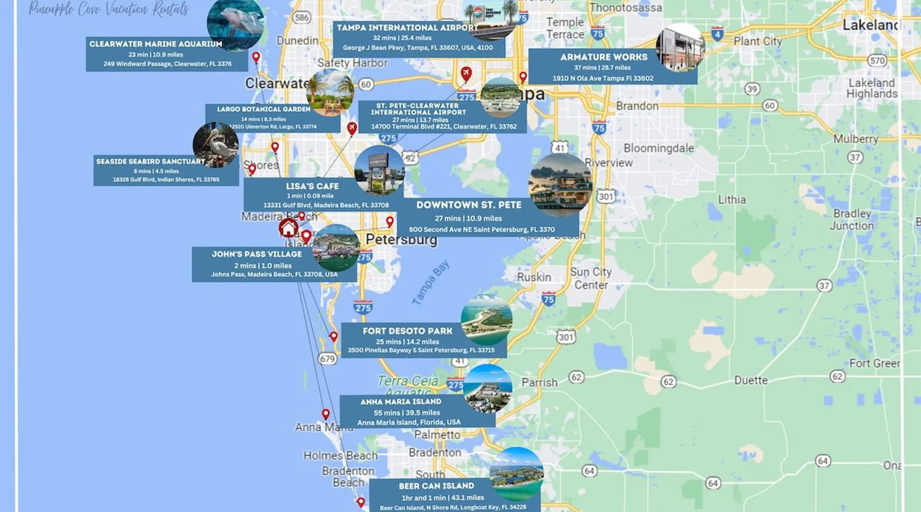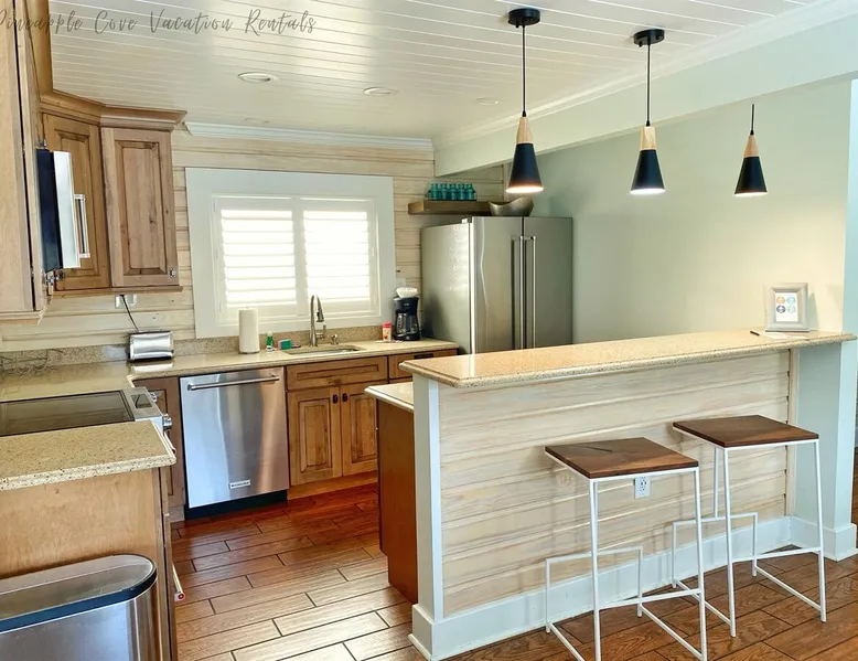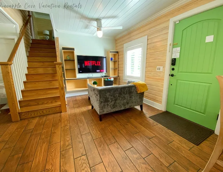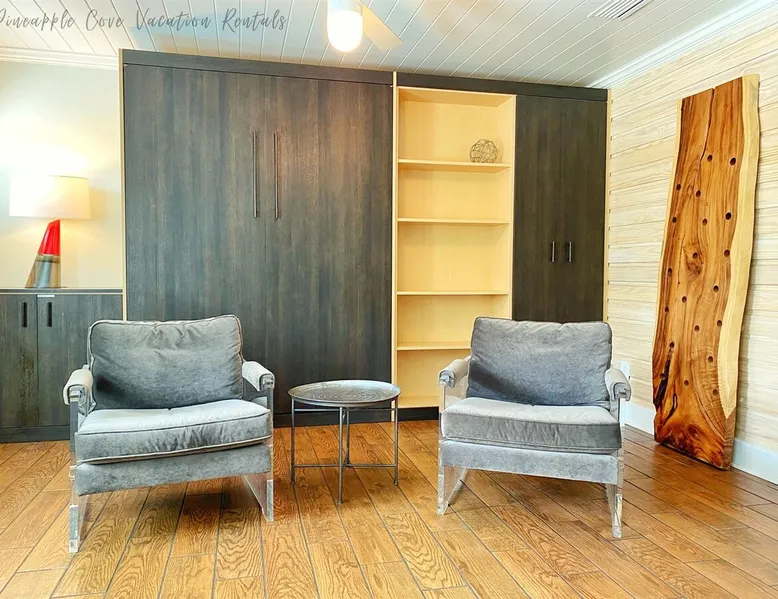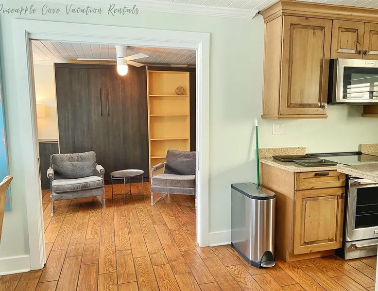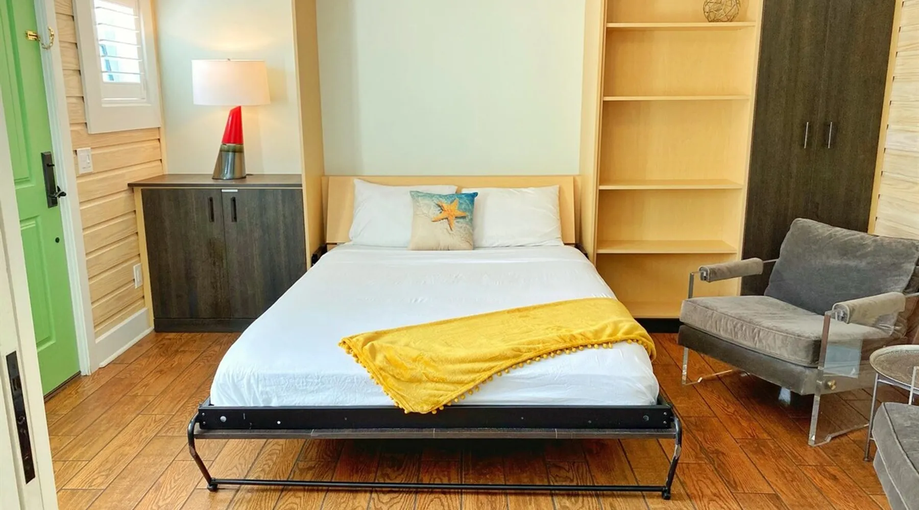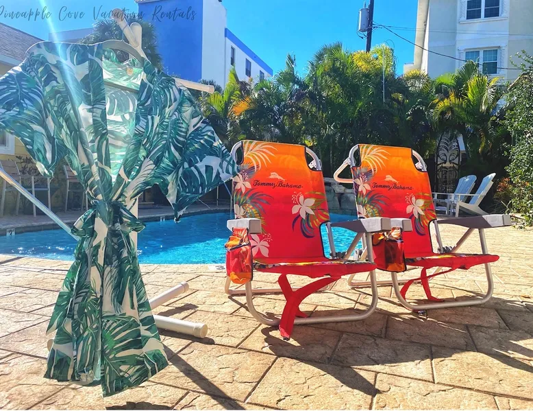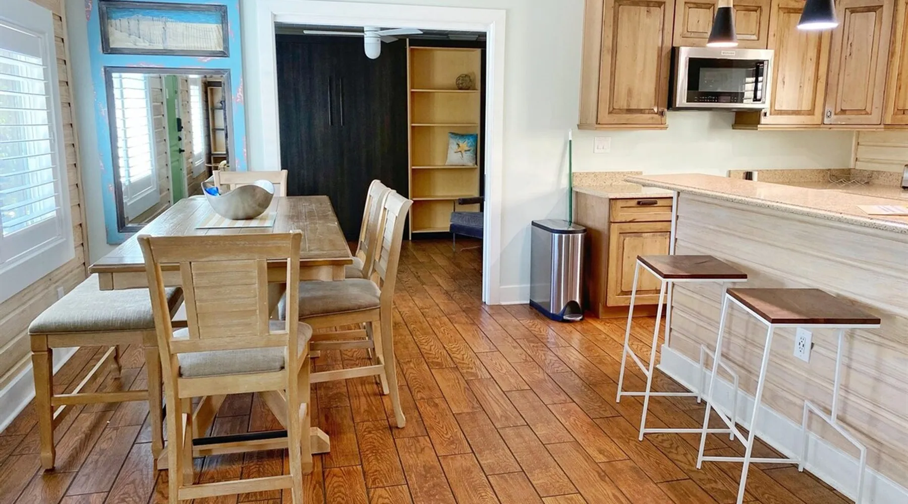 ■ What You Will Love ■ Welcome to 6West! This small and private luxury complex has 6 beautifully updated cottages that surround the pool in the center of the courtyard. -1 minute walk to the beach (Beach access is located through the alley behind the building) -Pool -8 minutes walk to Johns Pass (Waterfront restaurants, bars, shops, boat rentals, activities) -Free WiFi -Two story 2 bedroom 2 bath bungalow sleeps 4 -Stairs up to the second floor Cottage #0 is an adjacent studio, based on availability there is the option to rent that one separately and make this a three bedroom three bathroom. Message us to check availability on #0 for you Book one cottage or for larger groups book the entire place (6 cottages in total) based on availability. The property can accommodate 22 guests when all bungalows are booked together. Main Bedroom -Located upstairs is the main bedroom with a queen size bed -Walk in closet -TV -JEn-suite bathroom with a copper soaking tub -Ceiling fan Second bedroom -Features a murphy bed that makes it nice to fold up during the day if you want some additional space -TV -Two accent chairs -Ceiling fan Downstairs bathroom -Walk in shower -Toilet -Sink Living Spaces -There is one dedicated living area near the staircase with a loveseat, and there is a secondary living space where the murphy bed is located, when the murphy bed is folded up and out of the way and the pocket sliding doors are open, this makes for one large living/gathering space Kitchen/Dining Area -Upgraded appliances -Fully equipped with a stovetop, cooking utensils, coffee maker, toaster, dishes, silverware, cups, mugs, and wine glasses. -Dishwasher -Bar height table with 4 barstools -2 additional bar stools in front of the kitchen counter Outdoor living -This is the ultimate Florida vacation hangout spot, the pool is right outside your front door -Hang out by the covered tiki table -Lounge by the pool -Walk to the beach (1 minute away!) Important information: LIMITED PARKING!!! There is only 1 compact designated parking space for each bungalow. Sand and oil MUST be washed off before entering the pool. There is an outdoor shower for your use. This is a residential area and we ask that the noise is kept at a respectful level. Not respecting the noise ordinance can result in disciplinary actions and/or termination of your rental agreement without refund. An initial “starter” supply of toilet paper, garbage bag, paper towel is provided.