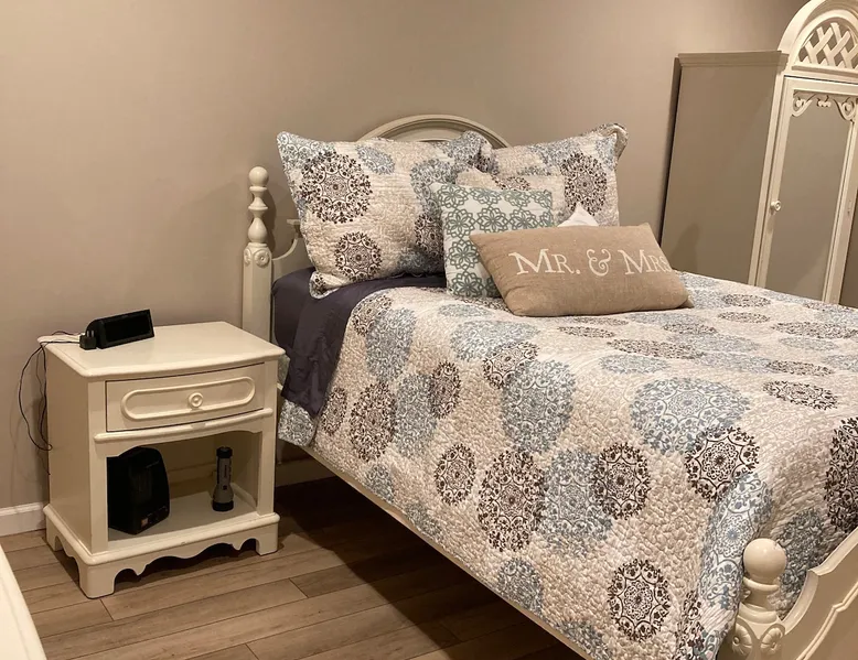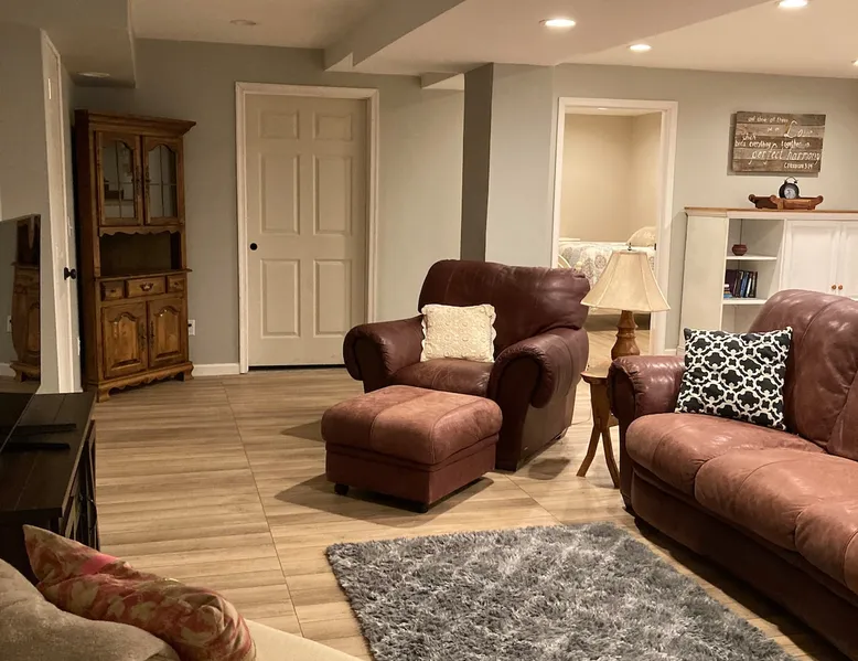 Quiet, private, comfortable, and convenient! Whether traveling for business or pleasure, unwind in this spacious apartment. Located between Charlottesville and Richmond, just 3 minutes from Route 64, the Smith House will give you a serene, woodsy place to relax. Enjoy a clean, comfortable bed, a cozy living area with smart TV and fireplace, a fully outfitted sparkling kitchen, full bath, and laundry room! Have office work to do? We provide high speed internet and a work space for your computer. The space On a quiet, upscale street, and with outdoor camera security to ensure your safety, the Smith House sits nestled on a wooded, spacious lot. A brick sidewalk takes you around the main home where you will find a well-lit rear entrance to a walk-down apartment that is all yours.