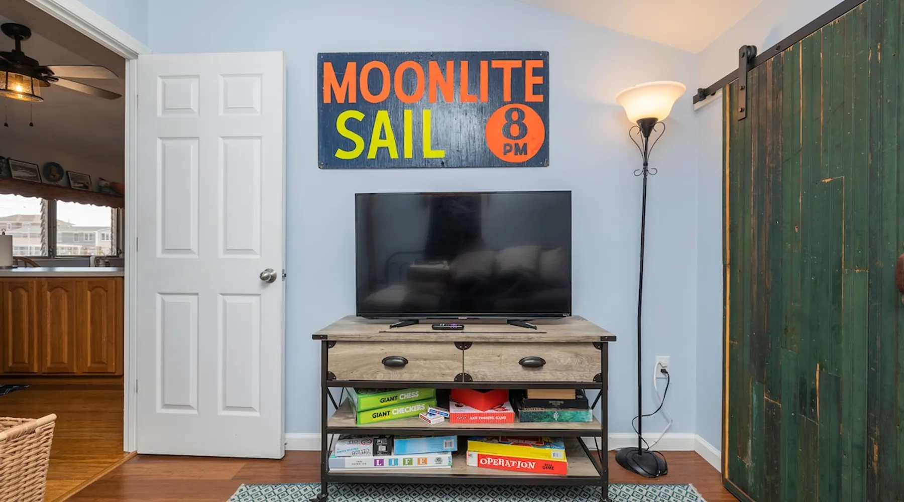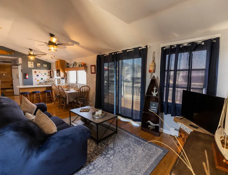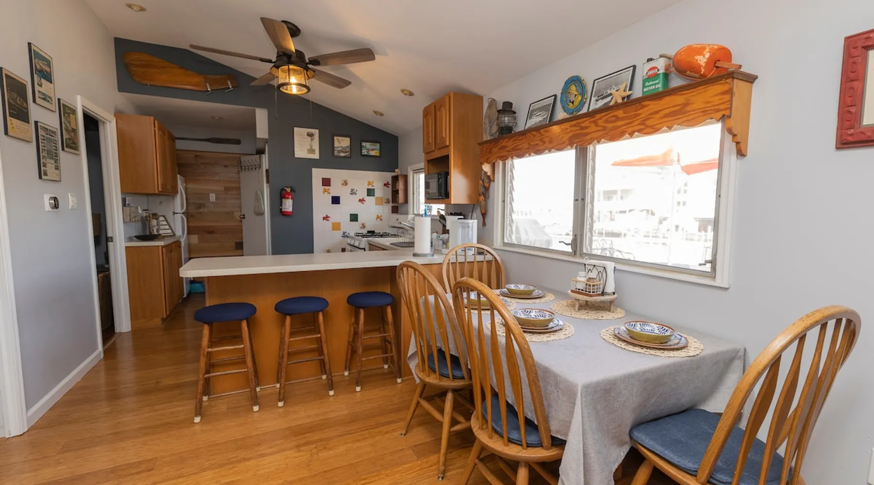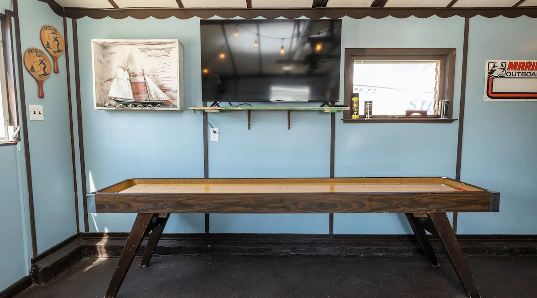 New split air conditioning units have been added as of 2023! Charming waterfront ranch on a quiet lagoon in Tuckerton Beach. Bring your boat to put in at one of our local marina ramps and dock in front of our house for your entire stay! Enjoy the view, kayaks (2), fire pit, and meals on the grill for a true lagoon life experience! We would love to host your fishing trip, get away, or family vacation! Pets are welcome but please include them in your reservation for accurate pricing. The space 3 bedrooms, 5 beds (1 Queen, 1 Full, 1 Trundle day bed with 2 twin mattresses and 1 full pull-out couch). Third bedroom has door entrance to the game room. One full bathroom with shower tub, fully stocked kitchen, spacious garage that doubles as a game room, large deck and stone yard fenced in on both sides. Please note there is no fence between the yard and water Guest access Front door is a smart lock. The access code will be sent before your arrival.