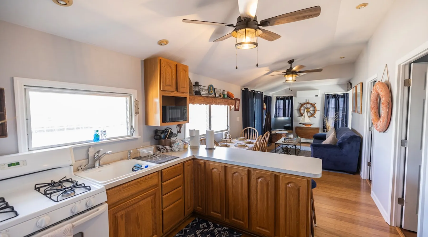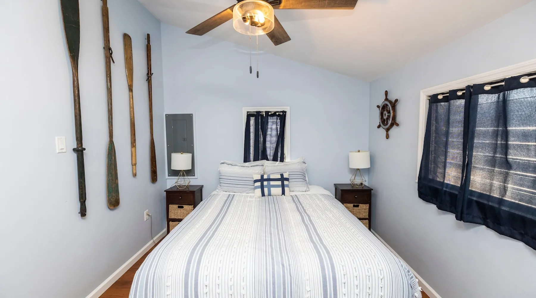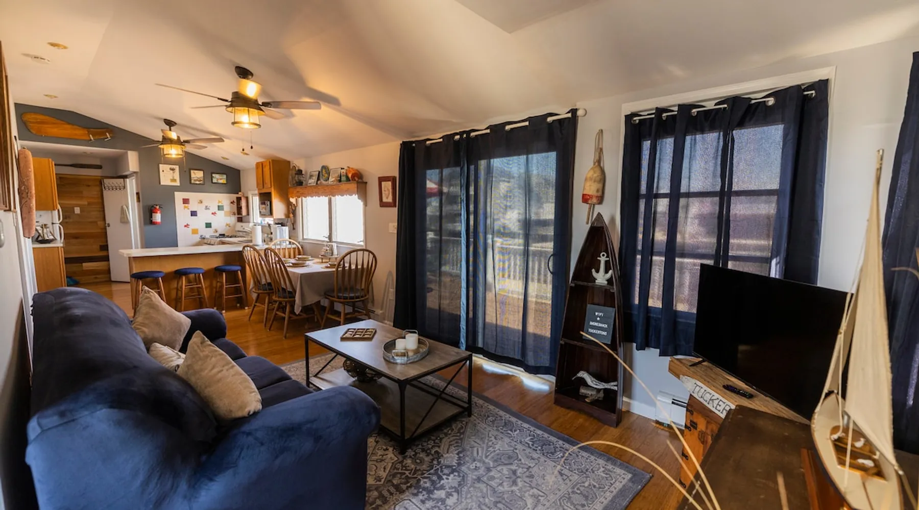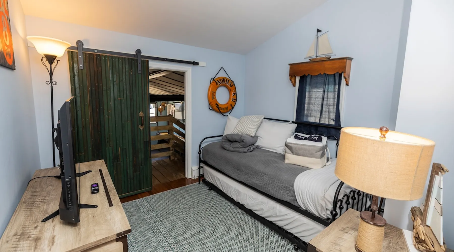 New split air conditioning units have been added as of 2023! Charming waterfront ranch on a quiet lagoon in Tuckerton Beach. Bring your boat to put in at one of our local marina ramps and dock in front of our house for your entire stay! Enjoy the view, kayaks (2), fire pit, and meals on the grill for a true lagoon life experience! We would love to host your fishing trip, get away, or family vacation! Pets are welcome but please include them in your reservation for accurate pricing. The space 3 bedrooms, 5 beds (1 Queen, 1 Full, 1 Trundle day bed with 2 twin mattresses and 1 full pull-out couch). Third bedroom has door entrance to the game room. One full bathroom with shower tub, fully stocked kitchen, spacious garage that doubles as a game room, large deck and stone yard fenced in on both sides. Please note there is no fence between the yard and water Guest access Front door is a smart lock. The access code will be sent before your arrival.