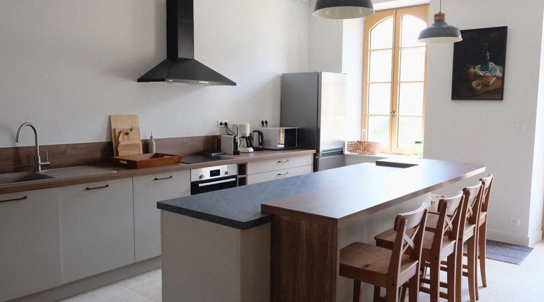 On the edge of Sèvre Nantaise and in the heart of the Vendée countryside, the Louisière is a former agricultural estate where the Château, the Ferme and the Etable have formed an elegant and peaceful ensemble since 1845. Located 20 minutes from Puy du Fou, it allows you to enjoy all the tourist attractions of the region, to discover the richness of its history, and the beauty of its landscapes. Before the renovation work, this house was an authentic stable that has retained all the charm of its history. The space La Ferme and L'Etable are two independent accommodations sharing a common courtyard but each with a private space opening onto the countryside. Both buildings were completely renovated in 2021 respecting their original appearance: slate, granite, cut stones and bricks and offers all modern comforts in a peaceful and relaxing setting. La Ferme and L'Etable are open for rent separately from each other. A large garden allows you to fully enjoy the surrounding countryside. The barn has been restructured to make it a welcoming home while maintaining its authenticity. The awning, formerly a shelter for animals, is particularly charming and gives access to the garden directly from the living room. Access to the Sèvre Nantaise as well as the property's tennis court will enhance your stay. Ground floor: A large room consisting of a living room, equipped with a wood stove (wood reserve available), and a dining room. A large open kitchen with its island, very friendly living room. Fully equipped kitchen and small laundry room. Separate toilet. 1st floor: Two bedrooms with 160 x 200 double bed, each with a private bathroom. Two bedrooms each with two single 90 X 200 beds sharing a bathroom. 1 separate toilet. A small upstairs lounge with TV located on the landing. Bedding and appliances are new. Heating by heated floor on the ground floor (heat pump) and electric convectors upstairs. Linens and towels are provided, beds are made on arrival, you just have to enjoy this beautiful accommodation! Guest access The entire place is reserved for you. Other things to note Private access 800 m from Sèvre Nantaise, where you can fish (with a fishing license) and swim. Tennis: schedules will be agreed upon with the owner. The tennis court is in excellent condition, recently repainted.