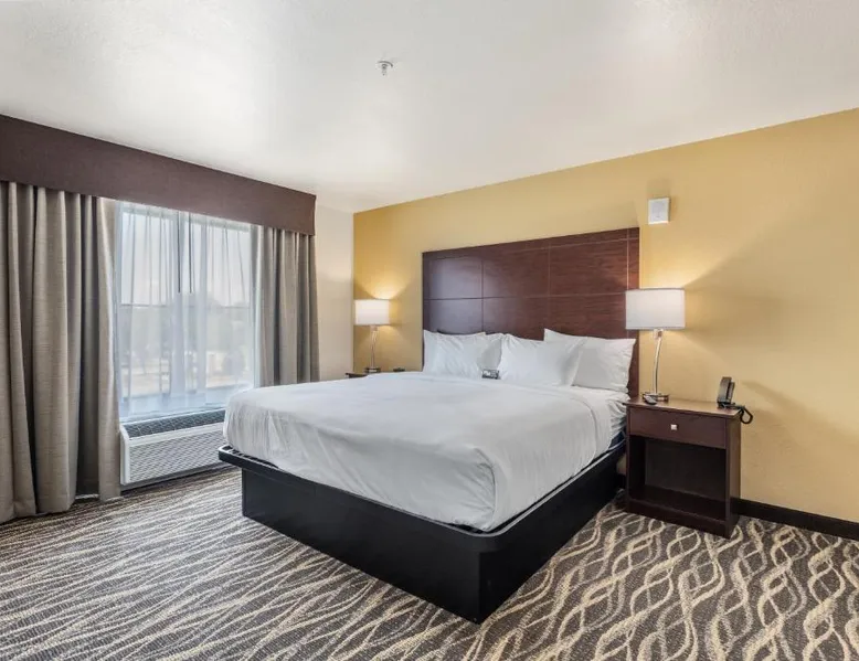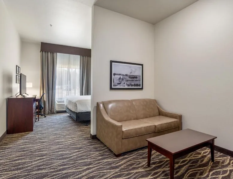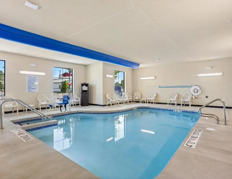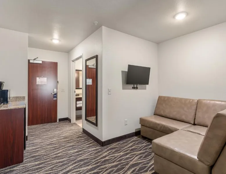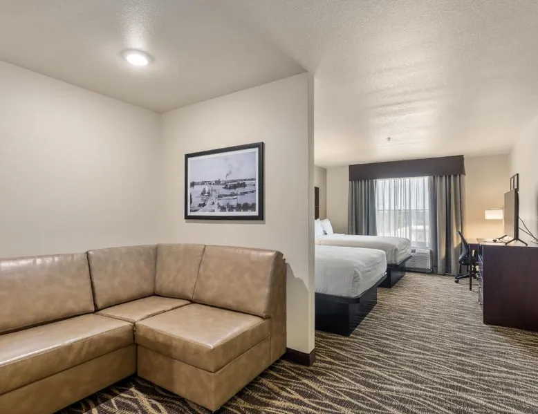 Comfortable Accommodations: Cobblestone Hotel & Suites - De Pere Green Bay in De Pere offers family rooms with air-conditioning, free WiFi, and modern amenities. Each room includes a tea and coffee maker, refrigerator, microwave, and free toiletries. Dining and Leisure: Guests can enjoy American and Steakhouse cuisines at the on-site restaurant, which serves dinner. The hotel features a fitness center, indoor swimming pool, and bar. Additional facilities include a lounge, outdoor fireplace, and outdoor seating area. Convenient Location: Located 5 mi from Green Bay–Austin Straubel International Airport, the hotel is a 6-minute walk from St. Norbert College. Nearby attractions include Lambeau Field (6.2 mi) and the National Railroad Museum (3.7 mi). An ice-skating rink is also in the surroundings. Guest Satisfaction: Highly rated for its attentive staff, room cleanliness, and comfort, the hotel ensures a pleasant stay for all visitors. In the kitchenette, guests will find a stovetop, a refrigerator, a microwave and a tea and coffee maker. The suite offers air conditioning. The unit has 2 beds.