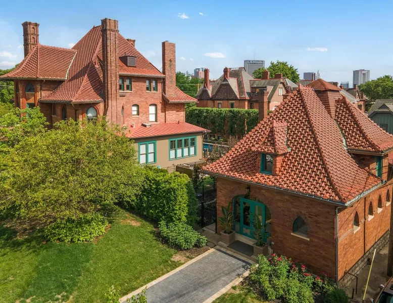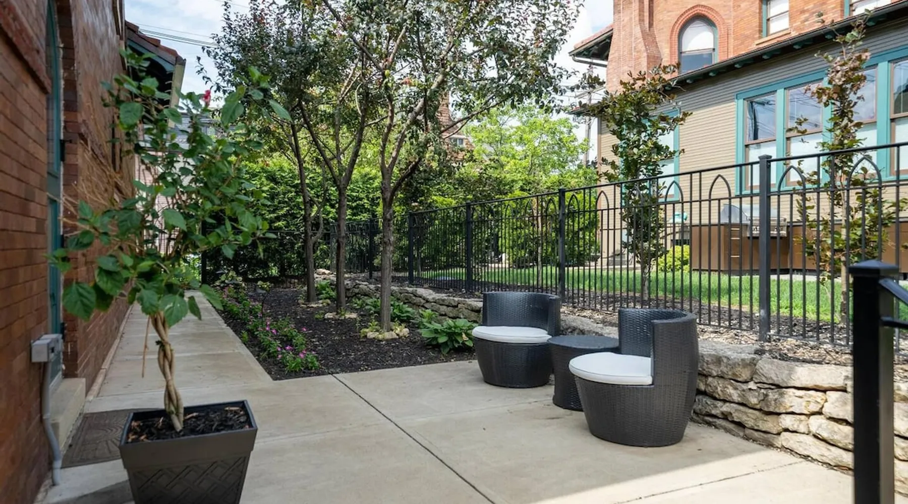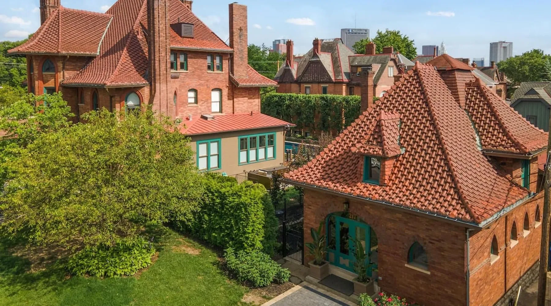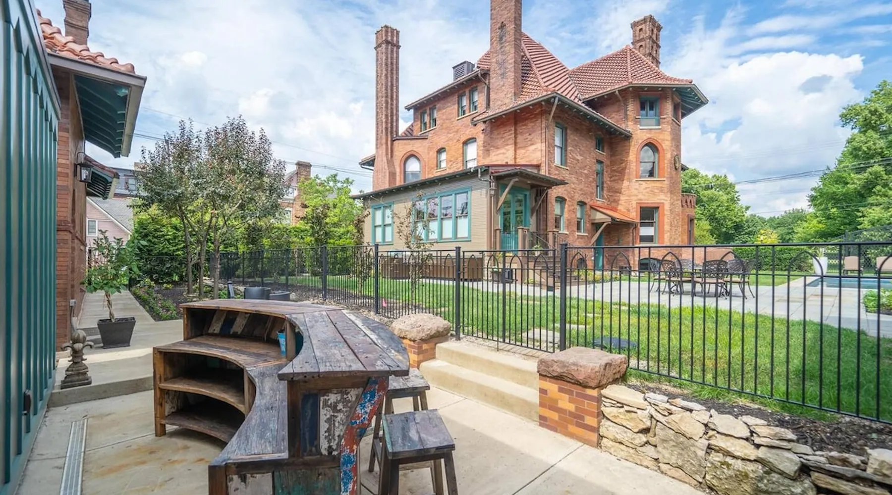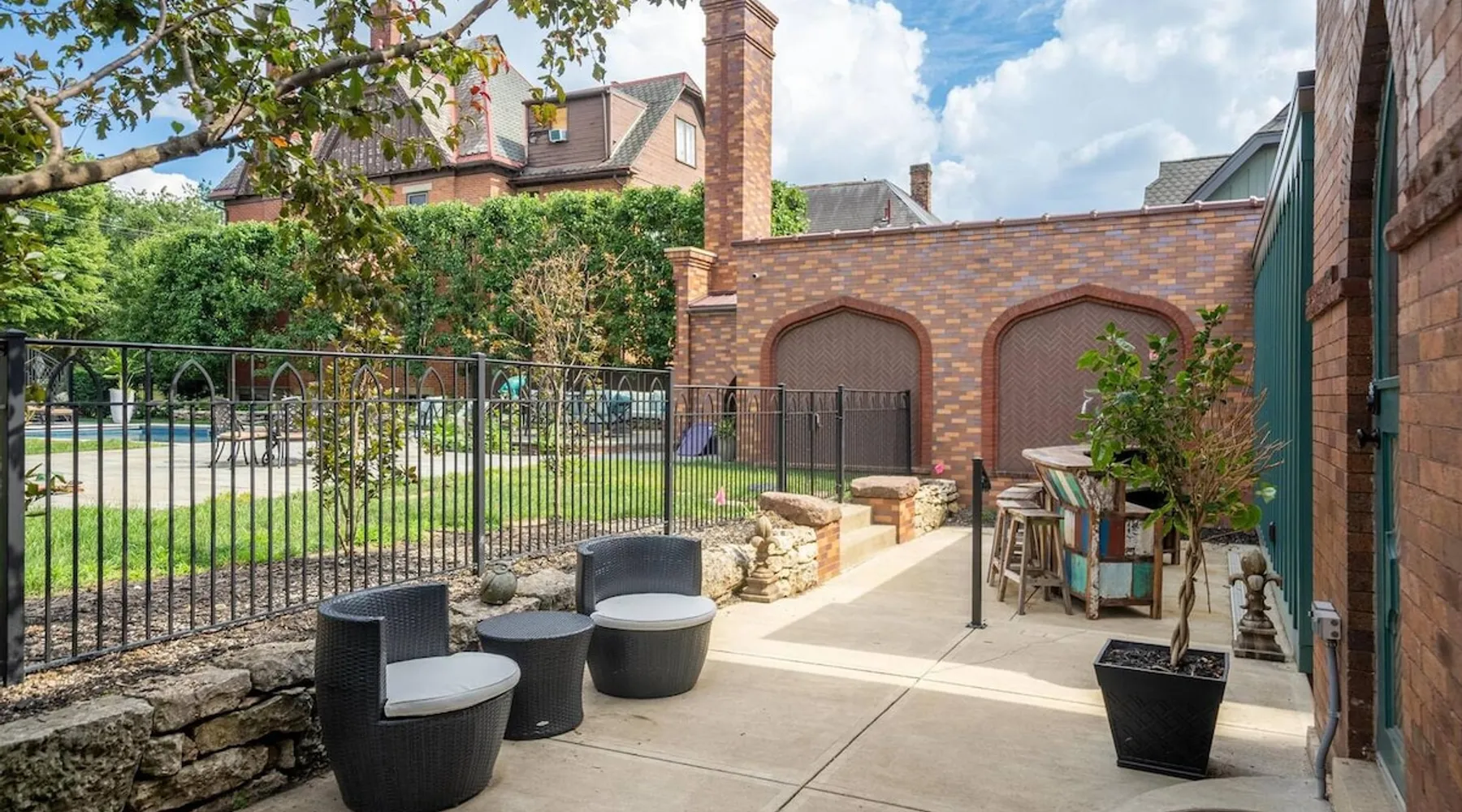 ⭐ Featured on Condé Nast's best of Columbus list, May 2025 ⭐ The "Circus House" is a Columbus landmark, standing at the northwest corner of Goodale Park since 1895. Originally built for the owner's horses, the carriage house along Buttles now features: ✔️ Two bedrooms upstairs, each with en suite bathroom ✔️ Reserved driveway parking for two vehicles ✔️ Fenced patio area with views of the Circus House ✔️ Unique triangular windows (for the horses to stick their heads through) The space This home was built in 1895 by renowned architect Frank Packard for his client Peter Sells, the owner of the Sells Brothers Circus. The adjacent carriage house was built on the estate as an outbuilding for his horses and sheltered parking for his carriage. Rumor has it that the building was used on occasion for temporary housing of the circus lions and elephants. In the 1940s, the home was converted to a private residence and has since been used for that purpose. Outdoor space: The private driveway is long enough for two vehicles, stacked end to end. Through the kitchen door, guests will have access to a large outdoor patio space, including an outdoor bar and seating areas. There is a metal fence with a locked gate that leads to the owners' pool - you will not have access to this gate. First floor: The front door opens into the living and dining area. The kitchen features a large countertop with eat-in barstools. A drip coffee maker, grinder, and whole coffee beans are provided. The half bath and laundry facilities are here on the first floor. Recently added is a king-size sleeper sofa, so the home can accommodate up to 6 guests. For guests sleeping in the living room, please be aware that the triangular windows do not have blinds or curtains. If you plan to use this, please let us know in advance so we can set out extra bedding. Second floor: Upstairs, in what was originally the hay loft, guests will enjoy the character of 120-year old original pine wood floors. If you look closely, you'll see the remnants of a trap door in the floor that could be opened from above to drop hay down to the horses below. The front bedroom has a queen bed and private en suite bathroom with a clawfoot soaking tub and a shower; the rear bedroom features a California King bed with another private full bathroom (shower only, no tub). Guest access You will be able to access the entire carriage house and the courtyard through the kitchen door. The courtyard leads to a garage and to a gate into the owner's yard - guests will not have access to the garage or pool area. Please be advised that the property does have an exterior security camera system and that the owners live on the property, in the main house. Other things to note Please note: this is a pet-friendly listing, so we do not recommend it for anyone with severe pet allergies. For our guests with pets, please note that the owners have dogs (small dogs). It is possible that the owners' dogs will try to say hello to your pets through the patio fence. Please be aware of this and do not leave your pets unattended in the courtyard area. *The TV does not have cable or access to any free live channels. It is a “smart” TV only. You will need to log into your own streaming accounts to play content on the TV. Registration Details 2025-1165