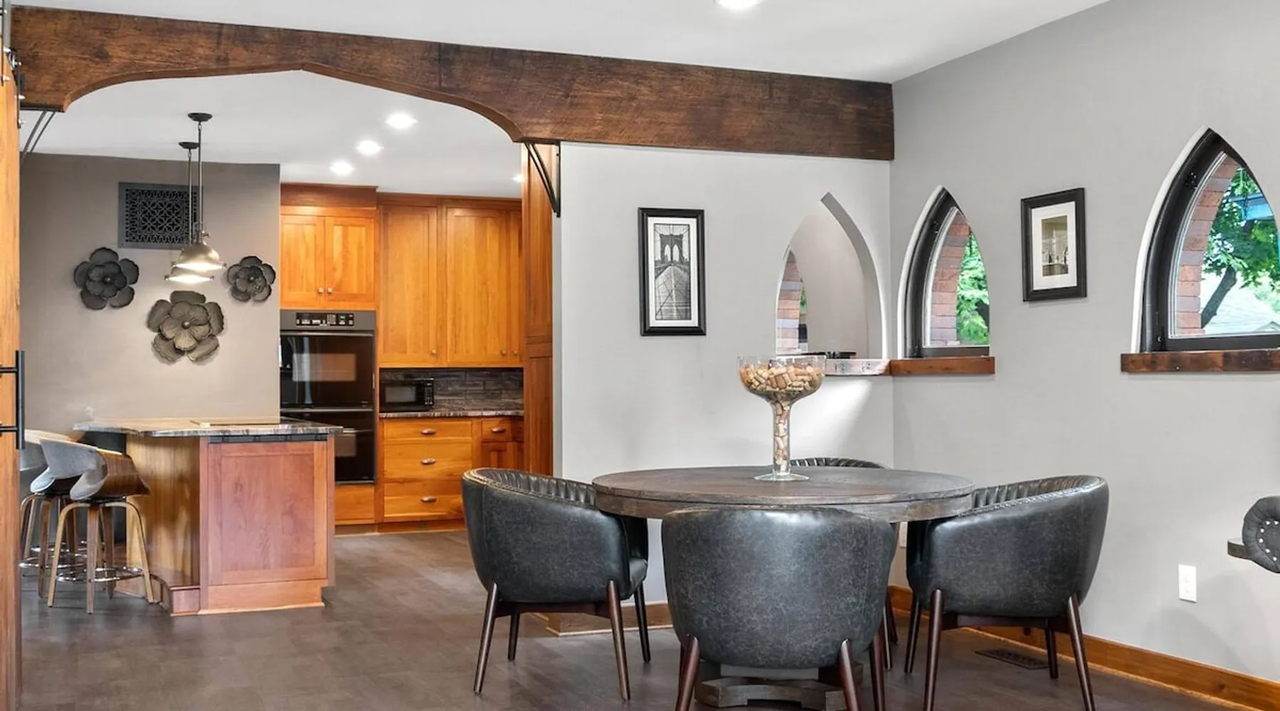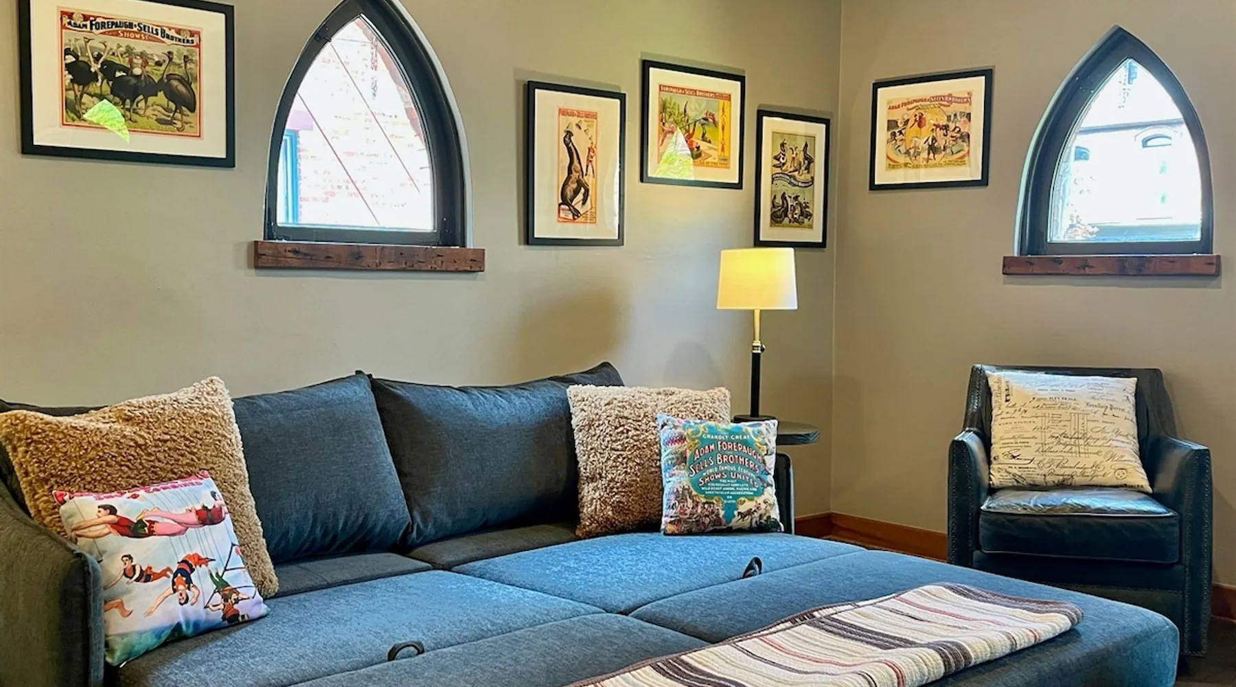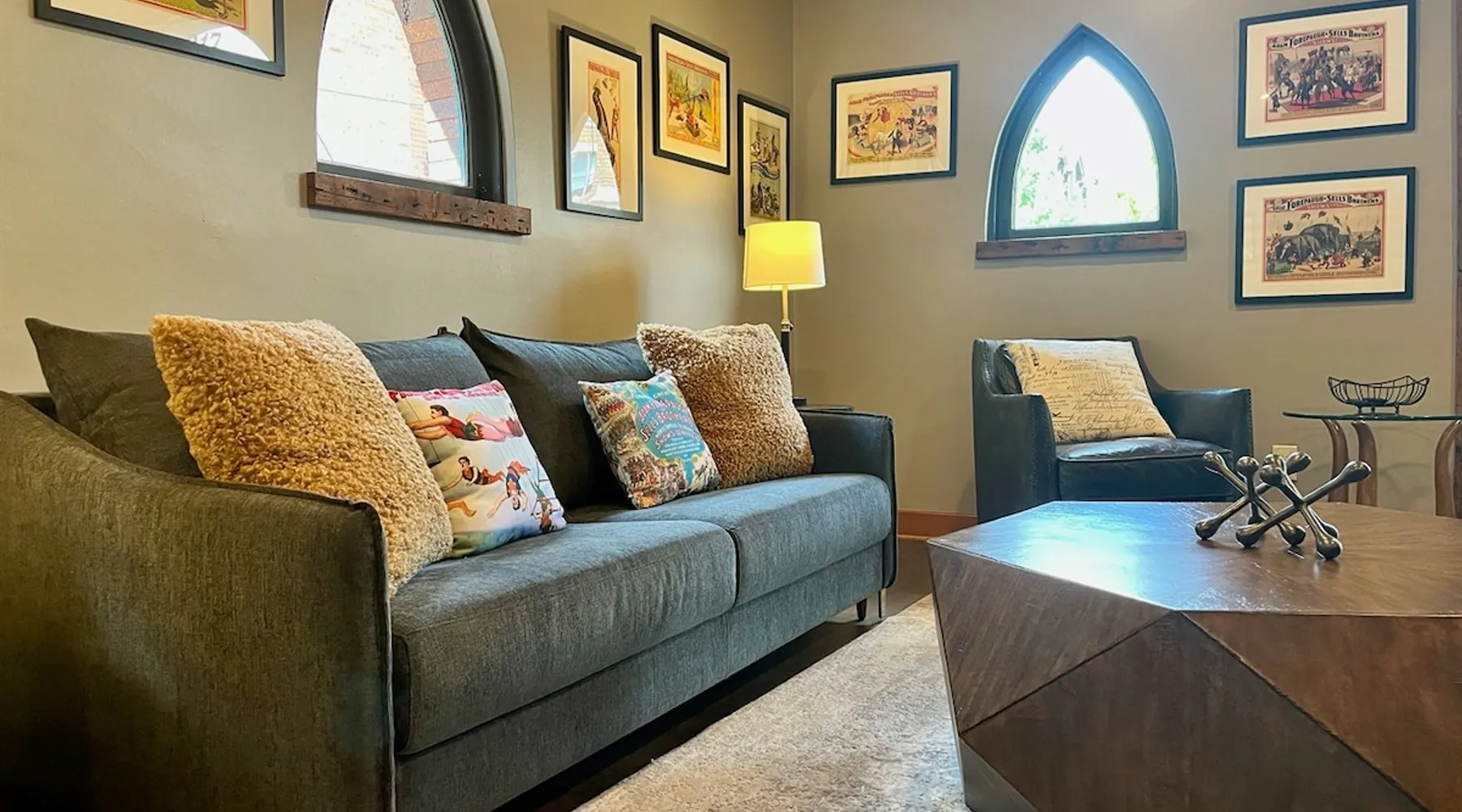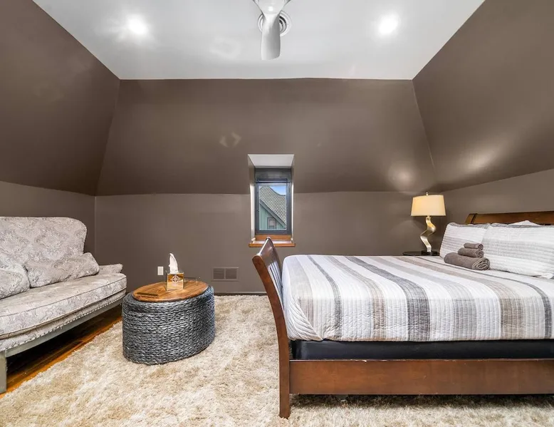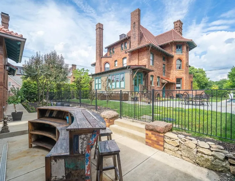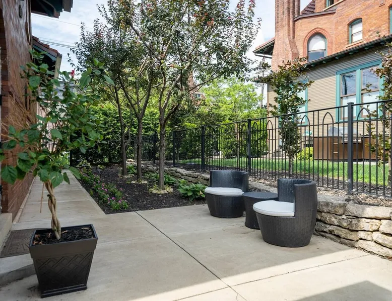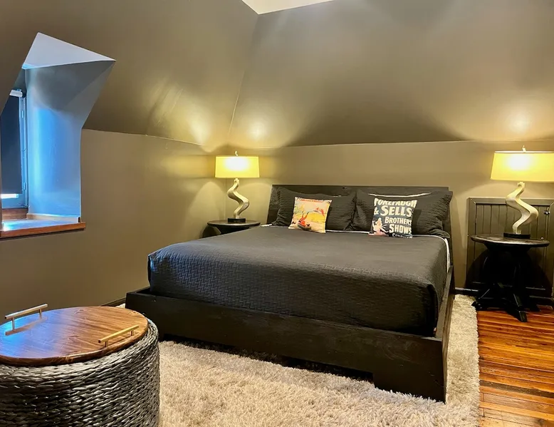 ⭐ Featured on Condé Nast's best of Columbus list, May 2025 ⭐ The "Circus House" is a Columbus landmark, standing at the northwest corner of Goodale Park since 1895. Originally built for the owner's horses, the carriage house along Buttles now features: ✔️ Two bedrooms upstairs, each with en suite bathroom ✔️ Reserved driveway parking for two vehicles ✔️ Fenced patio area with views of the Circus House ✔️ Unique triangular windows (for the horses to stick their heads through) The space This home was built in 1895 by renowned architect Frank Packard for his client Peter Sells, the owner of the Sells Brothers Circus. The adjacent carriage house was built on the estate as an outbuilding for his horses and sheltered parking for his carriage. Rumor has it that the building was used on occasion for temporary housing of the circus lions and elephants. In the 1940s, the home was converted to a private residence and has since been used for that purpose. Outdoor space: The private driveway is long enough for two vehicles, stacked end to end. Through the kitchen door, guests will have access to a large outdoor patio space, including an outdoor bar and seating areas. There is a metal fence with a locked gate that leads to the owners' pool - you will not have access to this gate. First floor: The front door opens into the living and dining area. The kitchen features a large countertop with eat-in barstools. A drip coffee maker, grinder, and whole coffee beans are provided. The half bath and laundry facilities are here on the first floor. Recently added is a king-size sleeper sofa, so the home can accommodate up to 6 guests. For guests sleeping in the living room, please be aware that the triangular windows do not have blinds or curtains. If you plan to use this, please let us know in advance so we can set out extra bedding. Second floor: Upstairs, in what was originally the hay loft, guests will enjoy the character of 120-year old original pine wood floors. If you look closely, you'll see the remnants of a trap door in the floor that could be opened from above to drop hay down to the horses below. The front bedroom has a queen bed and private en suite bathroom with a clawfoot soaking tub and a shower; the rear bedroom features a California King bed with another private full bathroom (shower only, no tub). Guest access You will be able to access the entire carriage house and the courtyard through the kitchen door. The courtyard leads to a garage and to a gate into the owner's yard - guests will not have access to the garage or pool area. Please be advised that the property does have an exterior security camera system and that the owners live on the property, in the main house. Other things to note Please note: this is a pet-friendly listing, so we do not recommend it for anyone with severe pet allergies. For our guests with pets, please note that the owners have dogs (small dogs). It is possible that the owners' dogs will try to say hello to your pets through the patio fence. Please be aware of this and do not leave your pets unattended in the courtyard area. *The TV does not have cable or access to any free live channels. It is a “smart” TV only. You will need to log into your own streaming accounts to play content on the TV. Registration Details 2025-1165