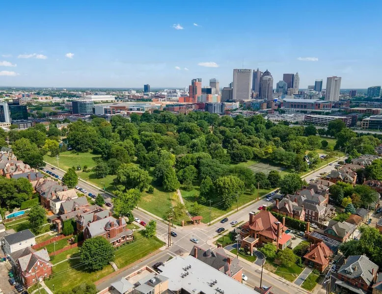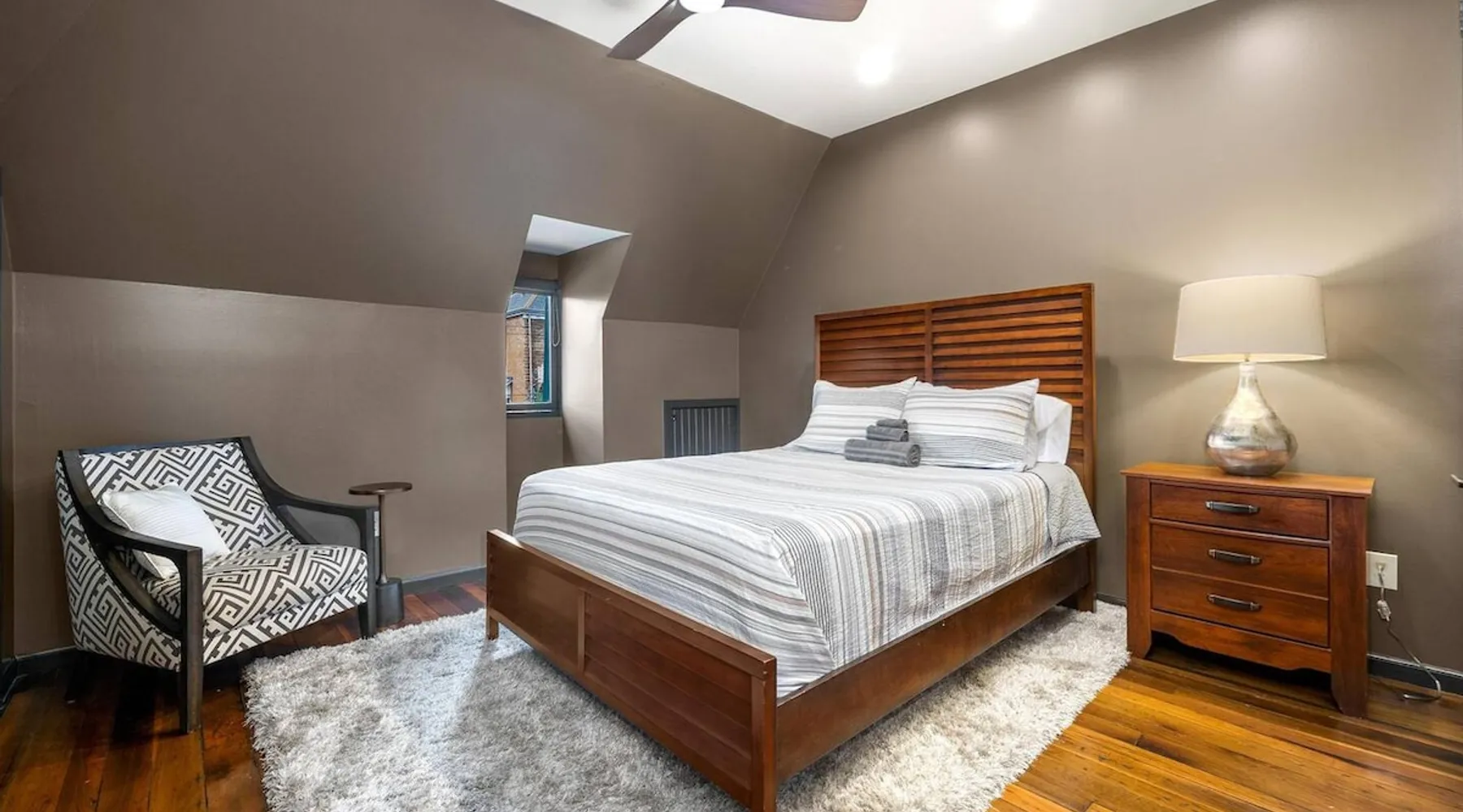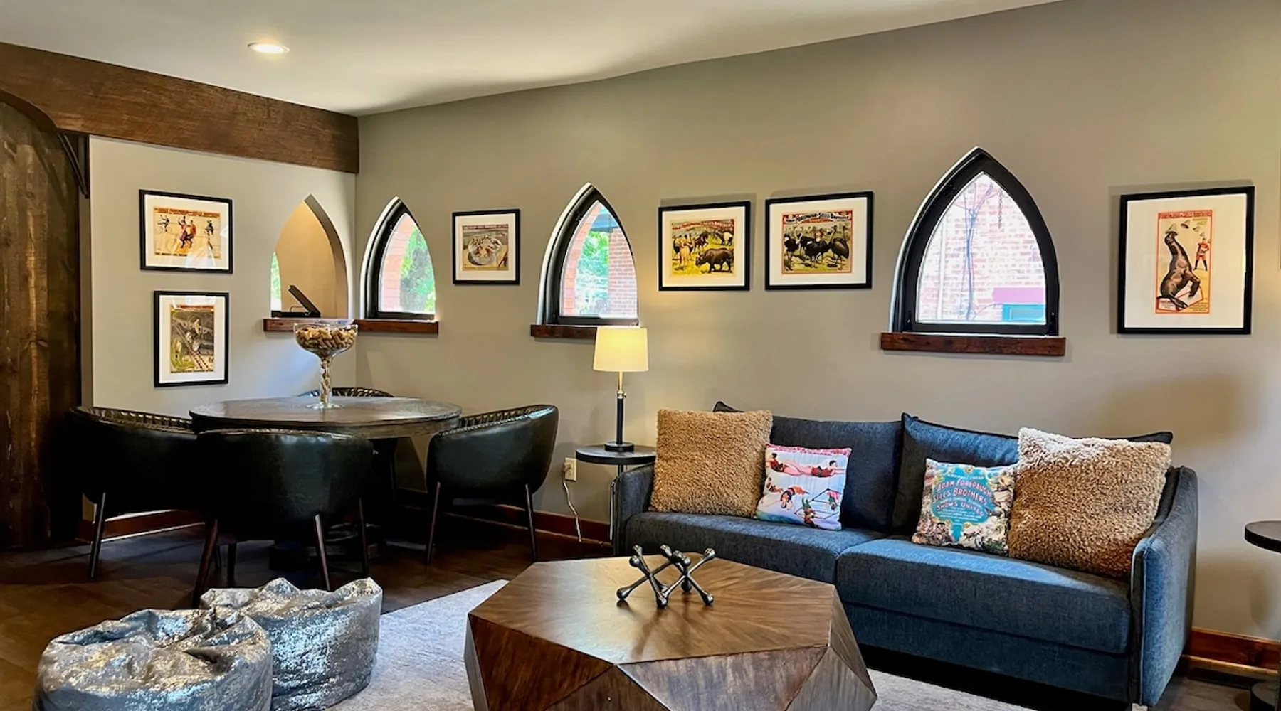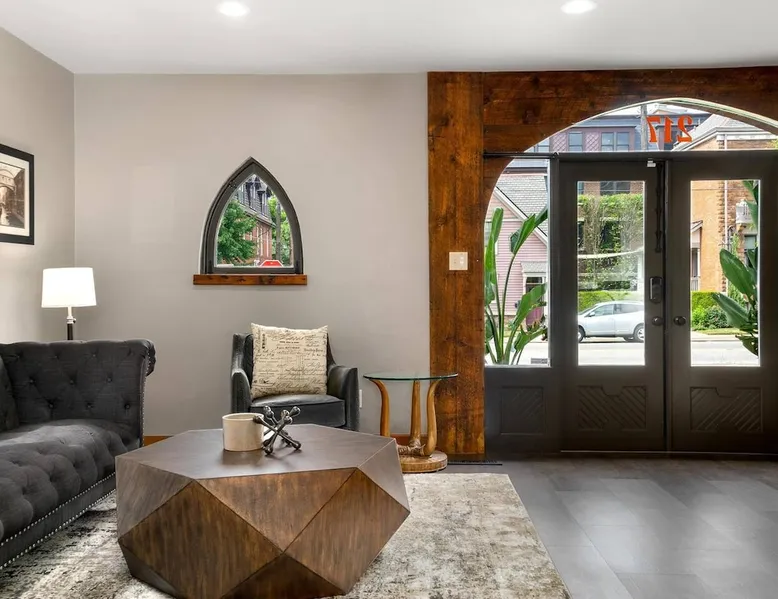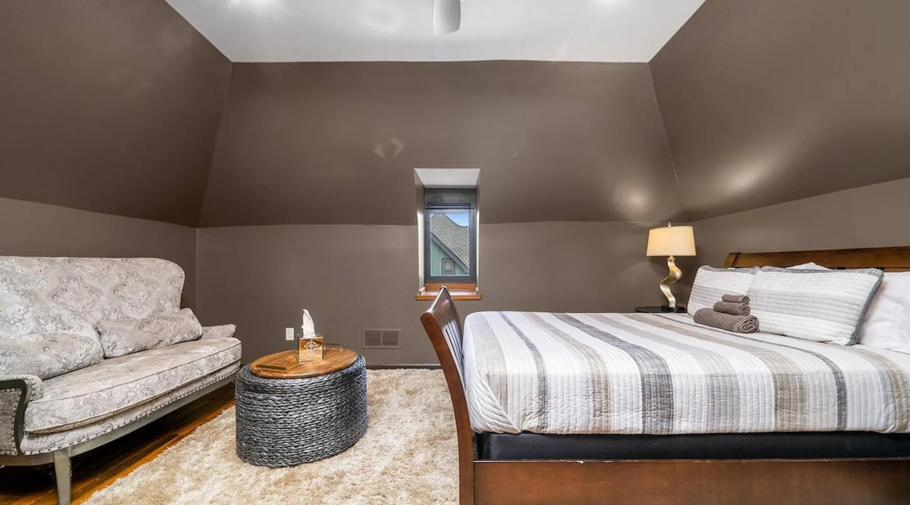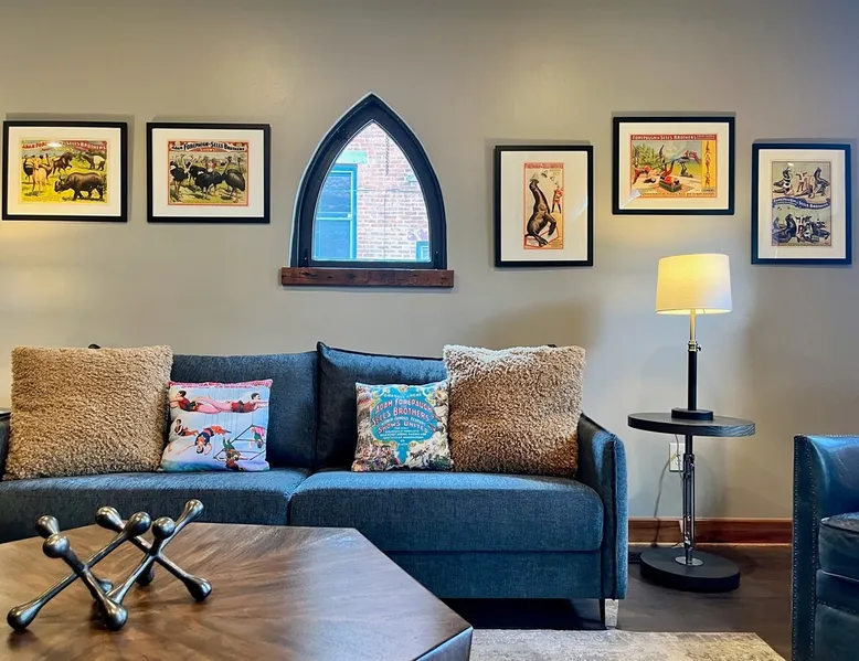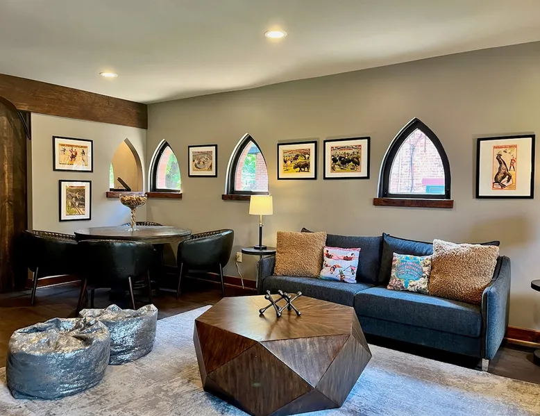 ⭐ Featured on Condé Nast's best of Columbus list, May 2025 ⭐ The "Circus House" is a Columbus landmark, standing at the northwest corner of Goodale Park since 1895. Originally built for the owner's horses, the carriage house along Buttles now features: ✔️ Two bedrooms upstairs, each with en suite bathroom ✔️ Reserved driveway parking for two vehicles ✔️ Fenced patio area with views of the Circus House ✔️ Unique triangular windows (for the horses to stick their heads through) The space This home was built in 1895 by renowned architect Frank Packard for his client Peter Sells, the owner of the Sells Brothers Circus. The adjacent carriage house was built on the estate as an outbuilding for his horses and sheltered parking for his carriage. Rumor has it that the building was used on occasion for temporary housing of the circus lions and elephants. In the 1940s, the home was converted to a private residence and has since been used for that purpose. Outdoor space: The private driveway is long enough for two vehicles, stacked end to end. Through the kitchen door, guests will have access to a large outdoor patio space, including an outdoor bar and seating areas. There is a metal fence with a locked gate that leads to the owners' pool - you will not have access to this gate. First floor: The front door opens into the living and dining area. The kitchen features a large countertop with eat-in barstools. A drip coffee maker, grinder, and whole coffee beans are provided. The half bath and laundry facilities are here on the first floor. Recently added is a king-size sleeper sofa, so the home can accommodate up to 6 guests. For guests sleeping in the living room, please be aware that the triangular windows do not have blinds or curtains. If you plan to use this, please let us know in advance so we can set out extra bedding. Second floor: Upstairs, in what was originally the hay loft, guests will enjoy the character of 120-year old original pine wood floors. If you look closely, you'll see the remnants of a trap door in the floor that could be opened from above to drop hay down to the horses below. The front bedroom has a queen bed and private en suite bathroom with a clawfoot soaking tub and a shower; the rear bedroom features a California King bed with another private full bathroom (shower only, no tub). Guest access You will be able to access the entire carriage house and the courtyard through the kitchen door. The courtyard leads to a garage and to a gate into the owner's yard - guests will not have access to the garage or pool area. Please be advised that the property does have an exterior security camera system and that the owners live on the property, in the main house. Other things to note Please note: this is a pet-friendly listing, so we do not recommend it for anyone with severe pet allergies. For our guests with pets, please note that the owners have dogs (small dogs). It is possible that the owners' dogs will try to say hello to your pets through the patio fence. Please be aware of this and do not leave your pets unattended in the courtyard area. *The TV does not have cable or access to any free live channels. It is a “smart” TV only. You will need to log into your own streaming accounts to play content on the TV. Registration Details 2025-1165