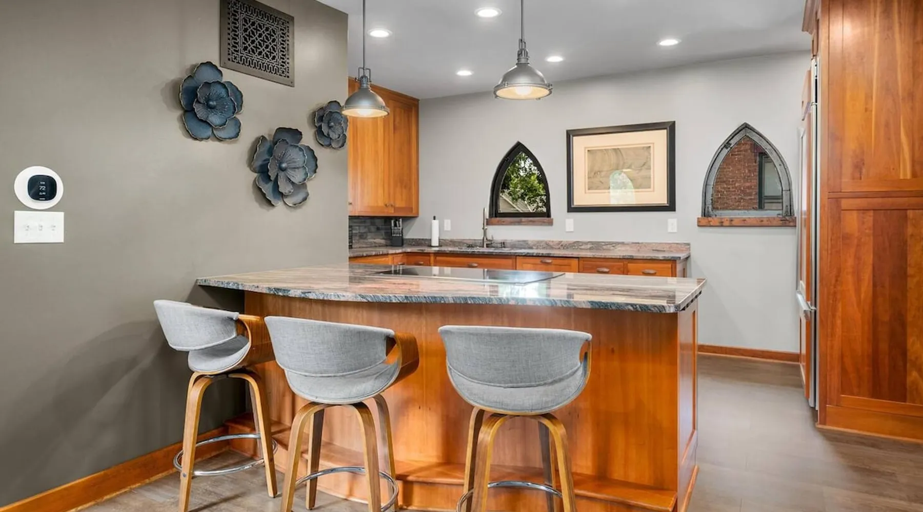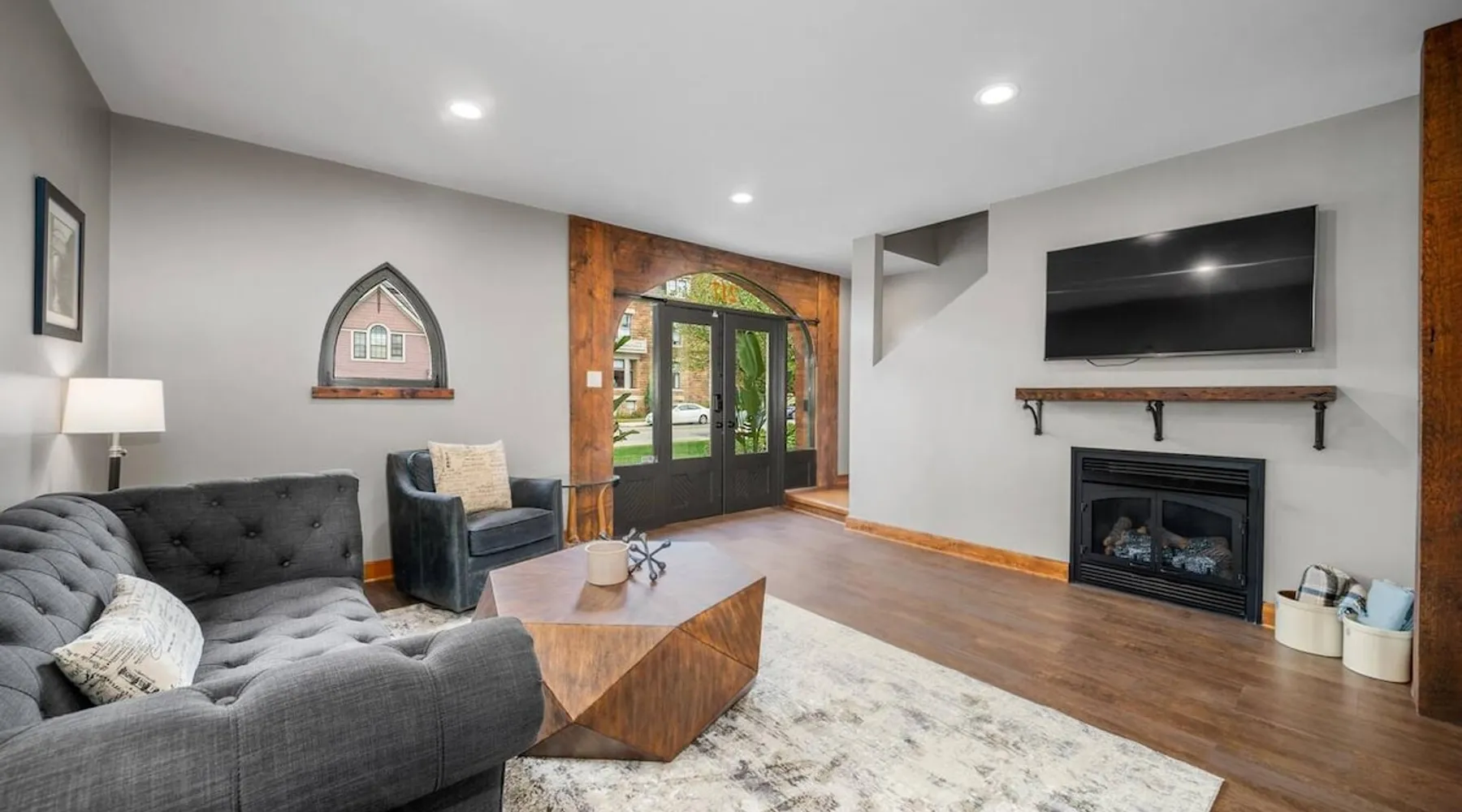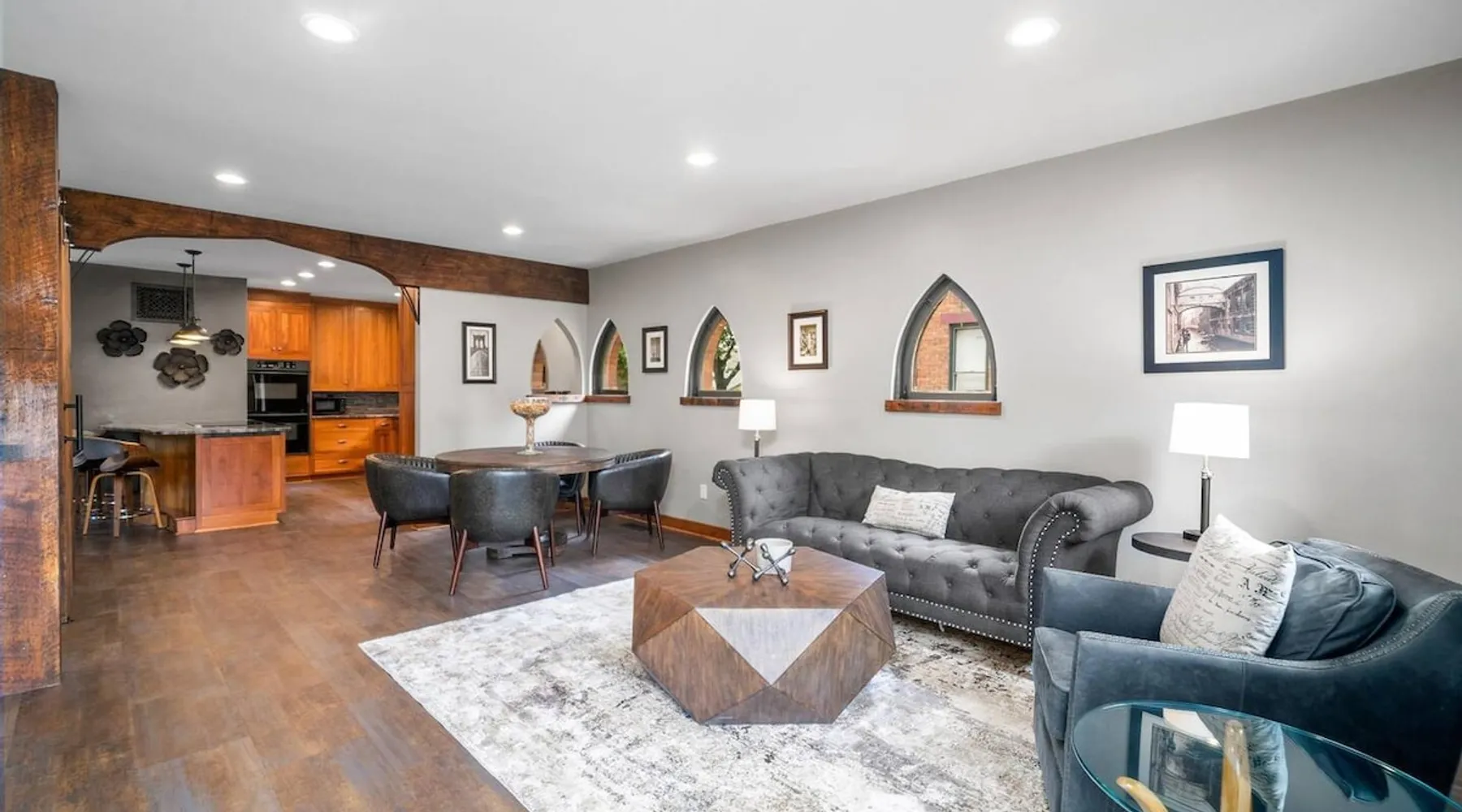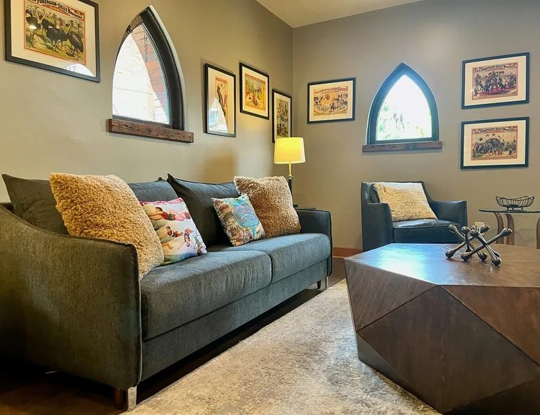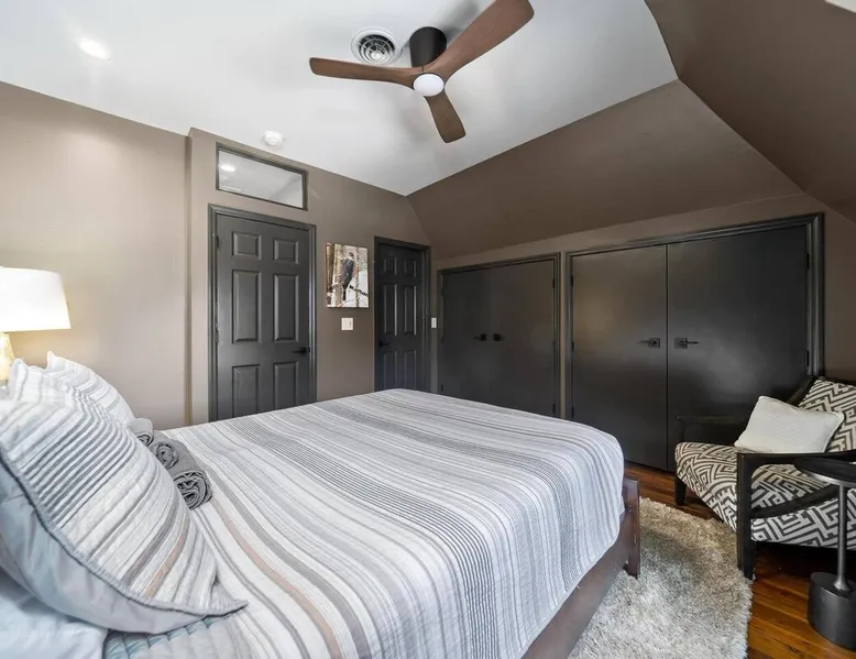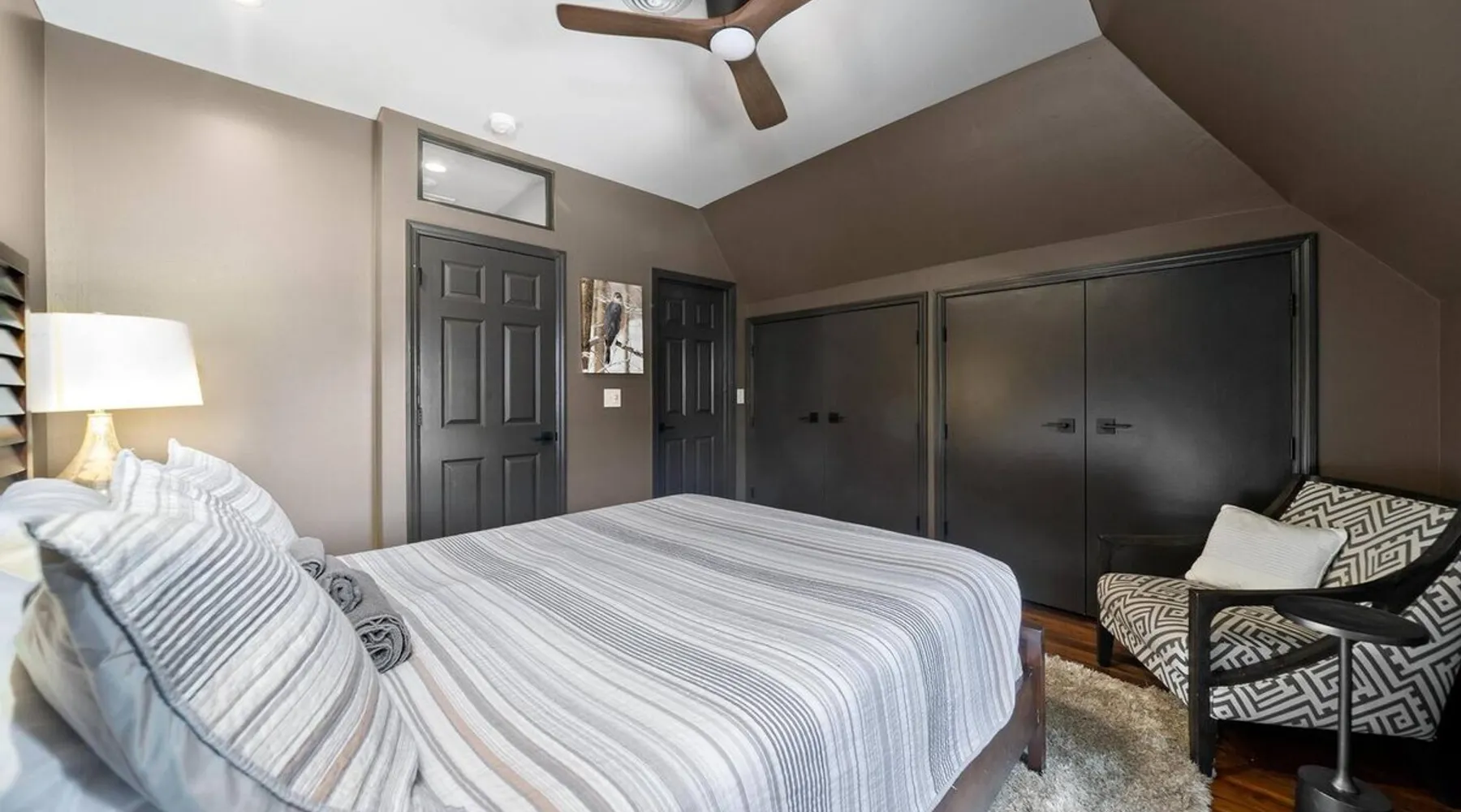 ⭐ Featured on Condé Nast's best of Columbus list, May 2025 ⭐ The "Circus House" is a Columbus landmark, standing at the northwest corner of Goodale Park since 1895. Originally built for the owner's horses, the carriage house along Buttles now features: ✔️ Two bedrooms upstairs, each with en suite bathroom ✔️ Reserved driveway parking for two vehicles ✔️ Fenced patio area with views of the Circus House ✔️ Unique triangular windows (for the horses to stick their heads through) The space This home was built in 1895 by renowned architect Frank Packard for his client Peter Sells, the owner of the Sells Brothers Circus. The adjacent carriage house was built on the estate as an outbuilding for his horses and sheltered parking for his carriage. Rumor has it that the building was used on occasion for temporary housing of the circus lions and elephants. In the 1940s, the home was converted to a private residence and has since been used for that purpose. Outdoor space: The private driveway is long enough for two vehicles, stacked end to end. Through the kitchen door, guests will have access to a large outdoor patio space, including an outdoor bar and seating areas. There is a metal fence with a locked gate that leads to the owners' pool - you will not have access to this gate. First floor: The front door opens into the living and dining area. The kitchen features a large countertop with eat-in barstools. A drip coffee maker, grinder, and whole coffee beans are provided. The half bath and laundry facilities are here on the first floor. Recently added is a king-size sleeper sofa, so the home can accommodate up to 6 guests. For guests sleeping in the living room, please be aware that the triangular windows do not have blinds or curtains. If you plan to use this, please let us know in advance so we can set out extra bedding. Second floor: Upstairs, in what was originally the hay loft, guests will enjoy the character of 120-year old original pine wood floors. If you look closely, you'll see the remnants of a trap door in the floor that could be opened from above to drop hay down to the horses below. The front bedroom has a queen bed and private en suite bathroom with a clawfoot soaking tub and a shower; the rear bedroom features a California King bed with another private full bathroom (shower only, no tub). Guest access You will be able to access the entire carriage house and the courtyard through the kitchen door. The courtyard leads to a garage and to a gate into the owner's yard - guests will not have access to the garage or pool area. Please be advised that the property does have an exterior security camera system and that the owners live on the property, in the main house. Other things to note Please note: this is a pet-friendly listing, so we do not recommend it for anyone with severe pet allergies. For our guests with pets, please note that the owners have dogs (small dogs). It is possible that the owners' dogs will try to say hello to your pets through the patio fence. Please be aware of this and do not leave your pets unattended in the courtyard area. *The TV does not have cable or access to any free live channels. It is a “smart” TV only. You will need to log into your own streaming accounts to play content on the TV. Registration Details 2025-1165