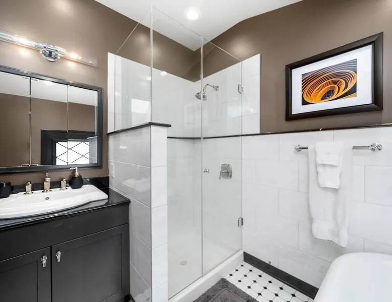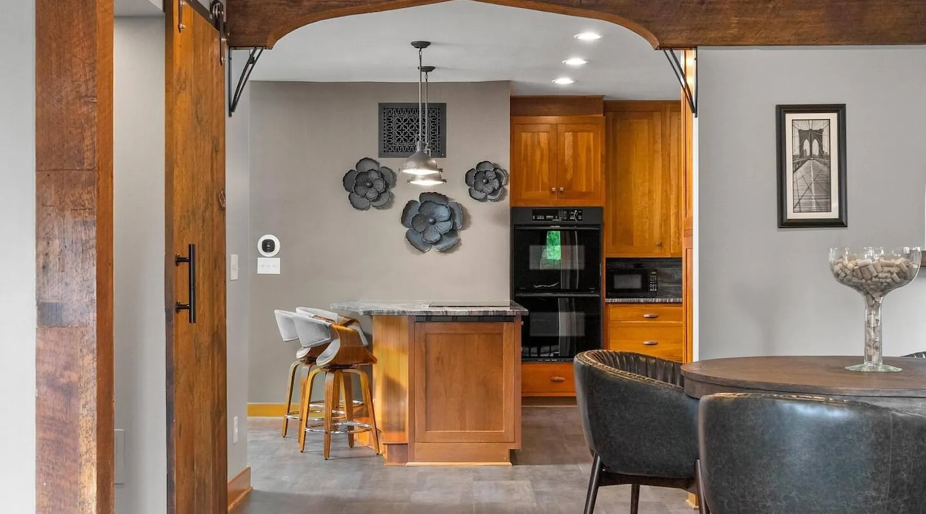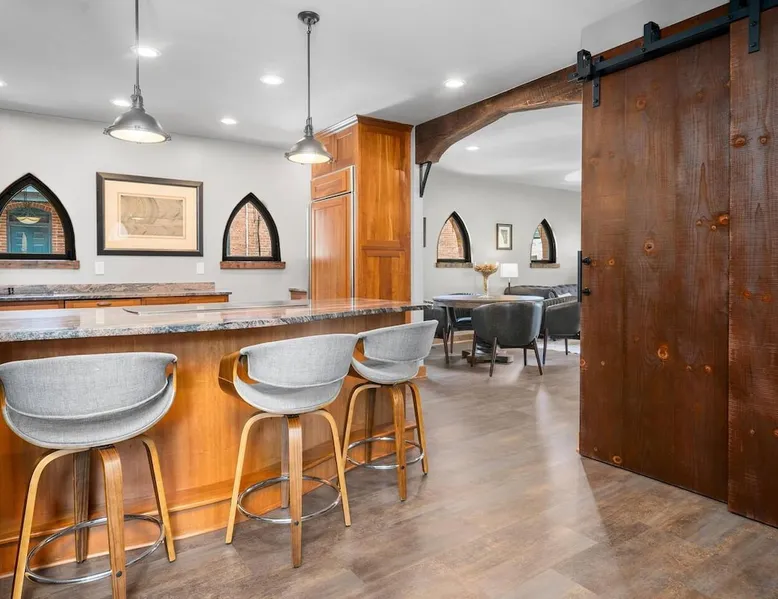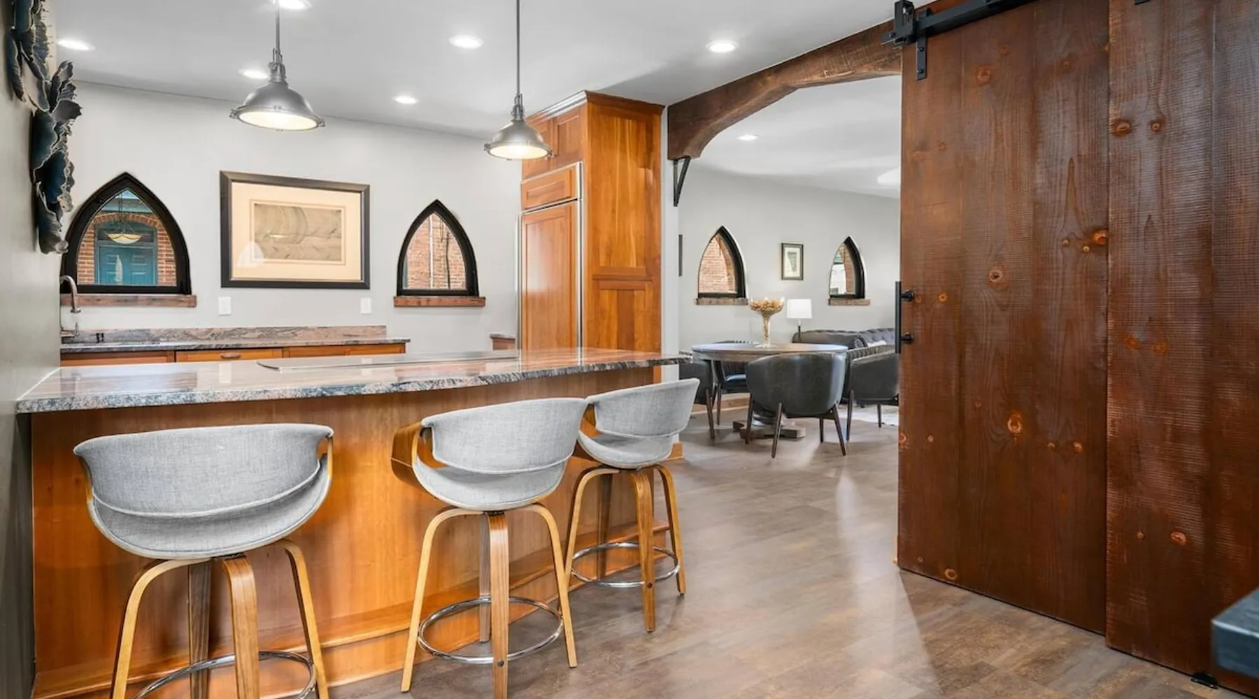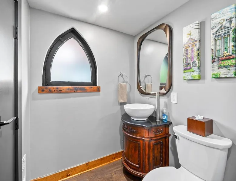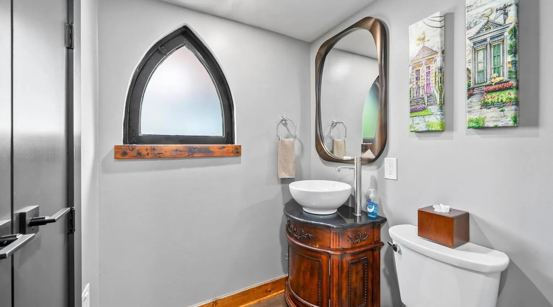 ⭐ Featured on Condé Nast's best of Columbus list, May 2025 ⭐ The "Circus House" is a Columbus landmark, standing at the northwest corner of Goodale Park since 1895. Originally built for the owner's horses, the carriage house along Buttles now features: ✔️ Two bedrooms upstairs, each with en suite bathroom ✔️ Reserved driveway parking for two vehicles ✔️ Fenced patio area with views of the Circus House ✔️ Unique triangular windows (for the horses to stick their heads through) The space This home was built in 1895 by renowned architect Frank Packard for his client Peter Sells, the owner of the Sells Brothers Circus. The adjacent carriage house was built on the estate as an outbuilding for his horses and sheltered parking for his carriage. Rumor has it that the building was used on occasion for temporary housing of the circus lions and elephants. In the 1940s, the home was converted to a private residence and has since been used for that purpose. Outdoor space: The private driveway is long enough for two vehicles, stacked end to end. Through the kitchen door, guests will have access to a large outdoor patio space, including an outdoor bar and seating areas. There is a metal fence with a locked gate that leads to the owners' pool - you will not have access to this gate. First floor: The front door opens into the living and dining area. The kitchen features a large countertop with eat-in barstools. A drip coffee maker, grinder, and whole coffee beans are provided. The half bath and laundry facilities are here on the first floor. Recently added is a king-size sleeper sofa, so the home can accommodate up to 6 guests. For guests sleeping in the living room, please be aware that the triangular windows do not have blinds or curtains. If you plan to use this, please let us know in advance so we can set out extra bedding. Second floor: Upstairs, in what was originally the hay loft, guests will enjoy the character of 120-year old original pine wood floors. If you look closely, you'll see the remnants of a trap door in the floor that could be opened from above to drop hay down to the horses below. The front bedroom has a queen bed and private en suite bathroom with a clawfoot soaking tub and a shower; the rear bedroom features a California King bed with another private full bathroom (shower only, no tub). Guest access You will be able to access the entire carriage house and the courtyard through the kitchen door. The courtyard leads to a garage and to a gate into the owner's yard - guests will not have access to the garage or pool area. Please be advised that the property does have an exterior security camera system and that the owners live on the property, in the main house. Other things to note Please note: this is a pet-friendly listing, so we do not recommend it for anyone with severe pet allergies. For our guests with pets, please note that the owners have dogs (small dogs). It is possible that the owners' dogs will try to say hello to your pets through the patio fence. Please be aware of this and do not leave your pets unattended in the courtyard area. *The TV does not have cable or access to any free live channels. It is a “smart” TV only. You will need to log into your own streaming accounts to play content on the TV. Registration Details 2025-1165