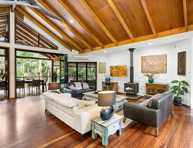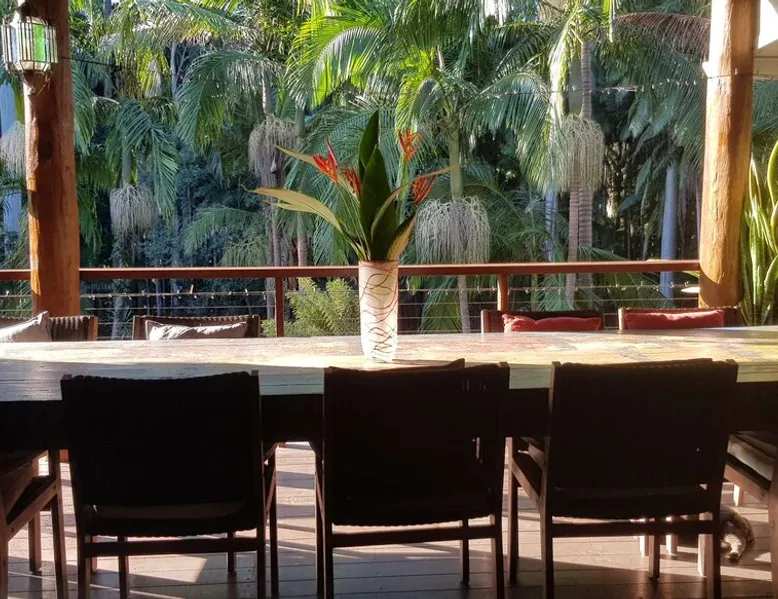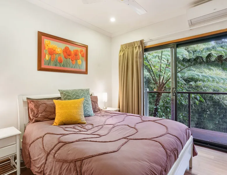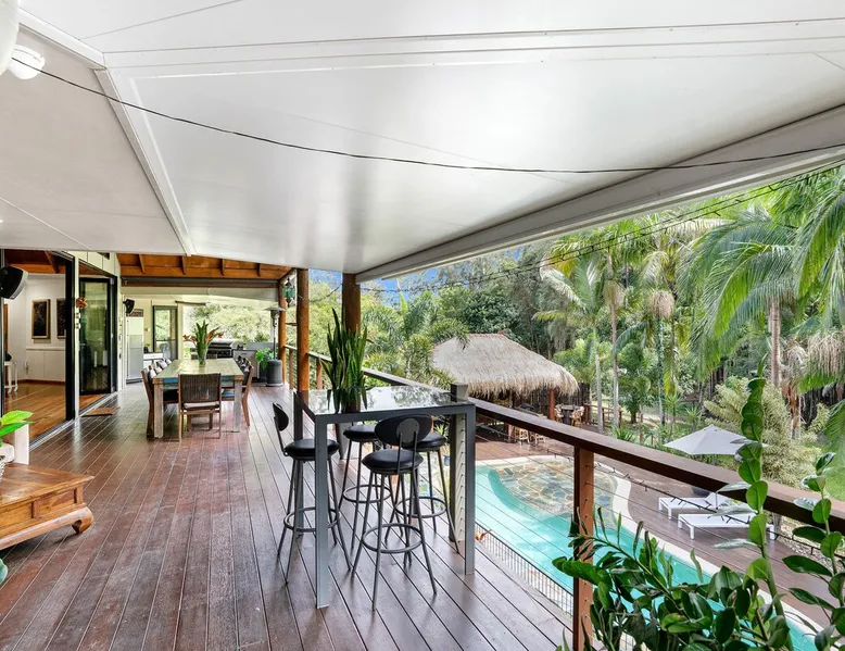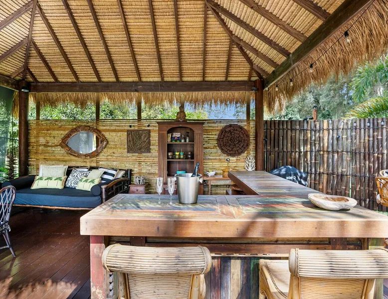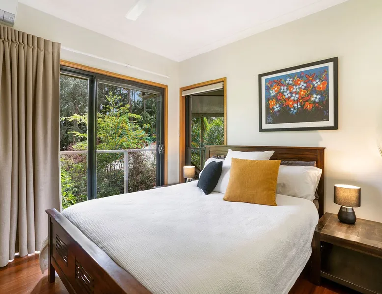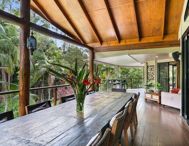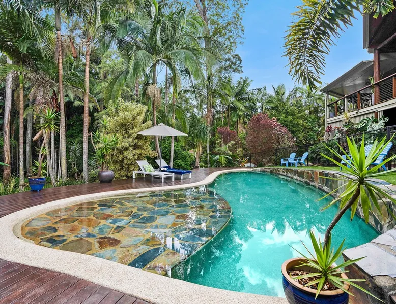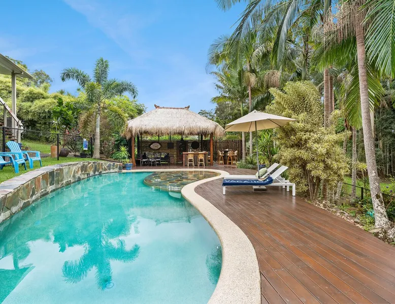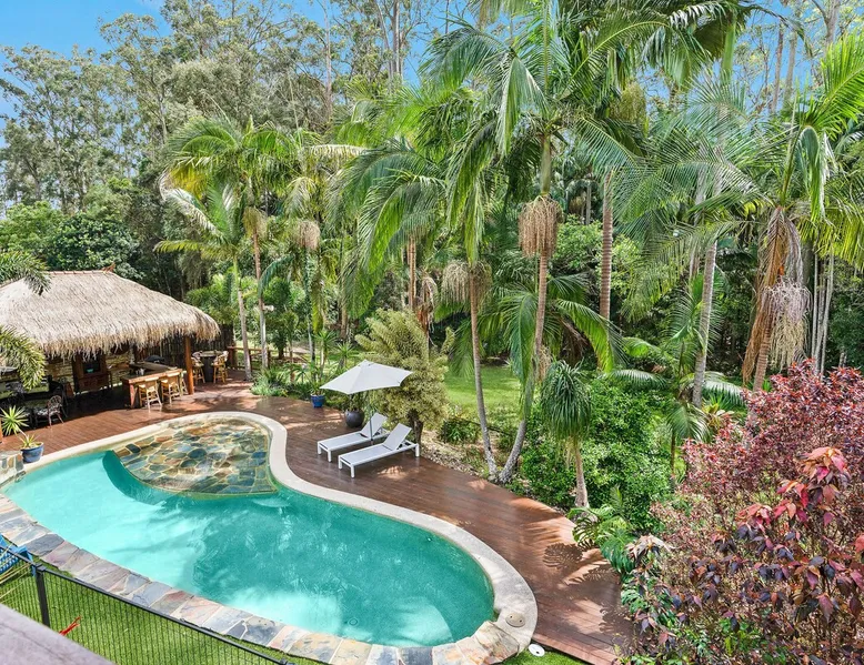 Welcome to Surga Kita—Balinese for “Our Paradise.” Set on 2 acres of lush rainforest, this private 5-bedroom retreat sleeps 10–12 and features hardwood floors, stylish furnishings, a chef’s kitchen, and breezy open-plan living. Relax across multiple decks, enjoy the pizza oven, BBQs, Bali Hut cocktails, dip in the tropical pool, the firepit, or wander the rainforest trails. Whether you’re celebrating with friends, family or your wellness tribe, Surga Kita offers something for everyone The space The living spaces at Surga Kita are designed for what matters most: fun, relaxation, comfort, and pure pleasure. With 5 beautifully styled bedrooms, 3 bathrooms, and a sofa bed, the home comfortably accommodates up to 12 adults in laid-back luxury. Two separate living areas offer plenty of room for families or groups to spread out, unwind, or gather together. The heart of the home is truly breathtaking—featuring soaring cathedral timber ceilings, a bespoke kitchen, leather lounges, and a cosy fireplace, all flowing out through trifold doors to rainforest views that will stop you in your tracks. Create beautiful meals together in the heart of the home—a modern kitchen featuring sleek appliances, a spacious granite island bench, and a walk-in pantry. This space flows effortlessly onto a sprawling outdoor deck, where an Indonesian-style 12-seater table invites you to share long, laughter-filled meals overlooking the pool and rainforest. Outside, the magic continues: 🌿 Six private decks for lounging, reading, or yoga 🌿 A tropical saltwater pool with beach-style entry and gentle waterfalls 🌿 A wood-fired pizza oven for casual feasts under the stars 🌿 A lush lawn perfect for games or sun-soaked afternoon naps 🌿 Over an acre of virgin rainforest, home to birds and natural wonder (with a deck, chairs and nighttime fairy lights!) 🌿 Or simply lounge on the expansive back deck and soak in the serenity And then there’s the Bali Hut—the soul of the property. With its thatched roof, oversized daybed, handcrafted bar, BBQ, and garden views, this space radiates that holiday zen you’ll never want to leave. Whether you're sipping cocktails from a coconut cup, floating in the pool, or exploring the rainforest trails, Surga Kita invites you to slow down, stretch out, and truly unwind. Celebrating with friends, reconnecting with family, or retreating with your wellness tribe? Surga Kita offers something for everyone… and a little piece of paradise for you. Surga Kita is more than just a place to stay — it’s a feeling. One of ease, joy, and connection. Whether you’re here for rest, celebration, or reconnection, we invite you to make it your own. Welcome to paradise. Welcome home. Guest access The entire property is yours to enjoy. Explore the gardens, unwind on the decks, sip wine by the pool, or dine under the stars. From rainforest walks to cocktails in the Bali Hut—this is your private paradise to relax, play, and recharge in complete luxury. Other things to note Surga Kita is your peaceful, tropical sanctuary—made for naps, belly laughs, rainforest wanders, and cocktails by the pool. We promote fun and laughter...but if your dream holiday includes a speaker on full blast at 2am… we’re not your people! 🎶 Outdoor noise wraps up by 10pm—our neighbours (and the wildlife) thank you in advance. 🚽 We’re on an eco wastewater system, so please—no “unflushables” down the loo. If it didn’t come from your body or say “toilet paper” on the label, it’s a no-go. The rainforest—and our pipes—are delicate creatures. 🚗 Parking: 3 cars can park in front of the garage, and 2 more fit near the Studio. Plenty of room for your crew. ✨ The Bali Hut has solar-powered fairy vibes. Just flip the switch on any of the 4 main posts and let the tropical magic glow.