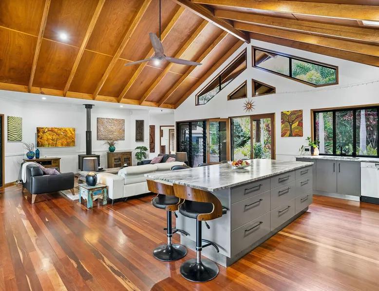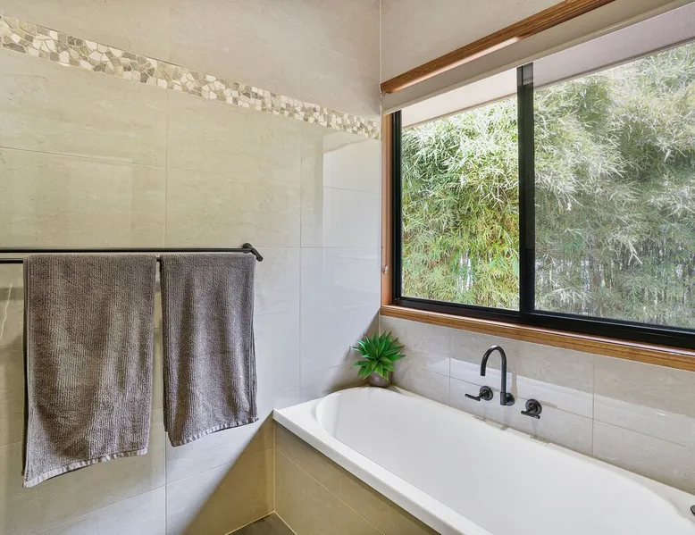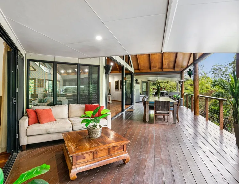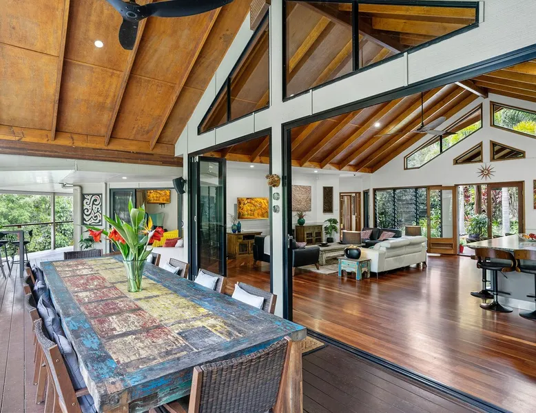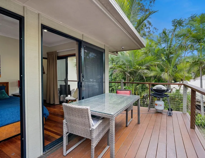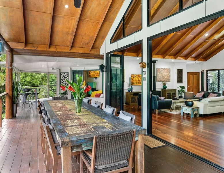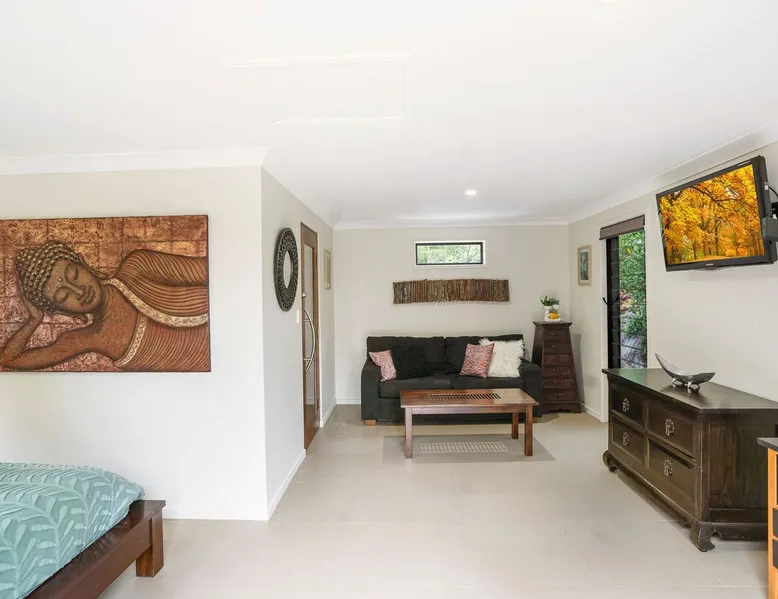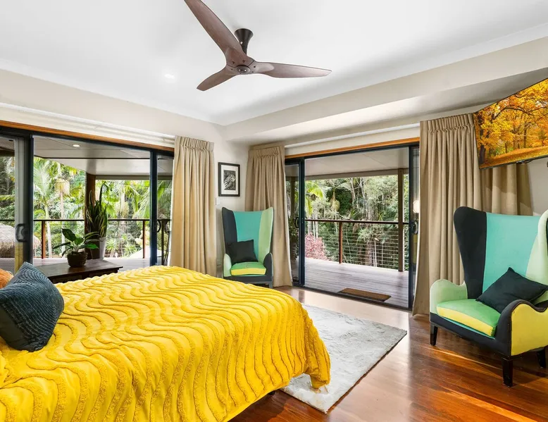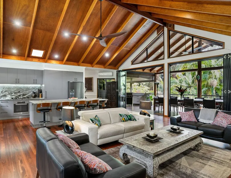 Welcome to Surga Kita—Balinese for “Our Paradise.” Set on 2 acres of lush rainforest, this private 5-bedroom retreat sleeps 10–12 and features hardwood floors, stylish furnishings, a chef’s kitchen, and breezy open-plan living. Relax across multiple decks, enjoy the pizza oven, BBQs, Bali Hut cocktails, dip in the tropical pool, the firepit, or wander the rainforest trails. Whether you’re celebrating with friends, family or your wellness tribe, Surga Kita offers something for everyone The space The living spaces at Surga Kita are designed for what matters most: fun, relaxation, comfort, and pure pleasure. With 5 beautifully styled bedrooms, 3 bathrooms, and a sofa bed, the home comfortably accommodates up to 12 adults in laid-back luxury. Two separate living areas offer plenty of room for families or groups to spread out, unwind, or gather together. The heart of the home is truly breathtaking—featuring soaring cathedral timber ceilings, a bespoke kitchen, leather lounges, and a cosy fireplace, all flowing out through trifold doors to rainforest views that will stop you in your tracks. Create beautiful meals together in the heart of the home—a modern kitchen featuring sleek appliances, a spacious granite island bench, and a walk-in pantry. This space flows effortlessly onto a sprawling outdoor deck, where an Indonesian-style 12-seater table invites you to share long, laughter-filled meals overlooking the pool and rainforest. Outside, the magic continues: 🌿 Six private decks for lounging, reading, or yoga 🌿 A tropical saltwater pool with beach-style entry and gentle waterfalls 🌿 A wood-fired pizza oven for casual feasts under the stars 🌿 A lush lawn perfect for games or sun-soaked afternoon naps 🌿 Over an acre of virgin rainforest, home to birds and natural wonder (with a deck, chairs and nighttime fairy lights!) 🌿 Or simply lounge on the expansive back deck and soak in the serenity And then there’s the Bali Hut—the soul of the property. With its thatched roof, oversized daybed, handcrafted bar, BBQ, and garden views, this space radiates that holiday zen you’ll never want to leave. Whether you're sipping cocktails from a coconut cup, floating in the pool, or exploring the rainforest trails, Surga Kita invites you to slow down, stretch out, and truly unwind. Celebrating with friends, reconnecting with family, or retreating with your wellness tribe? Surga Kita offers something for everyone… and a little piece of paradise for you. Surga Kita is more than just a place to stay — it’s a feeling. One of ease, joy, and connection. Whether you’re here for rest, celebration, or reconnection, we invite you to make it your own. Welcome to paradise. Welcome home. Guest access The entire property is yours to enjoy. Explore the gardens, unwind on the decks, sip wine by the pool, or dine under the stars. From rainforest walks to cocktails in the Bali Hut—this is your private paradise to relax, play, and recharge in complete luxury. Other things to note Surga Kita is your peaceful, tropical sanctuary—made for naps, belly laughs, rainforest wanders, and cocktails by the pool. We promote fun and laughter...but if your dream holiday includes a speaker on full blast at 2am… we’re not your people! 🎶 Outdoor noise wraps up by 10pm—our neighbours (and the wildlife) thank you in advance. 🚽 We’re on an eco wastewater system, so please—no “unflushables” down the loo. If it didn’t come from your body or say “toilet paper” on the label, it’s a no-go. The rainforest—and our pipes—are delicate creatures. 🚗 Parking: 3 cars can park in front of the garage, and 2 more fit near the Studio. Plenty of room for your crew. ✨ The Bali Hut has solar-powered fairy vibes. Just flip the switch on any of the 4 main posts and let the tropical magic glow.