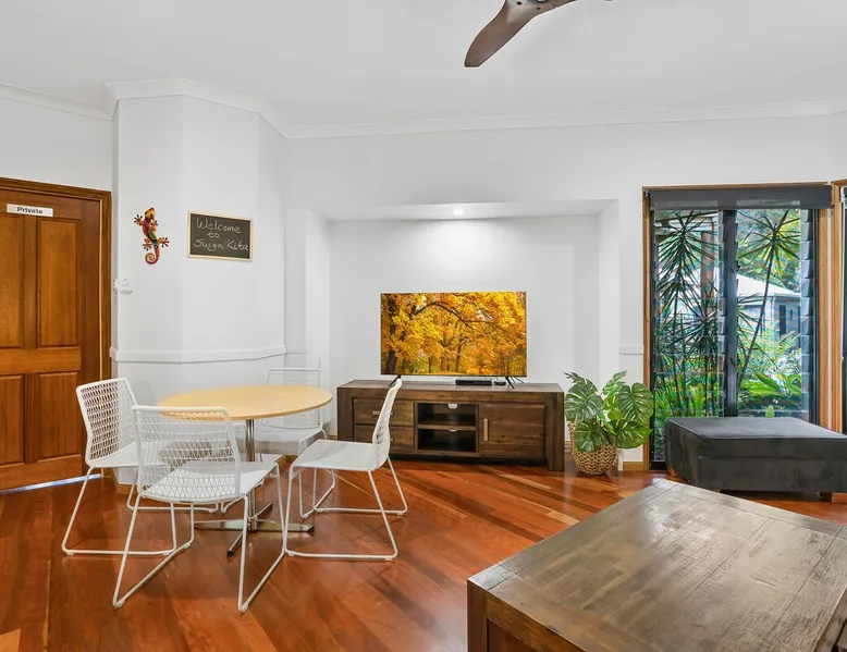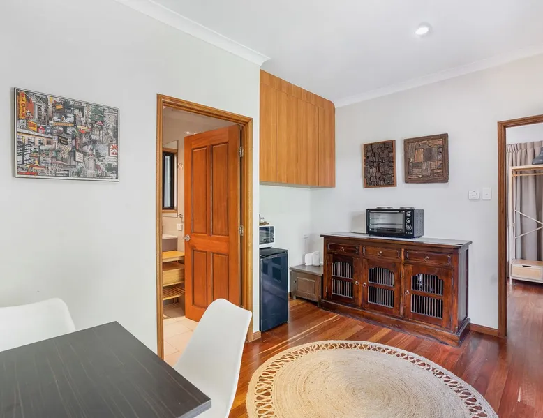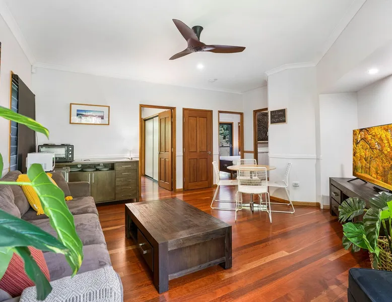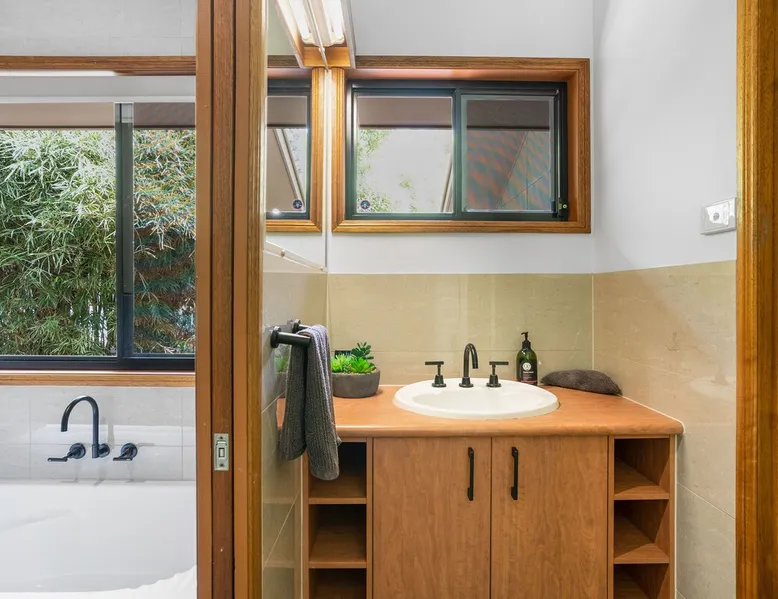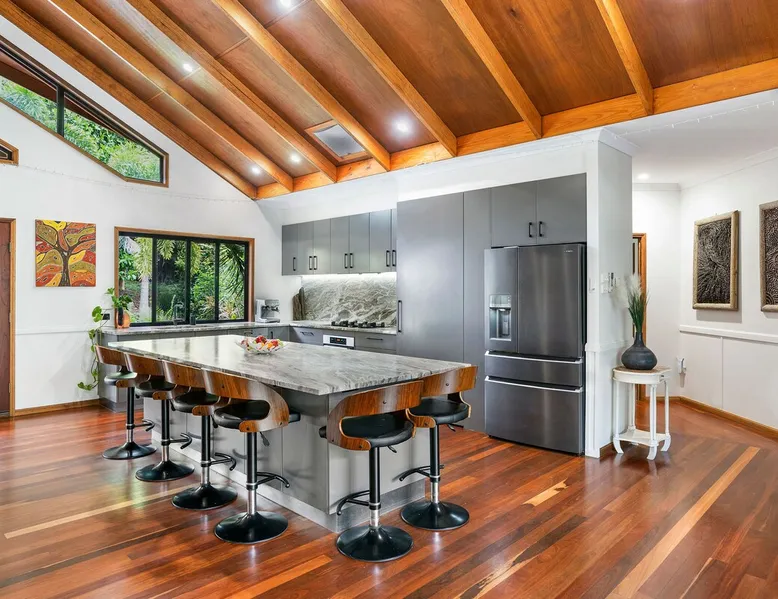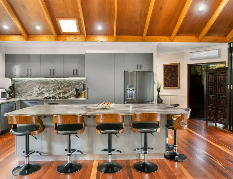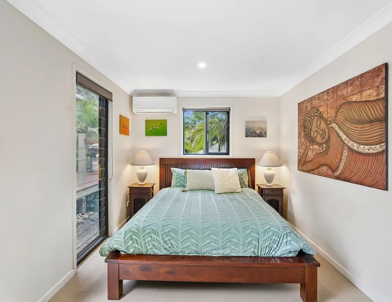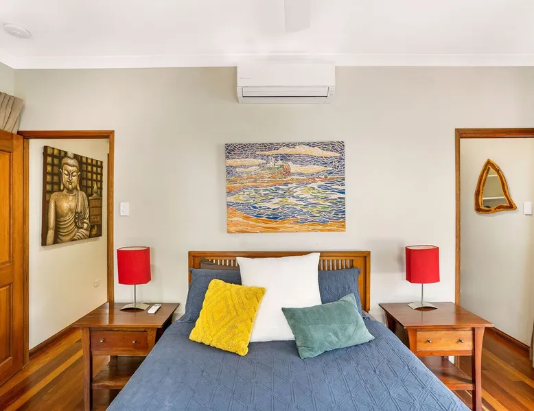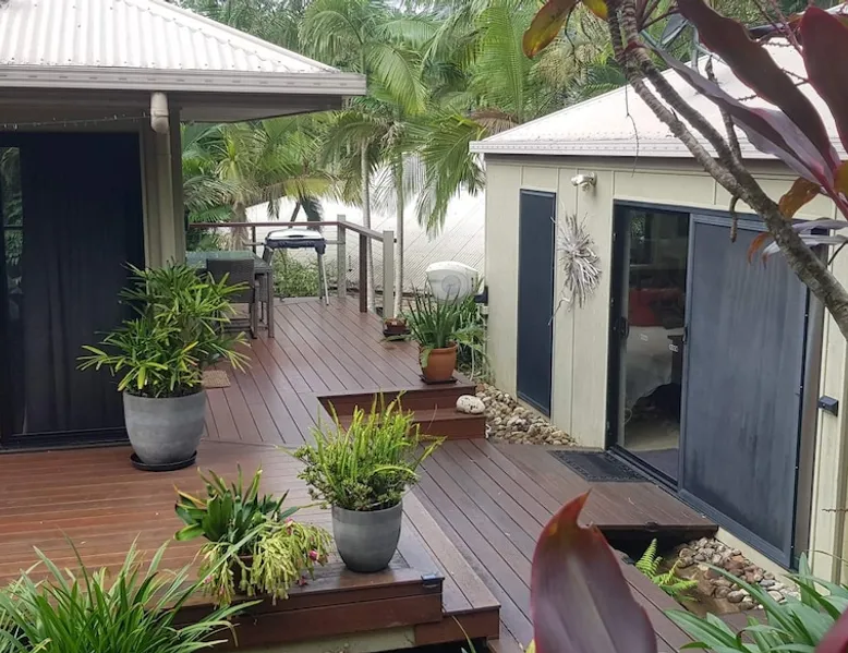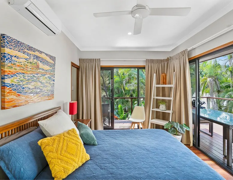 Welcome to Surga Kita—Balinese for “Our Paradise.” Set on 2 acres of lush rainforest, this private 5-bedroom retreat sleeps 10–12 and features hardwood floors, stylish furnishings, a chef’s kitchen, and breezy open-plan living. Relax across multiple decks, enjoy the pizza oven, BBQs, Bali Hut cocktails, dip in the tropical pool, the firepit, or wander the rainforest trails. Whether you’re celebrating with friends, family or your wellness tribe, Surga Kita offers something for everyone The space The living spaces at Surga Kita are designed for what matters most: fun, relaxation, comfort, and pure pleasure. With 5 beautifully styled bedrooms, 3 bathrooms, and a sofa bed, the home comfortably accommodates up to 12 adults in laid-back luxury. Two separate living areas offer plenty of room for families or groups to spread out, unwind, or gather together. The heart of the home is truly breathtaking—featuring soaring cathedral timber ceilings, a bespoke kitchen, leather lounges, and a cosy fireplace, all flowing out through trifold doors to rainforest views that will stop you in your tracks. Create beautiful meals together in the heart of the home—a modern kitchen featuring sleek appliances, a spacious granite island bench, and a walk-in pantry. This space flows effortlessly onto a sprawling outdoor deck, where an Indonesian-style 12-seater table invites you to share long, laughter-filled meals overlooking the pool and rainforest. Outside, the magic continues: 🌿 Six private decks for lounging, reading, or yoga 🌿 A tropical saltwater pool with beach-style entry and gentle waterfalls 🌿 A wood-fired pizza oven for casual feasts under the stars 🌿 A lush lawn perfect for games or sun-soaked afternoon naps 🌿 Over an acre of virgin rainforest, home to birds and natural wonder (with a deck, chairs and nighttime fairy lights!) 🌿 Or simply lounge on the expansive back deck and soak in the serenity And then there’s the Bali Hut—the soul of the property. With its thatched roof, oversized daybed, handcrafted bar, BBQ, and garden views, this space radiates that holiday zen you’ll never want to leave. Whether you're sipping cocktails from a coconut cup, floating in the pool, or exploring the rainforest trails, Surga Kita invites you to slow down, stretch out, and truly unwind. Celebrating with friends, reconnecting with family, or retreating with your wellness tribe? Surga Kita offers something for everyone… and a little piece of paradise for you. Surga Kita is more than just a place to stay — it’s a feeling. One of ease, joy, and connection. Whether you’re here for rest, celebration, or reconnection, we invite you to make it your own. Welcome to paradise. Welcome home. Guest access The entire property is yours to enjoy. Explore the gardens, unwind on the decks, sip wine by the pool, or dine under the stars. From rainforest walks to cocktails in the Bali Hut—this is your private paradise to relax, play, and recharge in complete luxury. Other things to note Surga Kita is your peaceful, tropical sanctuary—made for naps, belly laughs, rainforest wanders, and cocktails by the pool. We promote fun and laughter...but if your dream holiday includes a speaker on full blast at 2am… we’re not your people! 🎶 Outdoor noise wraps up by 10pm—our neighbours (and the wildlife) thank you in advance. 🚽 We’re on an eco wastewater system, so please—no “unflushables” down the loo. If it didn’t come from your body or say “toilet paper” on the label, it’s a no-go. The rainforest—and our pipes—are delicate creatures. 🚗 Parking: 3 cars can park in front of the garage, and 2 more fit near the Studio. Plenty of room for your crew. ✨ The Bali Hut has solar-powered fairy vibes. Just flip the switch on any of the 4 main posts and let the tropical magic glow.