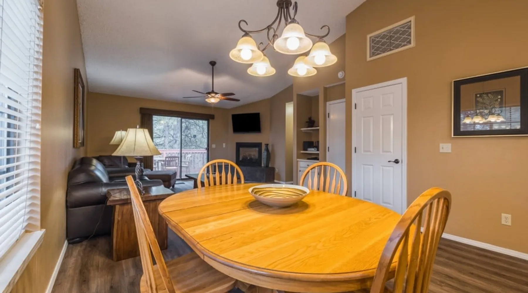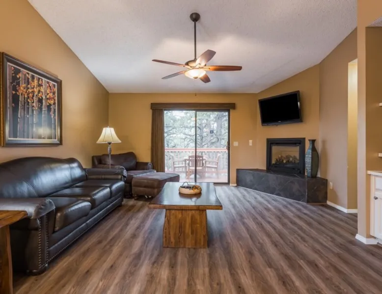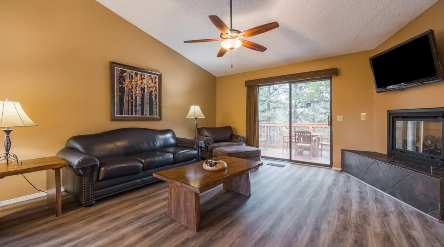 Mountain Retreat in Flagstaff, AZ | Hiking + Pool + Fireplace Escape to the cool pines of Flagstaff and enjoy a relaxing stay just minutes from downtown and the Grand Canyon. After exploring hiking trails or historic Route 66, unwind in the pool, soak in the hot tub, or cozy up by the fireplace. The space Spacious 2-bedroom suite (sleeps up to 8) Master: 1 king bed | Bedroom 2: 2 queen beds | Living: queen sleeper sofa Full kitchen with oven, fridge, microwave, dishwasher & coffee maker WiFi, flat-screen TVs, in-room washer/dryer, AC & fireplace Separate living & dining areas mountain views Other things to note Please bring a valid Picture ID. If the name of the person checking in is changed after this information is provided, there will be a $99.00 name change fee and $129 on the day of check in. A $250 Pre-Authorization from any major credit card upon checking in is required. Cash is not accepted.