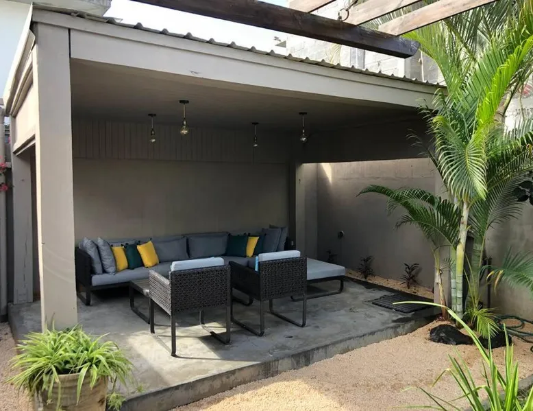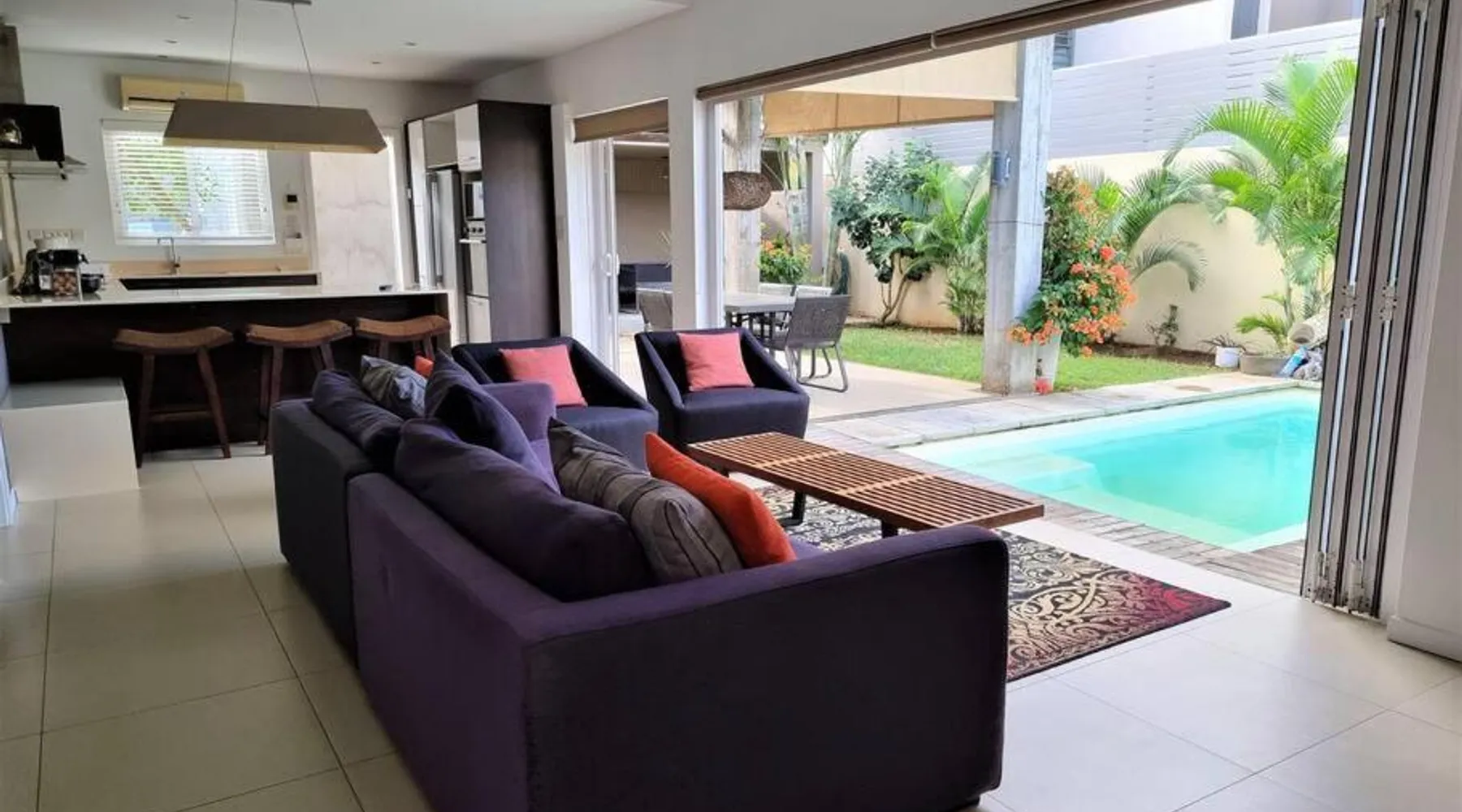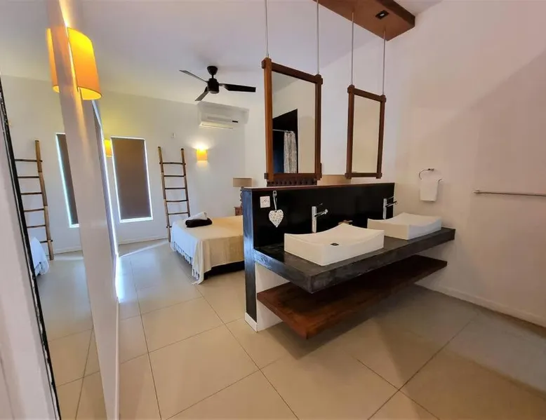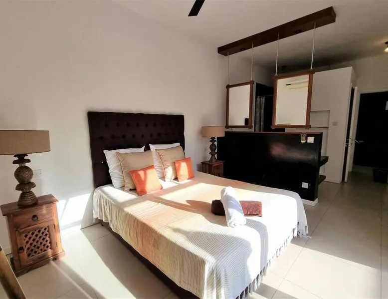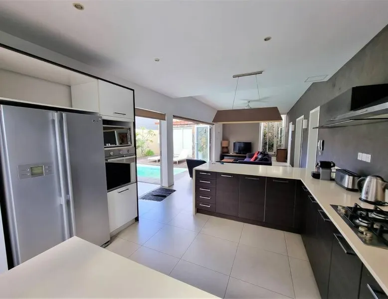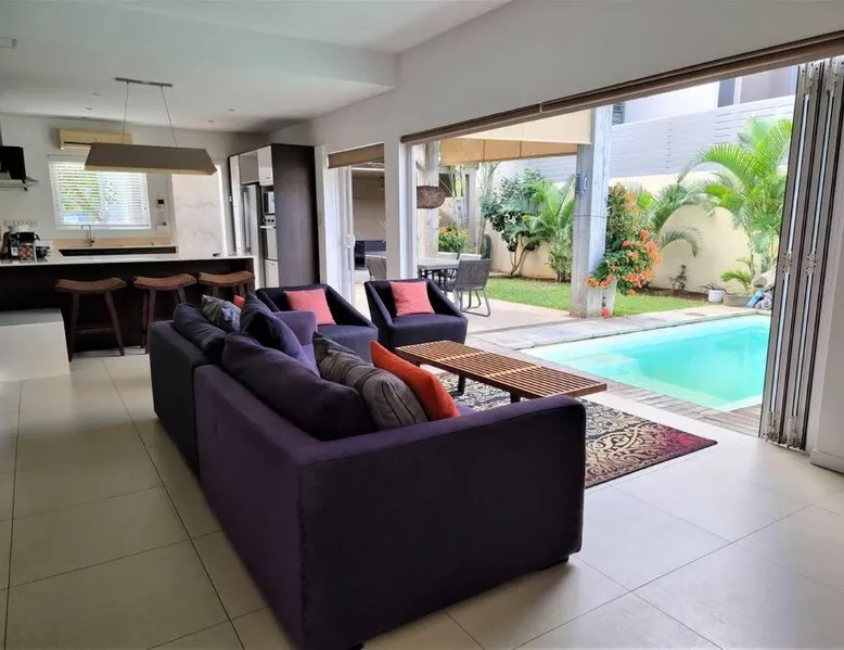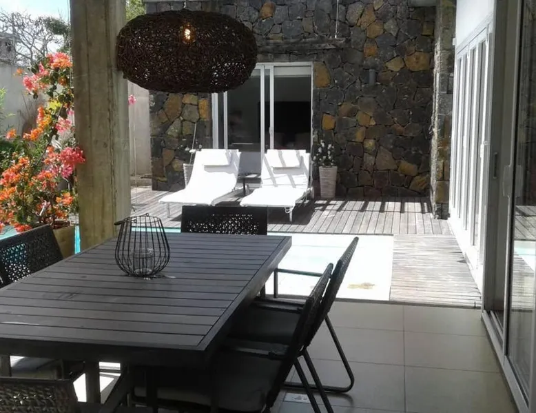 Elegant Accommodations: Eden Rose B2 in Grand Baie offers a gated villa with four bedrooms and three bathrooms. The property features a spacious living room, a fully equipped kitchen, and a private entrance. Outdoor Amenities: Guests can relax in the garden or by the saltwater pool. The villa includes a barbecue area, outdoor dining space, and comfortable outdoor furniture. Free WiFi is available throughout the property. Convenient Location: Grand Baie Public Beach is an 18-minute walk away. Sir Seewoosagur Ramgoolam Airport is 42 mi from the villa. Nearby attractions include Sir Seewoosagur Ramgoolam Botanical Garden (9.3 mi) and Port in Port Louis (16 mi). Activities: Scuba diving opportunities are available in the surrounding area. The private pool is a top feature of this villa. Guests will find a stovetop, a refrigerator, a dishwasher and kitchenware in the kitchen. The villa also includes a barbecue. The air-conditioned villa features a flat-screen TV with satellite channels, a washing machine, a private entrance, a tea and coffee maker as well as garden views. The unit has 4 beds and 1 futon.