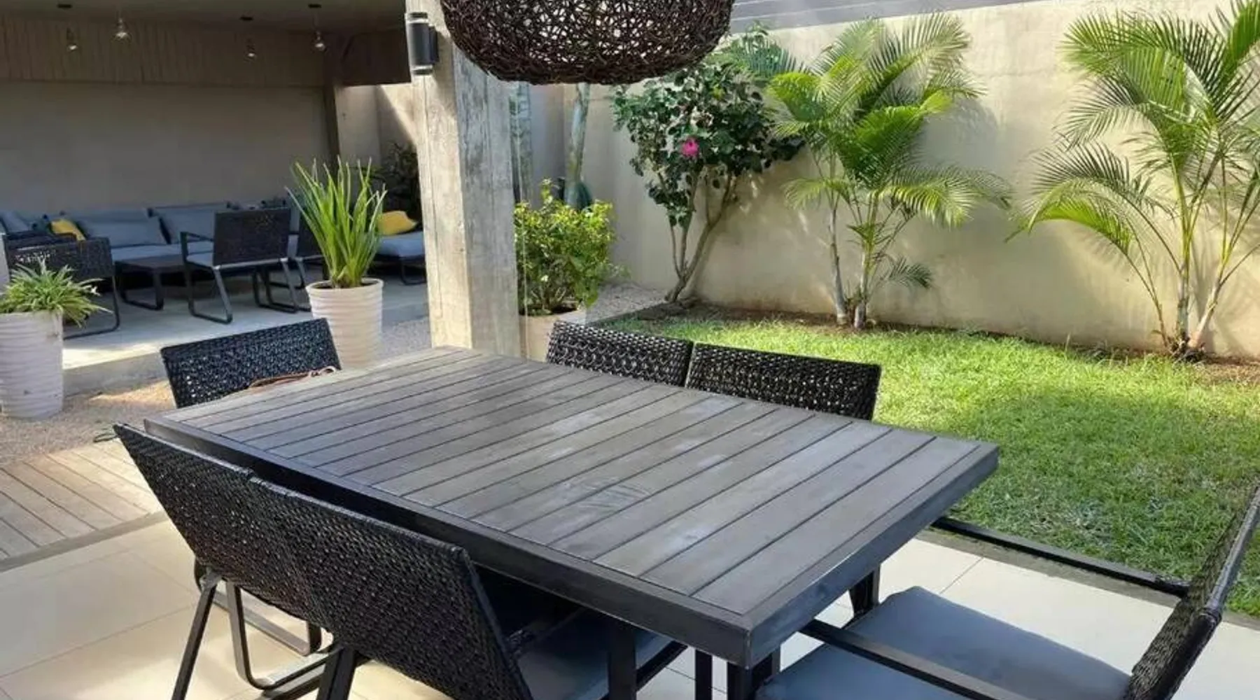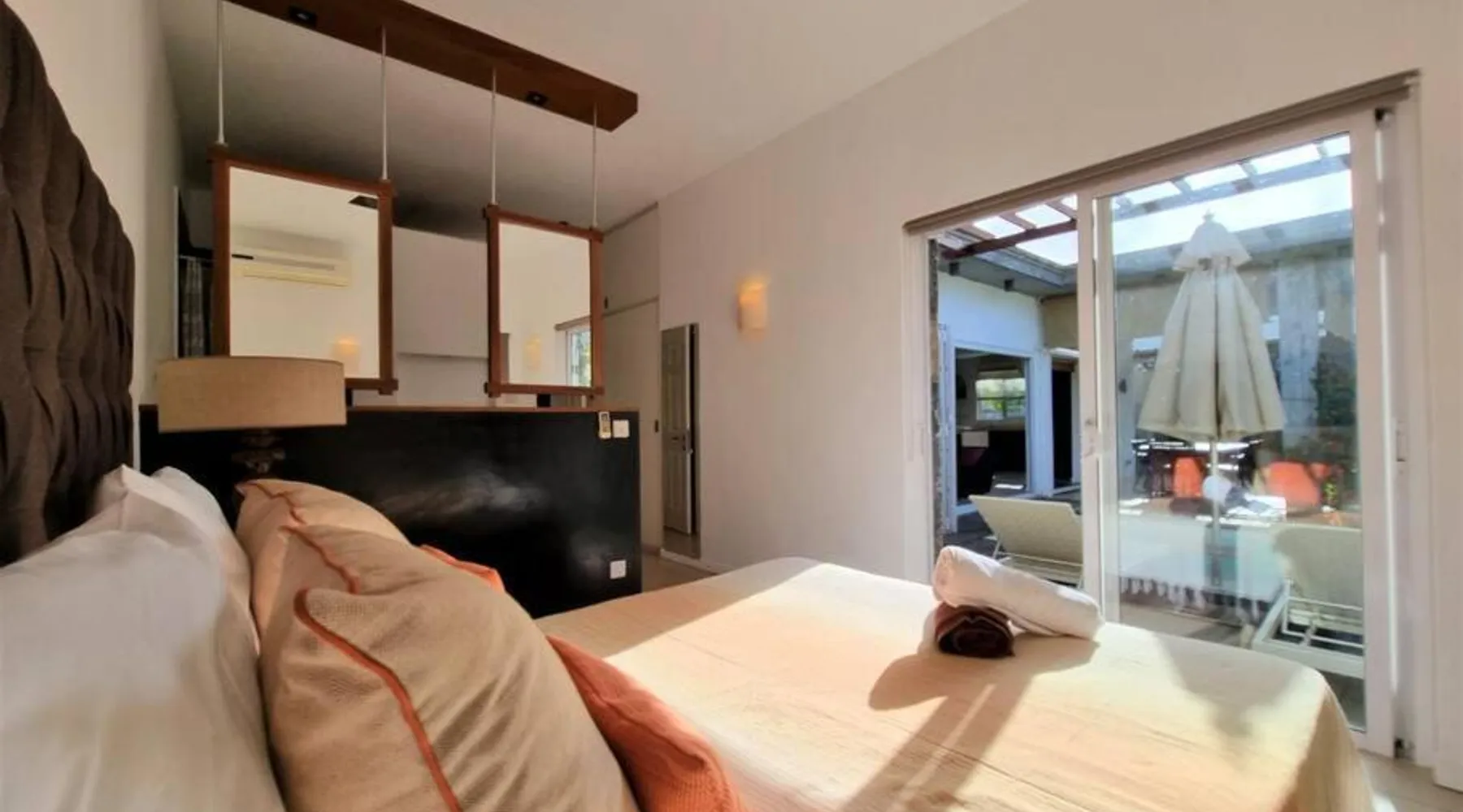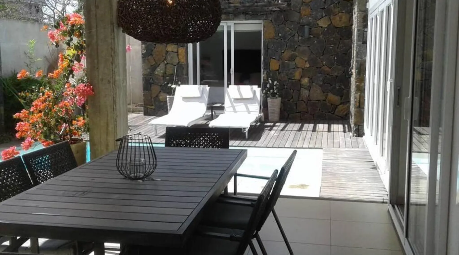 Elegant Accommodations: Eden Rose B2 in Grand Baie offers a gated villa with four bedrooms and three bathrooms. The property features a spacious living room, a fully equipped kitchen, and a private entrance. Outdoor Amenities: Guests can relax in the garden or by the saltwater pool. The villa includes a barbecue area, outdoor dining space, and comfortable outdoor furniture. Free WiFi is available throughout the property. Convenient Location: Grand Baie Public Beach is an 18-minute walk away. Sir Seewoosagur Ramgoolam Airport is 42 mi from the villa. Nearby attractions include Sir Seewoosagur Ramgoolam Botanical Garden (9.3 mi) and Port in Port Louis (16 mi). Activities: Scuba diving opportunities are available in the surrounding area. The private pool is a top feature of this villa. Guests will find a stovetop, a refrigerator, a dishwasher and kitchenware in the kitchen. The villa also includes a barbecue. The air-conditioned villa features a flat-screen TV with satellite channels, a washing machine, a private entrance, a tea and coffee maker as well as garden views. The unit has 4 beds and 1 futon.