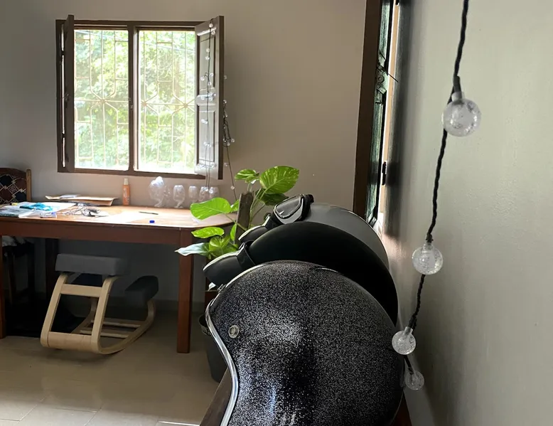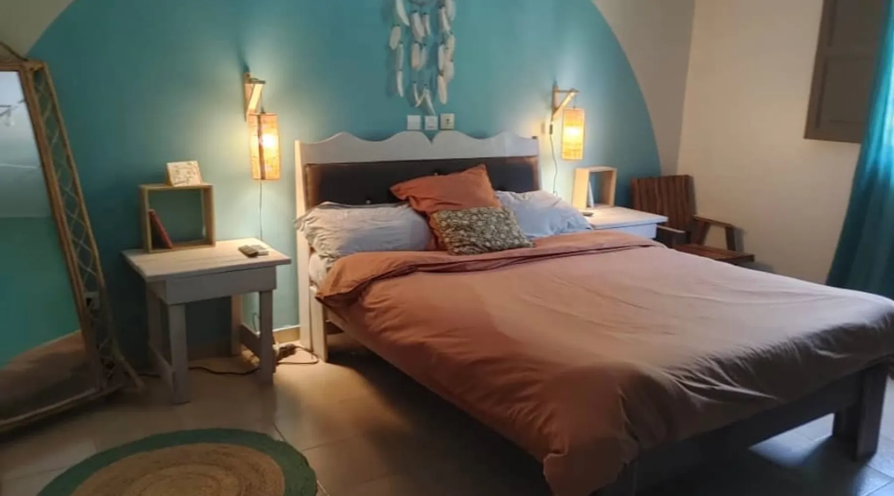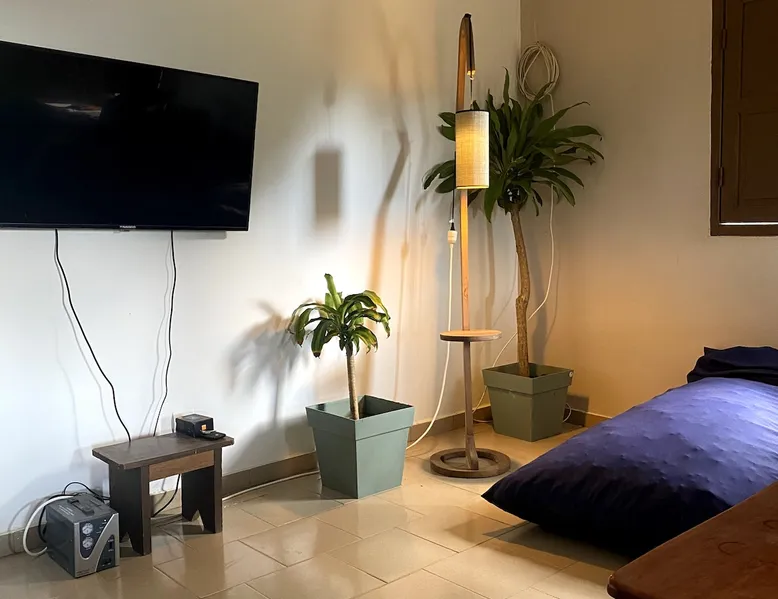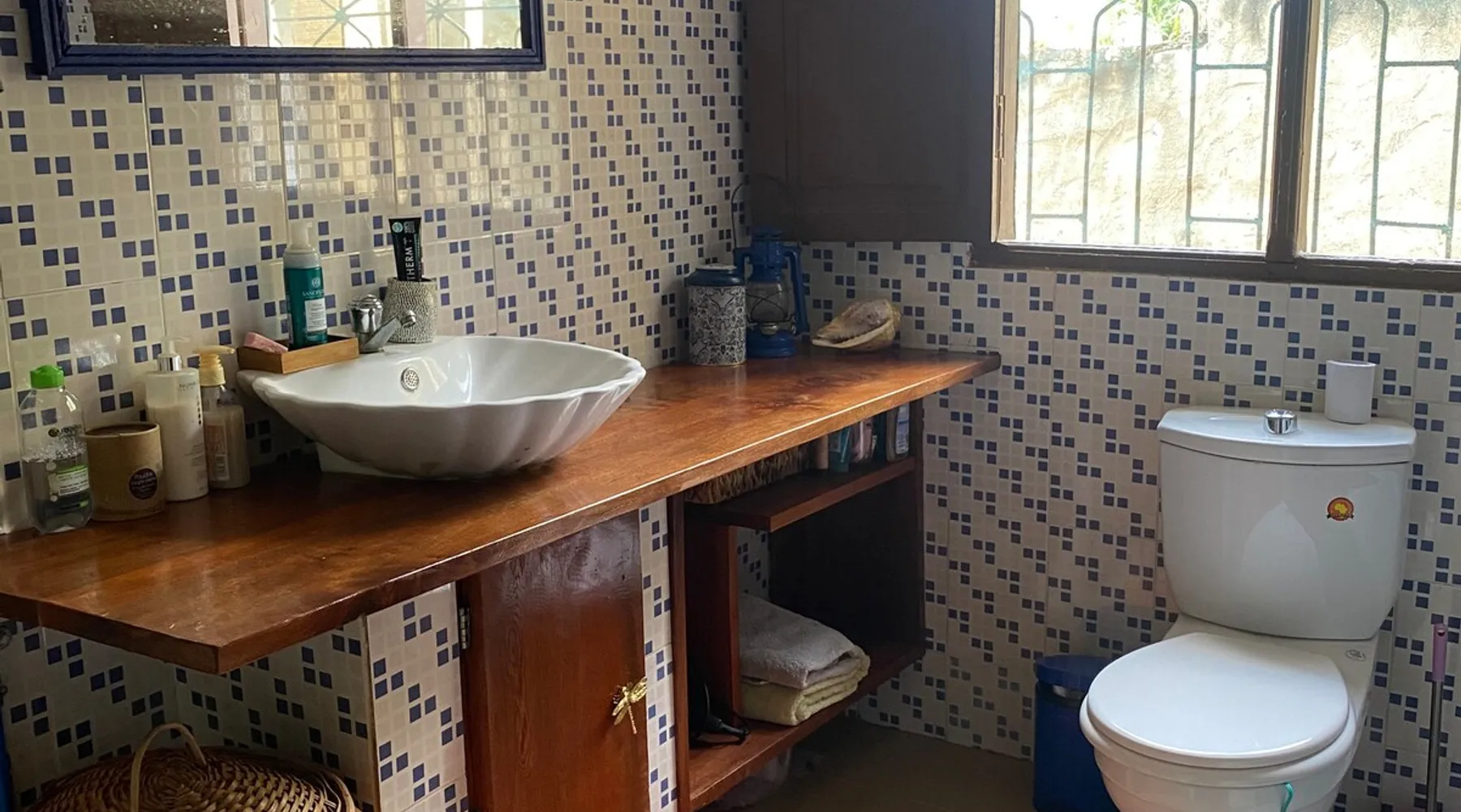 Welcome! This is the HQ of "Ptits tours", an agency specializing in adventure. I welcome you to my small villa that I renovated and decorated with care to make you feel on vacation but comfortable at home. The house is high so hyper ventilated, we love the air! For those who work remotely, several spaces at your disposal in peace. There are two bedrooms, one of which is occupied by my colleague David, so you will share the house with him and his small dog. The space Fully equipped, air-conditioned and carefully decorated room. The bedroom is equipped with a wardrobe, mirror. The mattress is a double mattress. you have a small private bathroom, with shower wc sink. Bath towels, hair dryer available. Ability to add a mattress to the floor. The villa is composed of a large terrace where to chill from evening to morning, a kitchen equipped with a microwave, fridge, kettle, coffee maker, coffee maker, gas stove ( but no oven). A large living room, with sofa, TV screen that is used to watch movies via the computer (HDMI cable), dining table. Garden/ courtyard where to sunbath. Possibility to bring a car inside ( SUV/ duster, no low car). I live as a roommate, the house is shared with my colleague that you may have a chance to meet. Guest access You will have access to the bathroom of course, kitchen, terrace, living room, possibility to connect your computer to a TV screen via HDMI. there is no wifi for now, it doesn't work well on a big bereby but you get the 4g wonderfully well. During your stay You will be roommate either with me or with David who shares the house with me. We will be happy to share a dinner, tea or drink with you and plan small activities if needed. Other things to note I run a travel agency, so you're at the Qg of " Les P'tits tours", I organize: 1) free motorcycle rental with helmets- the motorcycle can be delivered directly to the villa. 2) Motorbike getaway in Ménéké ( discovery of the village and a short break on a paradisiacal beach managed by an association protecting sea turtles, then last break and swimming at our favorite ecohotel). 3) Motorbike getaway to the waterfalls, aperitivo, swimming, picnic options or meals on site 4) Unusual candlelit dinner on the beach. 5) Swimming and aperitif at the waterfalls of the dodo The services at the villa: - Possibility to bring a masseuse to your home 20,000 Francs - have your laundry washed 3000 francs. - getting groceries Prices for groceries +2000 francs - To have food delivered or order to eat meal price + 2000 francs