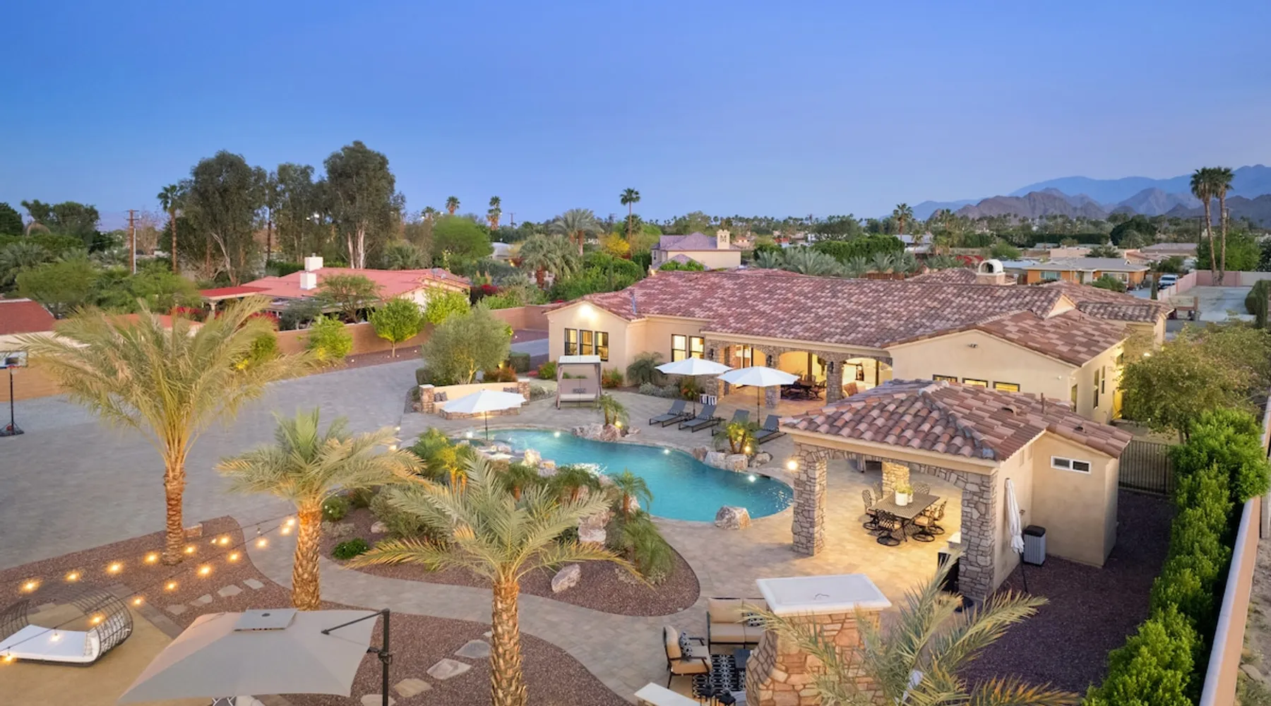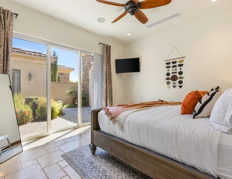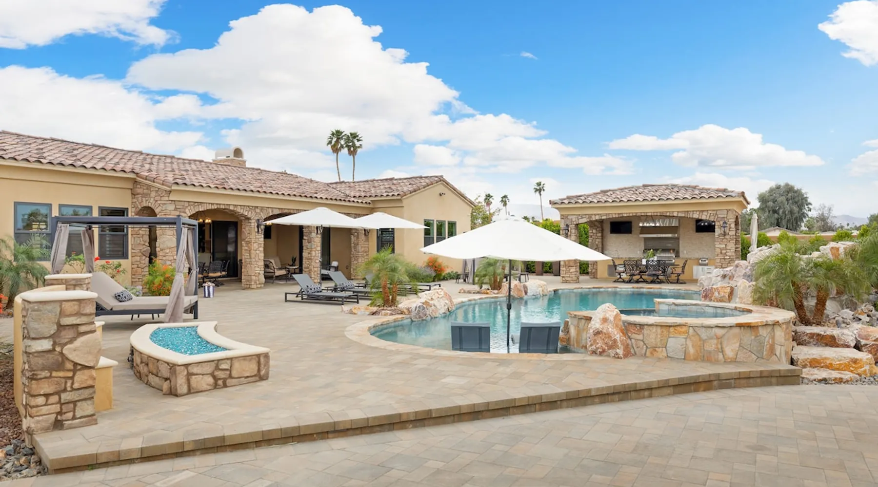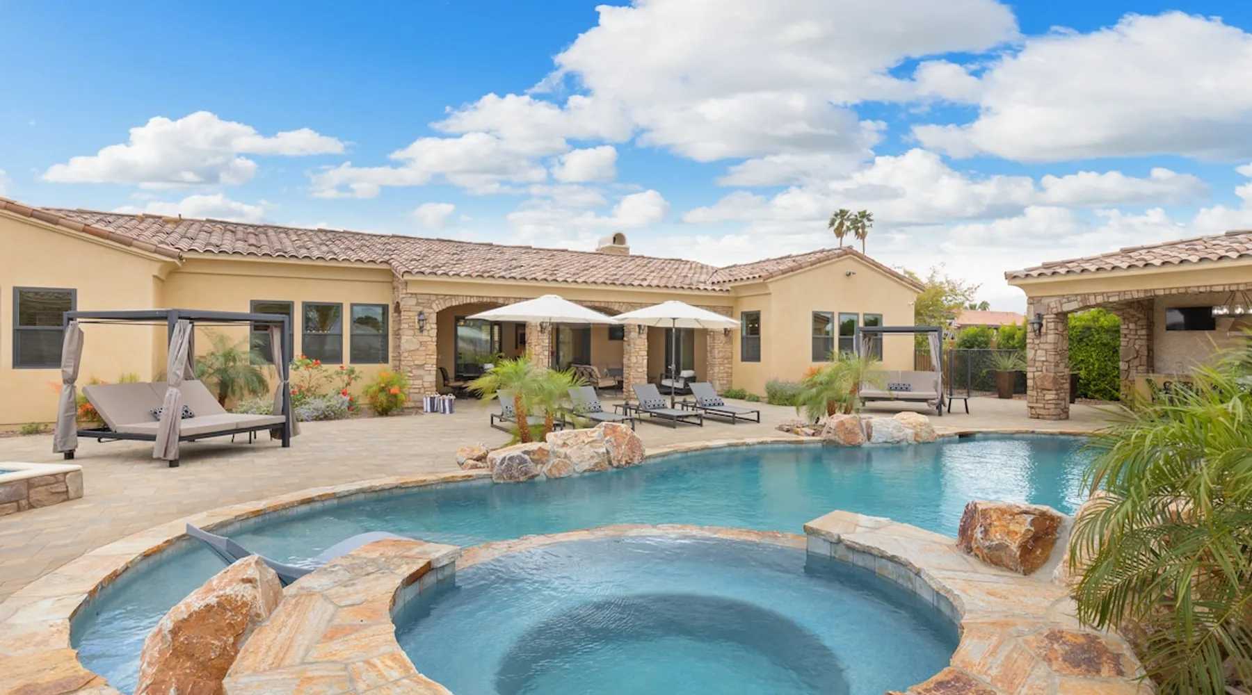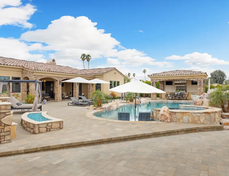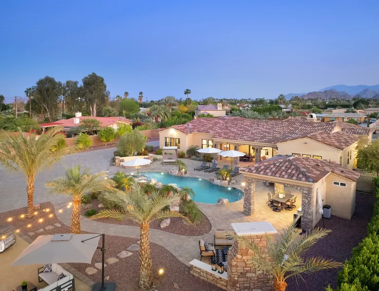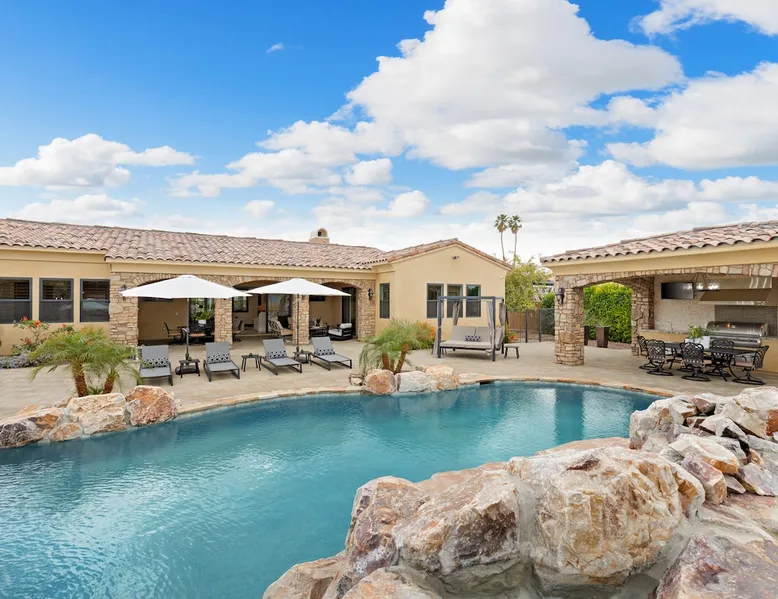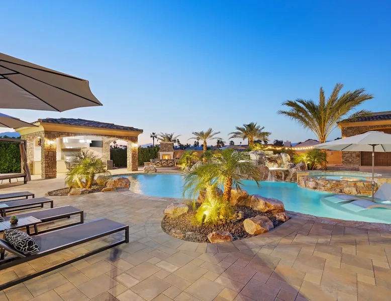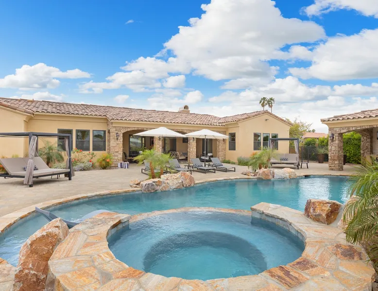 Nestled into the heart of Palm Desert, rustling foliage and mountain peaks set the scene for your stay. A pool in the backyard is accompanied by a bubbling hot tub and shaded lounge areas. Get competitive on the putting green or take things indoors for a billiards and ping pong tournament. The 4,500-square-foot home is near El Paseo and Old Town La Quinta where you’ll find local cuisine and shops. Copyright © Luxury Retreats. All rights reserved. The space Villa Bella is the ultimate place to enjoy the outdoor desert lifestyle with your choice of cushioned loungers, daybeds or one of the many other outdoor seating areas with two TVs and additional seating for 6. Enjoy al-fresco dining in the covered kitchen equipped with BBQ, cooktop, two more TVs and additional dining for 6! Stay cool and take the entertainment indoors to the converted gym and game room equipped with a pool table, ping pong, corn hole, air hockey, treadmill, Schwinn stationary bike, and elliptical plus a large sectional and big screen TV. Step inside to experience an entertainers delight in this elegant open-concept space boasting a baby grand piano, large comfy couch, bar area featuring a mini fridge with ice maker, second TV and seating for 4. The impressive chef's kitchen has everything you could dream of to whip up the ultimate feast and plenty of space for everyone to help! This kitchen is designed to take the stress out of entertaining with top-of-the-line appliances including two Wolf ovens, a subzero refrigerator and two dishwashers to do all the work at the end of the night. This single-story estate boasts 6 impressively large bedrooms all with Smart TVs, ceiling fans, premium mattresses and linens. • Primary: King size bed, en suite bathroom with stand-alone shower & bathtub • Bedroom 2 - King size bed with courtyard access. Shared bathroom with bedrooms 3 & 4 • Bedroom 3: King size bed. Shared bathroom with bedrooms 2 & 4 • Bedroom 4: 2 Double size bunk beds, Shared bathroom with bedrooms 2 & 3 • Bedroom 5: King size bed, en suite bathroom • Bedroom 6: Casita: King size bed, en suite bathroom and private entry off front courtyard Bed Summary: 5 Kings, 4 Fulls (2 bunk beds). Queen size air mattress upon request. There is space available for up to 6 cars total between the driveway and garage. Street parking & oversized vehicles are not permitted. **Vehicle access to the back yard is prohibited. Guest access through pedestrian gate only** STAFF & SERVICES Extra Cost (advance notice may be required): • Activities and excursions • Babysitting service • Pet fee ($150 per pet) Registration Details STR2024-0102