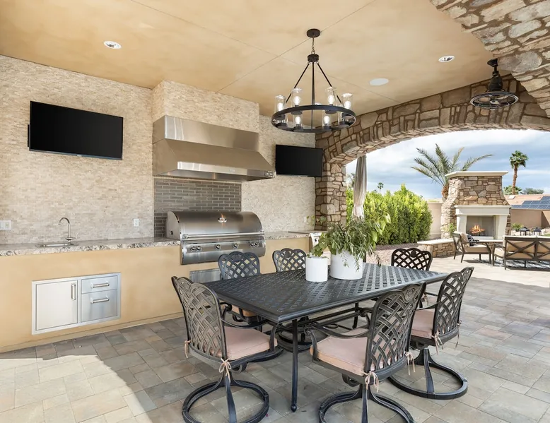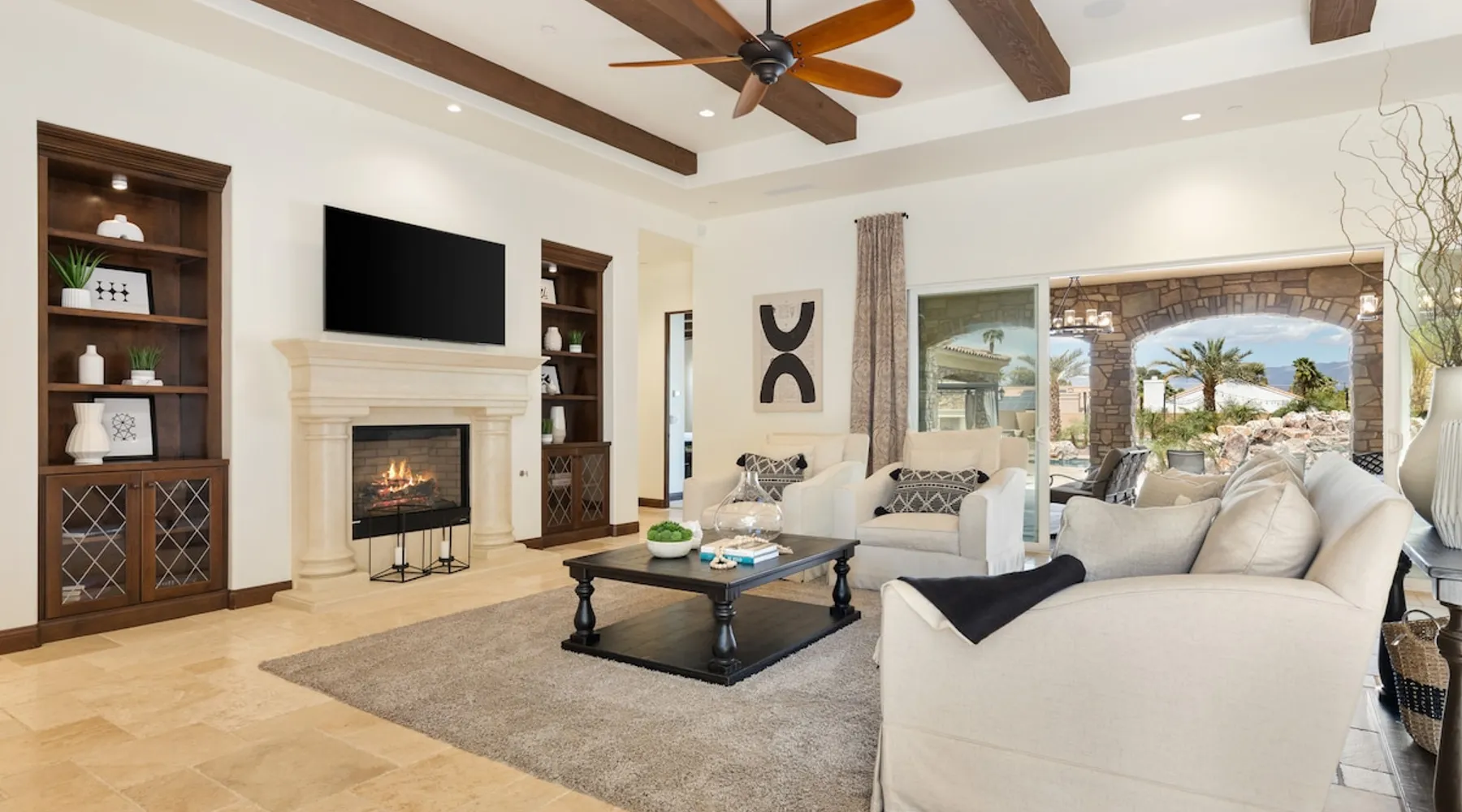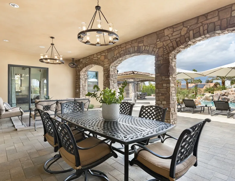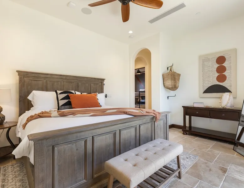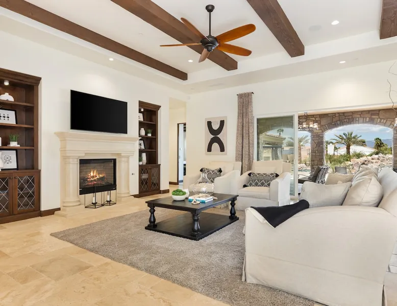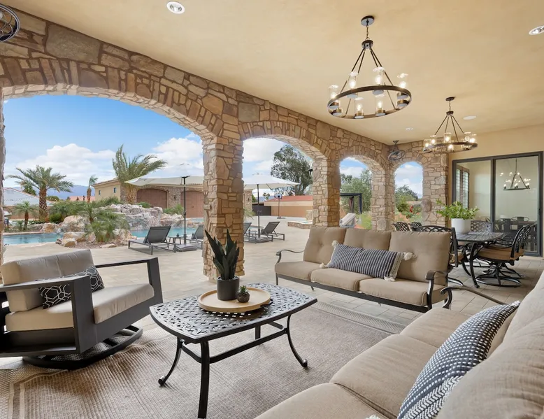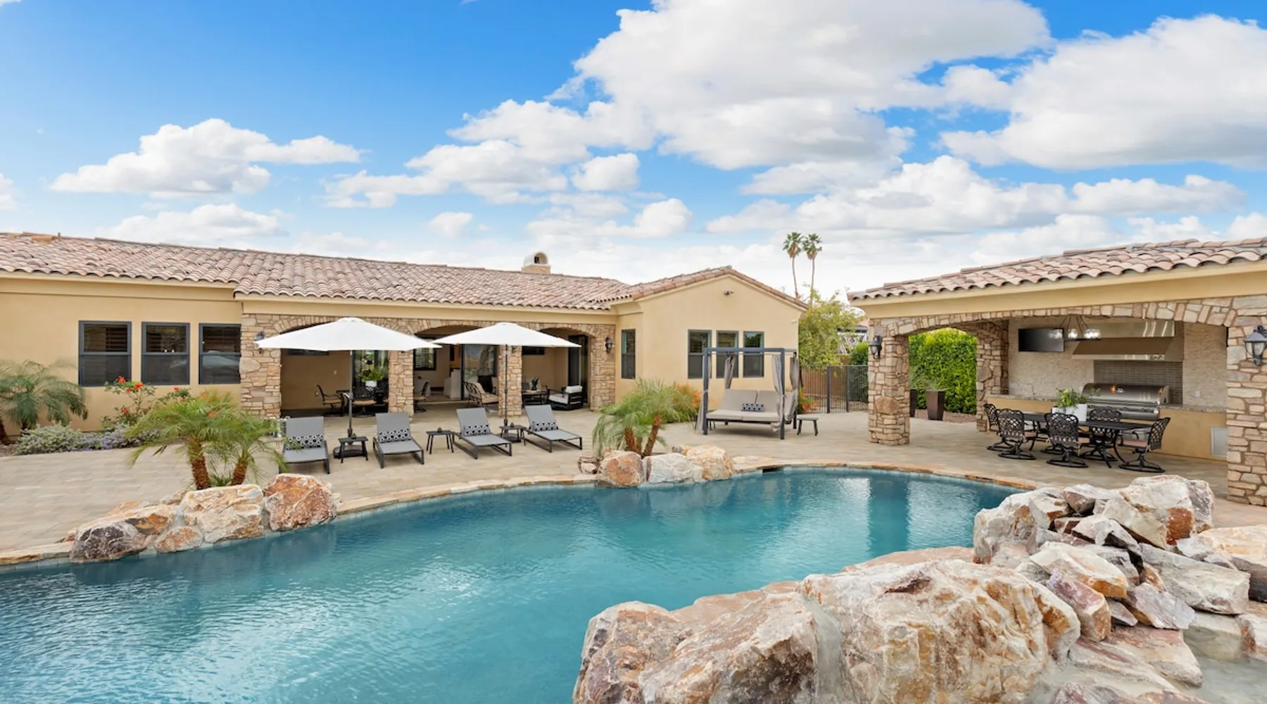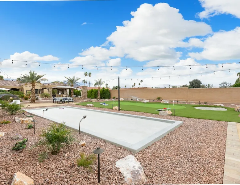 Nestled into the heart of Palm Desert, rustling foliage and mountain peaks set the scene for your stay. A pool in the backyard is accompanied by a bubbling hot tub and shaded lounge areas. Get competitive on the putting green or take things indoors for a billiards and ping pong tournament. The 4,500-square-foot home is near El Paseo and Old Town La Quinta where you’ll find local cuisine and shops. Copyright © Luxury Retreats. All rights reserved. The space Villa Bella is the ultimate place to enjoy the outdoor desert lifestyle with your choice of cushioned loungers, daybeds or one of the many other outdoor seating areas with two TVs and additional seating for 6. Enjoy al-fresco dining in the covered kitchen equipped with BBQ, cooktop, two more TVs and additional dining for 6! Stay cool and take the entertainment indoors to the converted gym and game room equipped with a pool table, ping pong, corn hole, air hockey, treadmill, Schwinn stationary bike, and elliptical plus a large sectional and big screen TV. Step inside to experience an entertainers delight in this elegant open-concept space boasting a baby grand piano, large comfy couch, bar area featuring a mini fridge with ice maker, second TV and seating for 4. The impressive chef's kitchen has everything you could dream of to whip up the ultimate feast and plenty of space for everyone to help! This kitchen is designed to take the stress out of entertaining with top-of-the-line appliances including two Wolf ovens, a subzero refrigerator and two dishwashers to do all the work at the end of the night. This single-story estate boasts 6 impressively large bedrooms all with Smart TVs, ceiling fans, premium mattresses and linens. • Primary: King size bed, en suite bathroom with stand-alone shower & bathtub • Bedroom 2 - King size bed with courtyard access. Shared bathroom with bedrooms 3 & 4 • Bedroom 3: King size bed. Shared bathroom with bedrooms 2 & 4 • Bedroom 4: 2 Double size bunk beds, Shared bathroom with bedrooms 2 & 3 • Bedroom 5: King size bed, en suite bathroom • Bedroom 6: Casita: King size bed, en suite bathroom and private entry off front courtyard Bed Summary: 5 Kings, 4 Fulls (2 bunk beds). Queen size air mattress upon request. There is space available for up to 6 cars total between the driveway and garage. Street parking & oversized vehicles are not permitted. **Vehicle access to the back yard is prohibited. Guest access through pedestrian gate only** STAFF & SERVICES Extra Cost (advance notice may be required): • Activities and excursions • Babysitting service • Pet fee ($150 per pet) Registration Details STR2024-0102