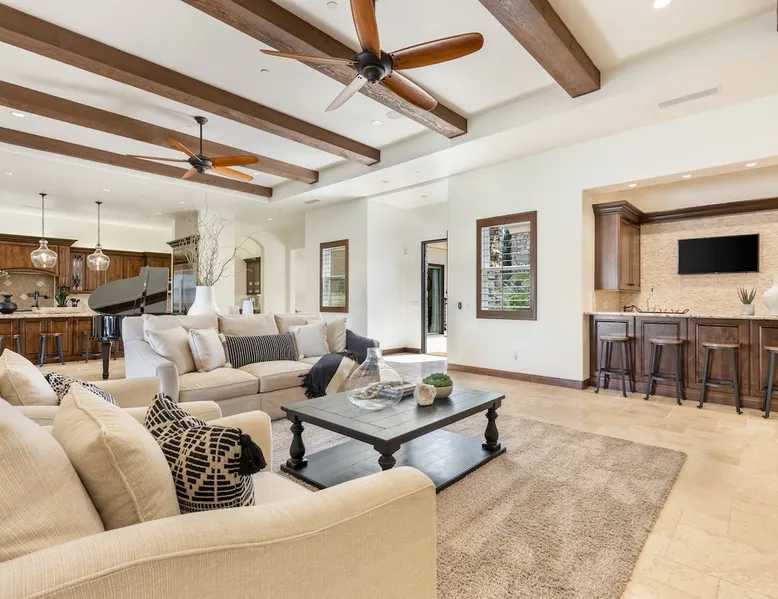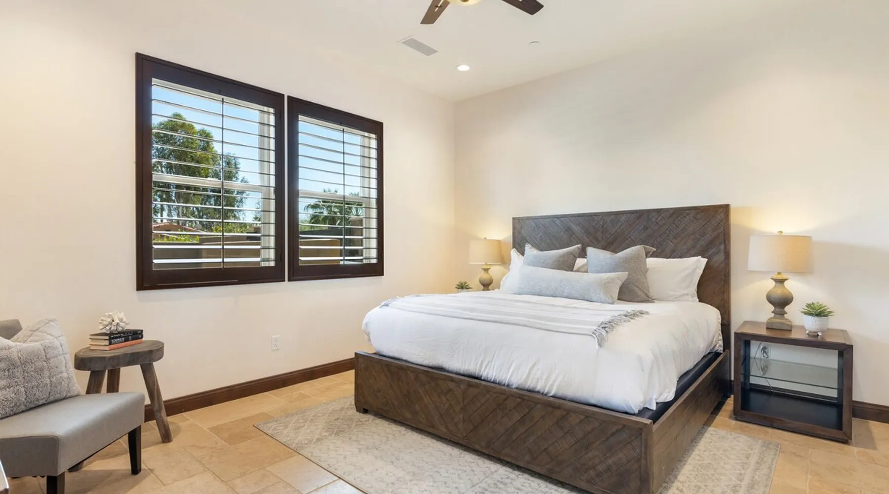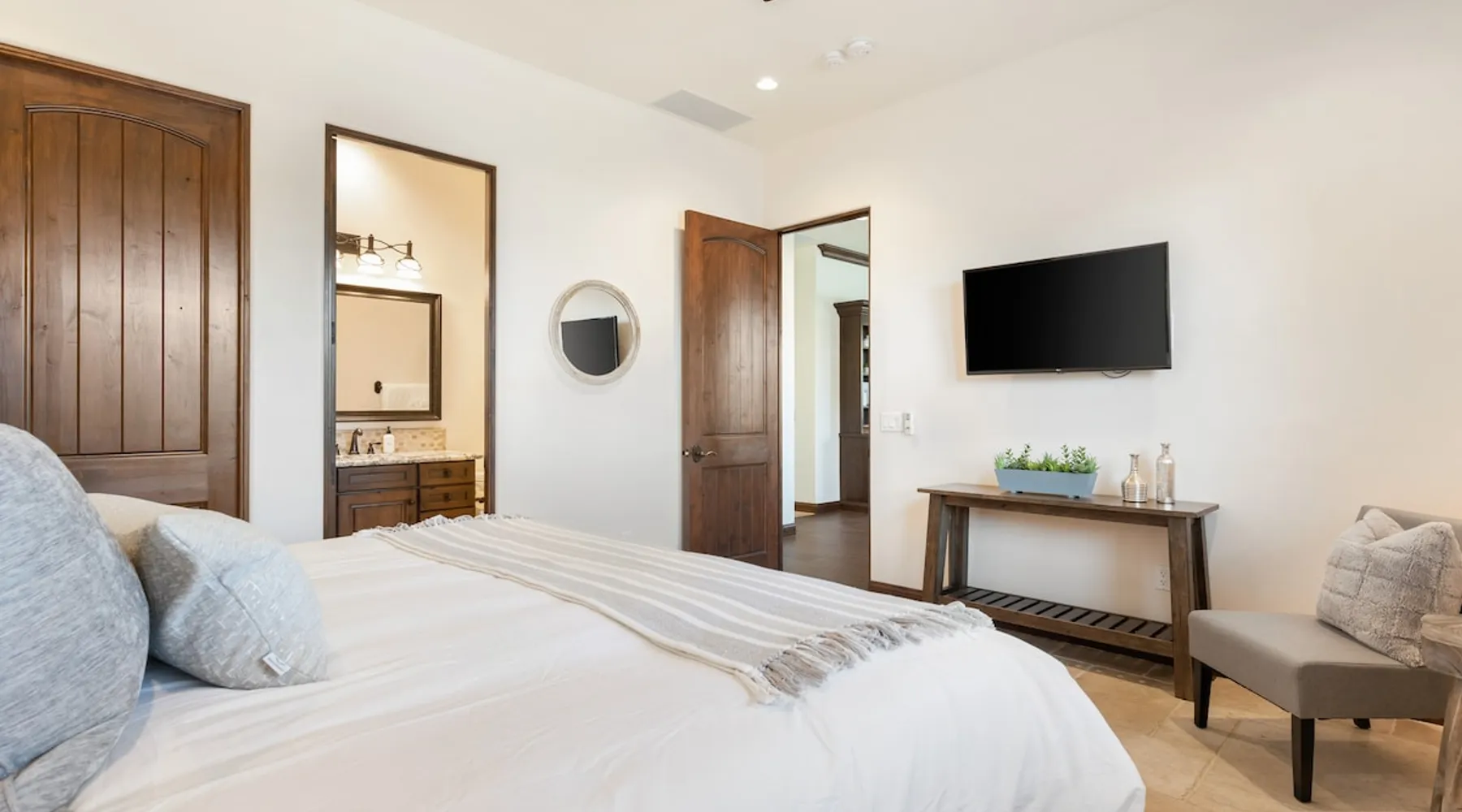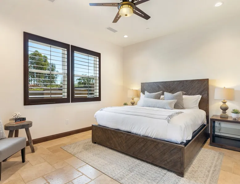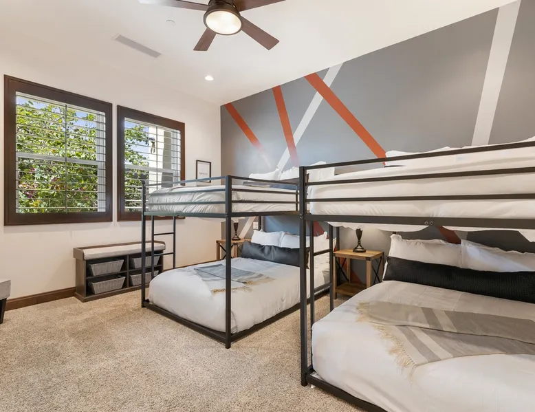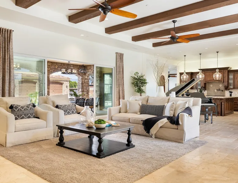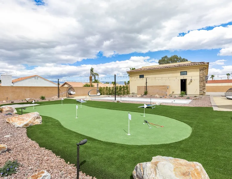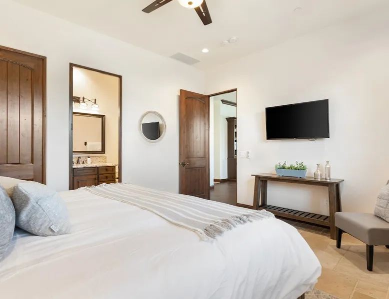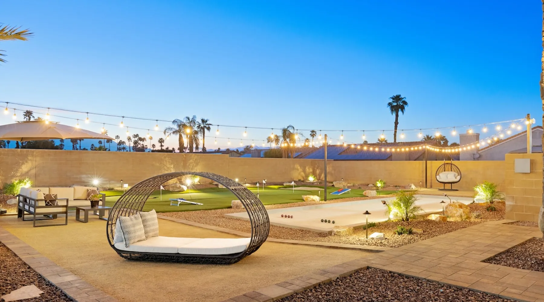 Nestled into the heart of Palm Desert, rustling foliage and mountain peaks set the scene for your stay. A pool in the backyard is accompanied by a bubbling hot tub and shaded lounge areas. Get competitive on the putting green or take things indoors for a billiards and ping pong tournament. The 4,500-square-foot home is near El Paseo and Old Town La Quinta where you’ll find local cuisine and shops. Copyright © Luxury Retreats. All rights reserved. The space Villa Bella is the ultimate place to enjoy the outdoor desert lifestyle with your choice of cushioned loungers, daybeds or one of the many other outdoor seating areas with two TVs and additional seating for 6. Enjoy al-fresco dining in the covered kitchen equipped with BBQ, cooktop, two more TVs and additional dining for 6! Stay cool and take the entertainment indoors to the converted gym and game room equipped with a pool table, ping pong, corn hole, air hockey, treadmill, Schwinn stationary bike, and elliptical plus a large sectional and big screen TV. Step inside to experience an entertainers delight in this elegant open-concept space boasting a baby grand piano, large comfy couch, bar area featuring a mini fridge with ice maker, second TV and seating for 4. The impressive chef's kitchen has everything you could dream of to whip up the ultimate feast and plenty of space for everyone to help! This kitchen is designed to take the stress out of entertaining with top-of-the-line appliances including two Wolf ovens, a subzero refrigerator and two dishwashers to do all the work at the end of the night. This single-story estate boasts 6 impressively large bedrooms all with Smart TVs, ceiling fans, premium mattresses and linens. • Primary: King size bed, en suite bathroom with stand-alone shower & bathtub • Bedroom 2 - King size bed with courtyard access. Shared bathroom with bedrooms 3 & 4 • Bedroom 3: King size bed. Shared bathroom with bedrooms 2 & 4 • Bedroom 4: 2 Double size bunk beds, Shared bathroom with bedrooms 2 & 3 • Bedroom 5: King size bed, en suite bathroom • Bedroom 6: Casita: King size bed, en suite bathroom and private entry off front courtyard Bed Summary: 5 Kings, 4 Fulls (2 bunk beds). Queen size air mattress upon request. There is space available for up to 6 cars total between the driveway and garage. Street parking & oversized vehicles are not permitted. **Vehicle access to the back yard is prohibited. Guest access through pedestrian gate only** STAFF & SERVICES Extra Cost (advance notice may be required): • Activities and excursions • Babysitting service • Pet fee ($150 per pet) Registration Details STR2024-0102