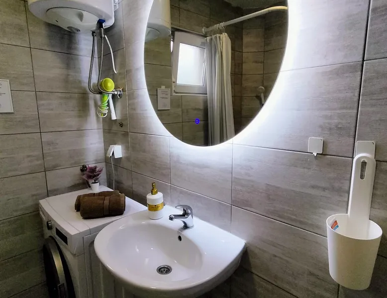 The apartment is located in an unforgettable vicinity of the airport and highway so you can reach all parts of the city very quickly. It has a private enclosed backyard so you can leave your car. Also two separate bedrooms for comfortable stay of 4 adults. The apartment is in a quiet street, out of traffic but with great connection to all parts of the city. There are several big supermarkets, pharmacies, bakeries, restaurants, fastballs, shops, and shopping malls nearby