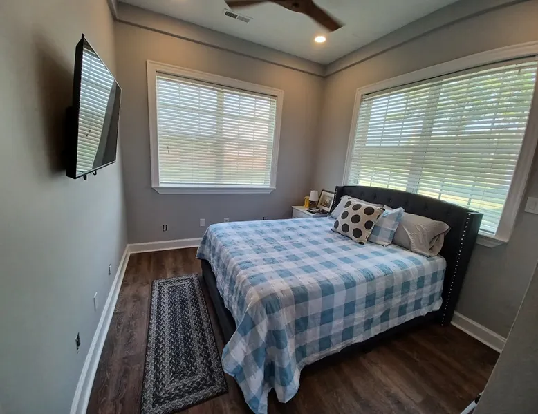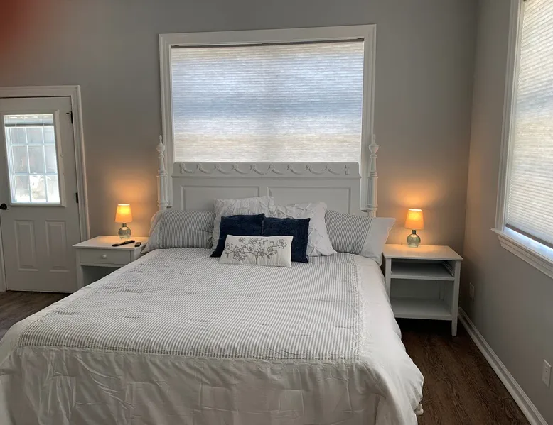 Enjoy this quiet 2 bed 2 bath house, a standalone home on the 2.7 acre historic Scarborough House Resort. Relax in this modern home with large bedrooms, smart TVs, full kitchen to bring out your inner chef, wifi, office nook, access to the pool and onsite gym. Enjoy the firepit with other guests staying elsewhere on property. See deer in the distance or play fetch with our Goldendoodle. Owners live in big house on site. 15 min off I95, 20-30 min from Wilson, Greenville, Rocky Mount. The space Enjoy the quiet countryside in your private two bedroom two bath house which sits on 2.7 acres of land at the Scarborough House Resort. Shared pool, gym, and outdoor fire pit amenities. There may be other guests utilizing other community areas of the property. Guest access Guests can enjoy the shared pool, gym, and outdoor fire pit. Walk specific sections of the near by farmland. Well behaved pets are welcome.