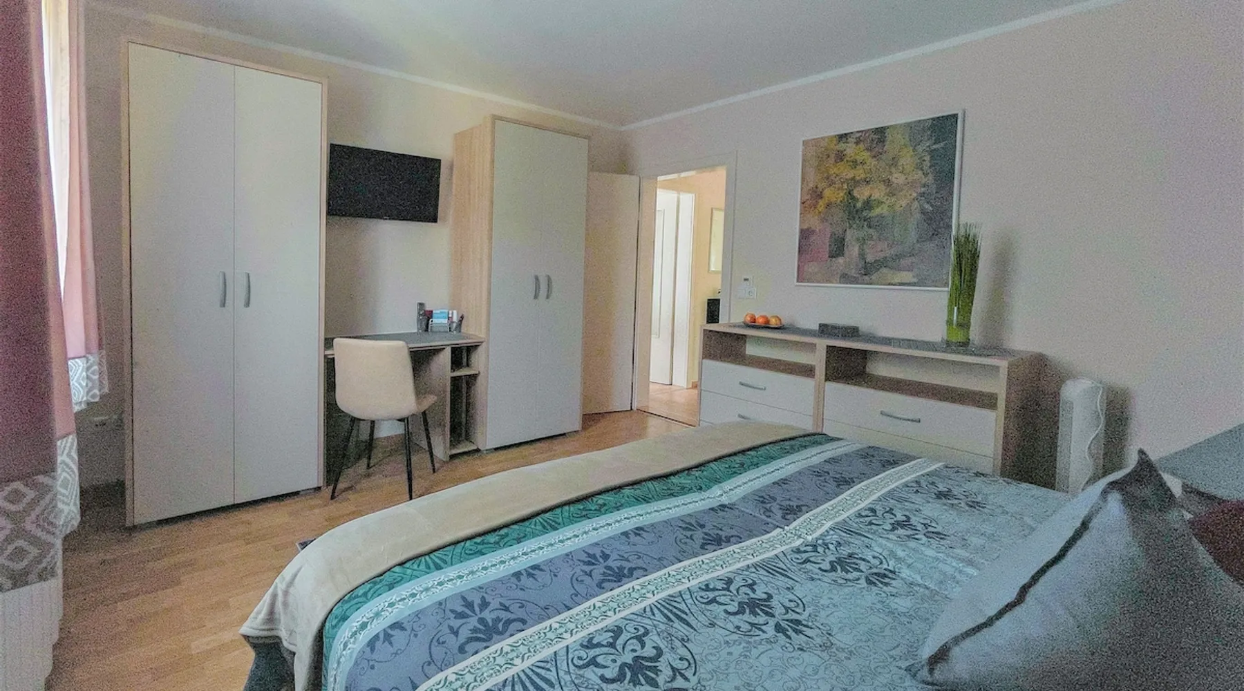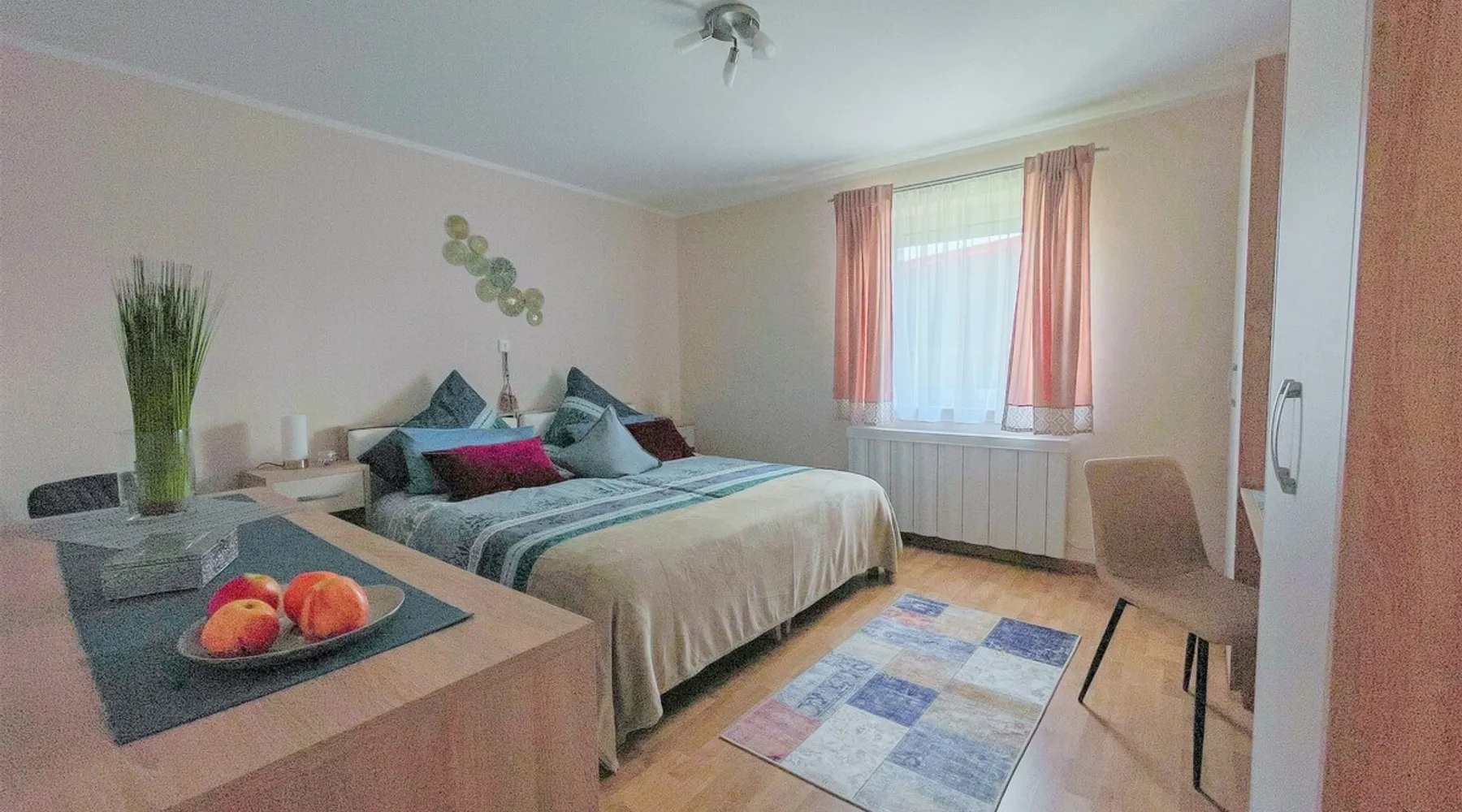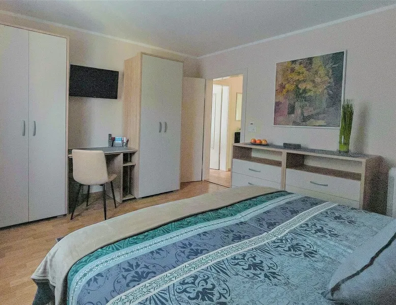 Temporary furnished living near Munich Airport They live centrally, less than 10 minutes drive to Munich Airport, Erding and Freising are right around the corner. Munich is about 45 km away. By public transport (bus stop 5 minutes walk) you can easily reach all directions. The space Our house is split into two apartments. Each apartment has a fully equipped kitchen, 2 rooms with double bed that can be separated if needed and a private bathroom with shower/toilet per room. One workspace is available in each room. All rooms are equipped with smart TVs. Wi-Fi and parking are available free of charge. The ground floor apartment "ANNA" includes a terrace, separate pergola and a small enclosed garden. Guest access Garden with pergola and terrace Laundry cellar Other things to note Free parking is available per room