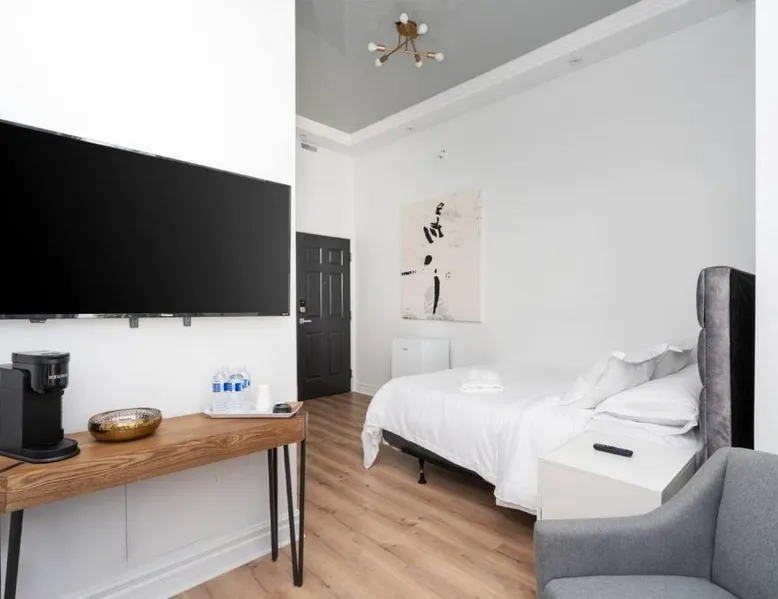 Comfortable Accommodations: Penfield Suites in Montréal offers comfortable rooms with air-conditioning, private bathrooms, and TVs. Each room includes a tea and coffee maker, hairdryer, and free toiletries. Essential Facilities: Guests enjoy free WiFi throughout the hotel. Reception staff speak English, ensuring smooth communication. Prime Location: Located 8.7 mi from Montreal-Trudeau International Airport, the hotel is close to attractions such as the Montreal Museum of Fine Arts (8-minute walk), Mount Royal Park (1.1 mi), and the Underground City (1.6 mi). Local Activities: The surrounding area features an ice-skating rink and boating opportunities, providing entertainment for all visitors. The air-conditioned suite features 1 bedroom and 1 bathroom with a hairdryer. This suite has a tea and coffee maker, heating and a TV. The unit offers 1 bed.