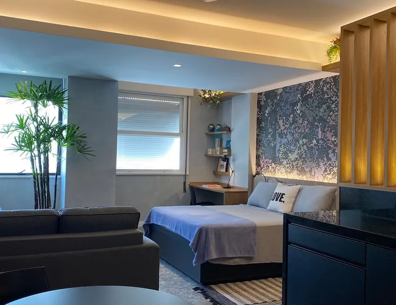 Welcome! You've arrived at the Loft of the architect Leblon. Leave your worries behind and relax in this calm, stylish space. Great location of a loft planned by an architect, thinking of making your stay an unforgettable experience. Two blocks from the beach with all the amenities in its surroundings: bars, restaurants, cafes, subway, shopping and services. Settle in and feel at home! The space Contemporary loft, newly renovated. Quiet, airy and well-lit. Complete infrastructure. Planned kitchen with cooktop, oven, microwave, minibar and appliances. Full bathroom and small service area. 22,000 BTU air-conditioning, 600 Mb Wi-Fi, 50” Smart TV and digital electronic lock on the door. Other things to note Check-in is from 2:00 p.m. onwards. Check-out by 11 a.m.