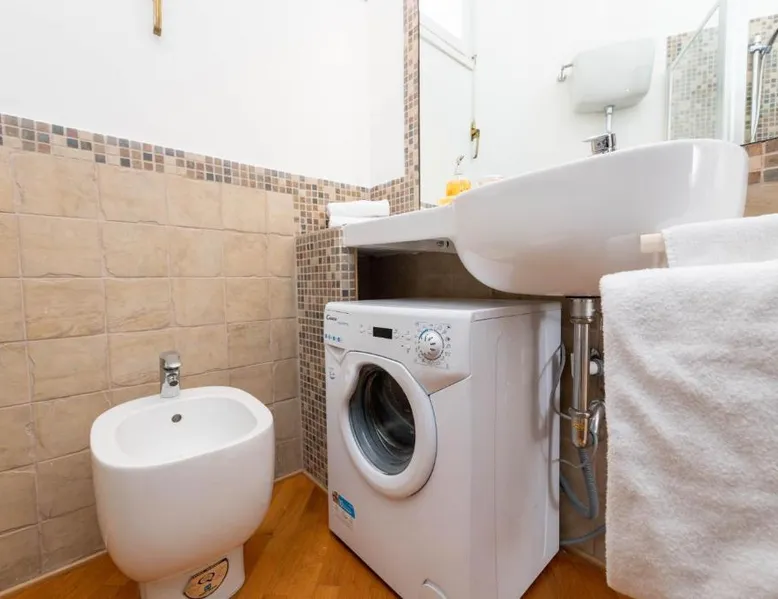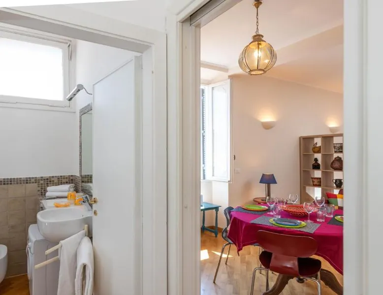 Prime Location: Banchi Apartments - Castel Sant'Angelo in Rome offers a central position with key attractions nearby. The Vatican is a 13-minute walk, while St Peter's Square lies 0.7 mi away. Castel Sant'Angelo is 1312 feet from the property, and Piazza Navona is an 8-minute walk. Comfortable Amenities: Guests enjoy free WiFi, air-conditioning, and a paid airport shuttle service. The apartment features a elevator, private bathroom, and a fully equipped kitchen with modern appliances. Additional amenities include a washing machine, dishwasher, and sofa bed. Local Attractions: Rome Ciampino Airport is 11 mi from the property. Nearby points of interest include Campo de' Fiori (2625 feet), Largo di Torre Argentina (14-minute walk), and an ice-skating rink. Guests appreciate the convenient location, sightseeing, history, and culture. This apartment consists of 1 living room, 2 separate bedrooms and 1 bathroom with a bath or a shower and free toiletries. Meals can be prepared in the kitchen, which comes with a stovetop, a refrigerator, a dishwasher and kitchenware. The apartment features parquet floors, a seating area with a flat-screen TV with streaming services, air conditioning, a washing machine, as well as a tea and coffee maker. The unit offers 3 beds.