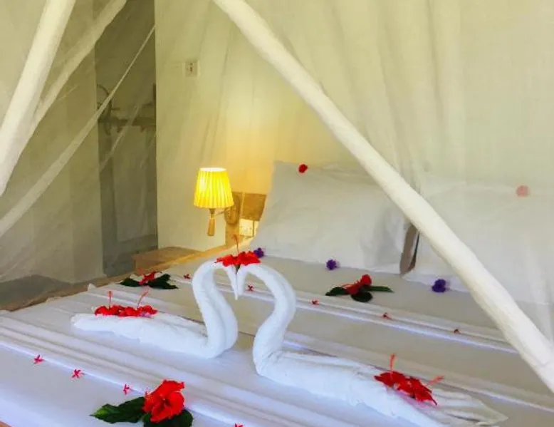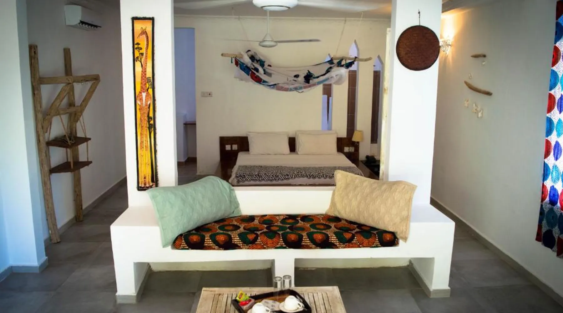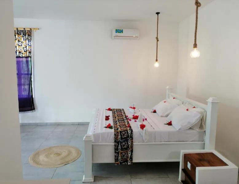 Beachfront and Leisure: Pemba Paradise in Makangale offers direct beachfront access, a lush garden, terrace, and a year-round outdoor swimming pool. Guests enjoy free WiFi in public areas, a restaurant, bar, and games room. Comfortable Accommodations: Rooms feature air-conditioning, balconies with garden or sea views, private bathrooms, and amenities such as bathrobes and mini-bars. Family rooms and ground-floor units are available. Dining and Services: The resort serves African cuisine in a traditional restaurant setting. Breakfast options include continental, American, buffet, and vegetarian. Additional services include a pool bar, coffee shop, and picnic area. Activities and Surroundings: Guests can participate in walking tours and scuba diving. The property is 37 mi from Wawi Airport and near attractions like Mafia Island. Highly rated for beach access, staff support, and garden. Featuring a private entrance, this air-conditioned suite is consisted of of 1 bedroom and 1 bathroom with a walk-in shower and a bidet. The suite features soundproof walls, a mini-bar, a seating area as well as a terrace with sea views. The unit offers 1 bed.