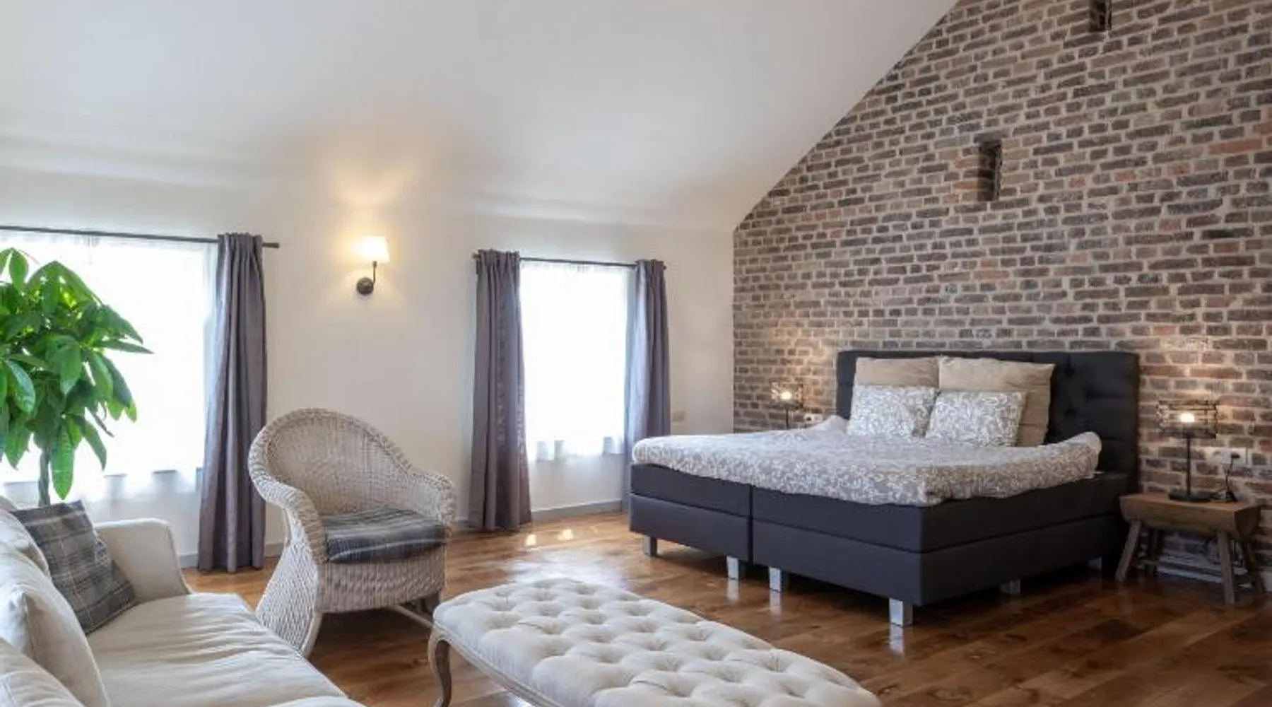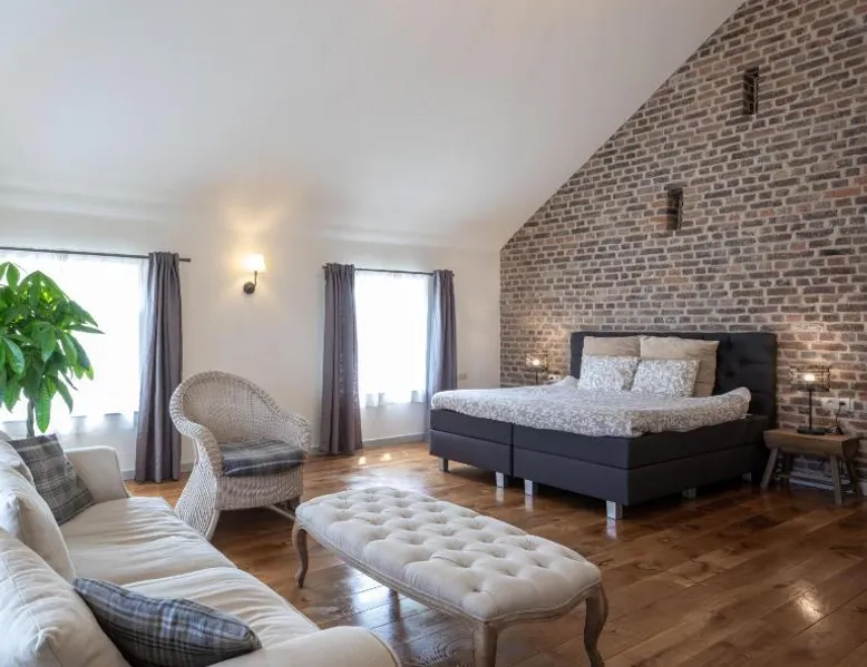 Comfortable Accommodations: B&B De Bloesem in Hoeselt offers family rooms with air-conditioning, private bathrooms, and modern amenities. Each room includes a dining area, TV, and soundproofing for a pleasant stay. Outdoor Spaces: Guests can relax on the sun terrace or in the garden, enjoying free WiFi throughout the property. The outdoor seating area and picnic spots provide ample space for leisure activities. Delicious Breakfast: A highly rated breakfast is served daily, featuring local specialties, warm dishes, fresh pastries, and more. Breakfast in the room and room service cater to diverse dietary needs. Convenient Location: Located 17 mi from Liège Airport, the bed and breakfast is near attractions such as Bokrijk and Maastricht International Golf, each 12 mi away. Free on-site private parking is available. This suite includes 1 living room, 1 separate bedroom and 1 bathroom with a walk-in shower and free toiletries. This suite has air conditioning, soundproof walls, flat-screen TV, as well as wine/champagne for guests. The unit has 1 bed.