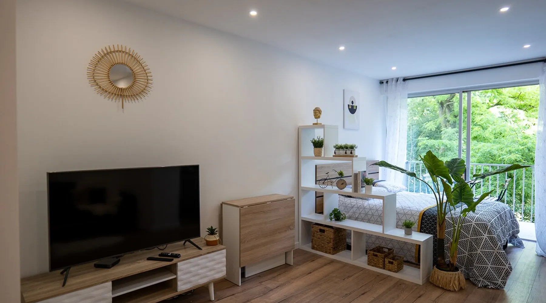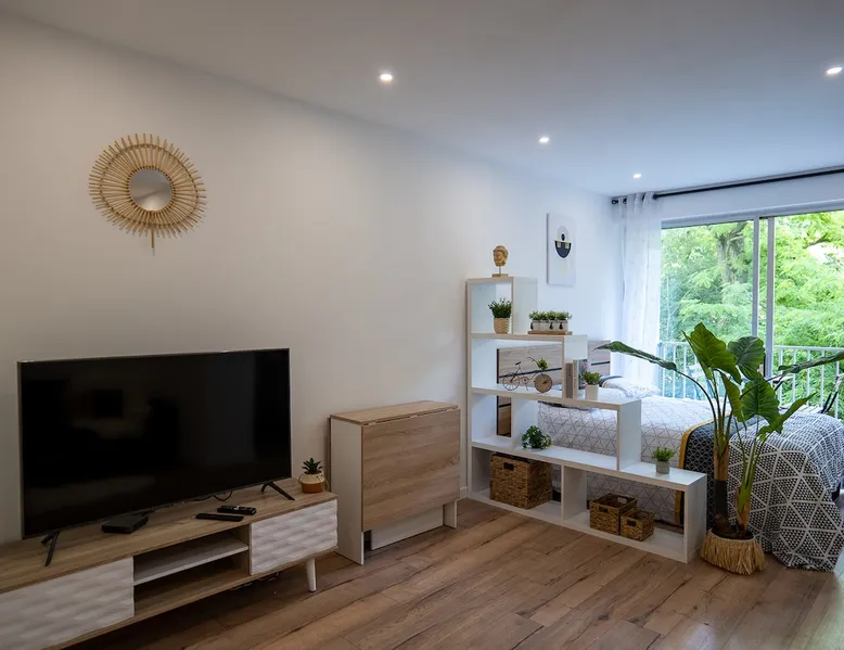 Charming studio set in peaceful and wooded residence. Boasting a strategic location, you will be close to the train station and 30min from Paris, 20min from Paris Orly Airport and 5min from Evry and its EVRY 2 shopping center. This studio is ideal for tourist or business travel. Fully furnished with an equipped kitchen ( oven, fridge, microwave), storage, bathroom, WiFi, sleeping area. Additionally, private parking is available with the accommodation The space Comfortable studio equipped with a 2 seater bed + 1 2 seater convertible sofa, a functional kitchen with washing machine, microwave, induction plate, oven and refrigerator. Accès internet fibre via WIFI, Smart TV (Youtube, Netflix..) Towel, coffee machine capsules, and laundry detergent provided for free!