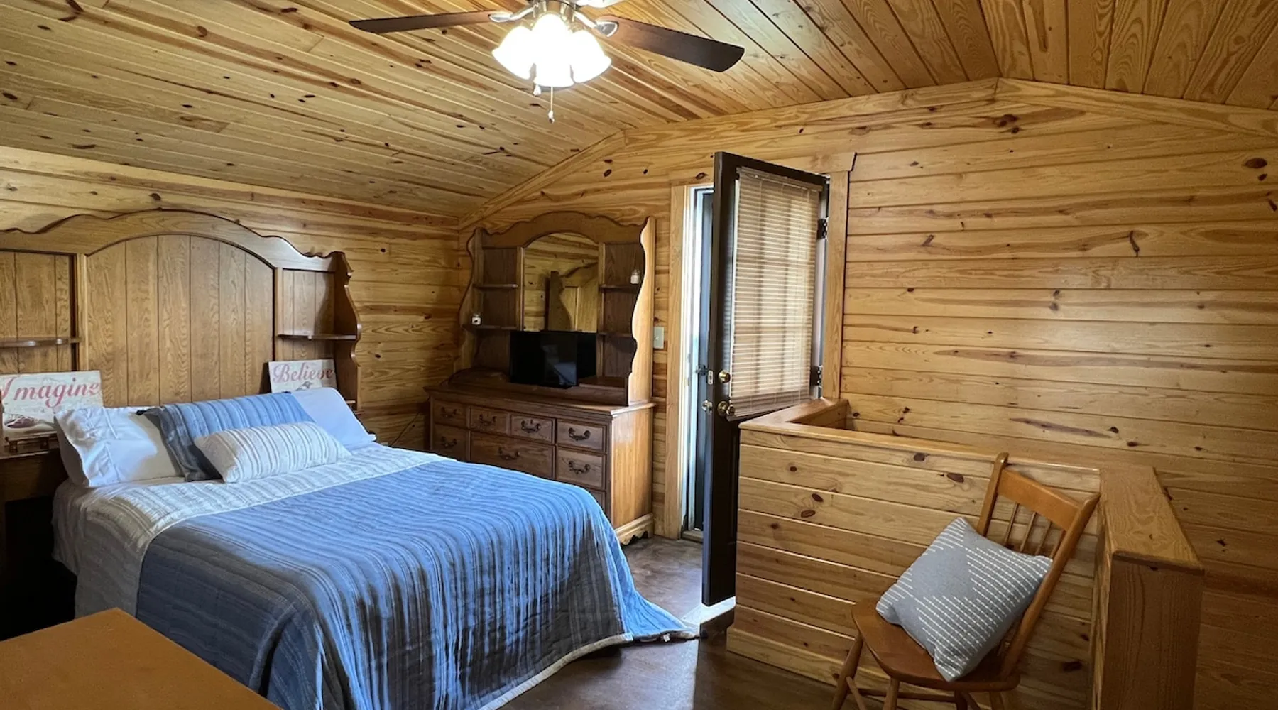 Adventure awaits you in this rustic getaway. Charming Cabin made from old tobacco barn blending the Old South with New trendy furnishings. Resting in a tranquil setting surrounded by horses and pastures. Fully furnished w/ dishes, towels etc. Including a new Q Bed mattress upstairs, new loveseat w/ double bed pull out and new recliner chair downstairs, 2 new TVs and dining table. Within 15 minutes from Wilson and 15 to Goldsboro. 10 miles from I-95. The space No smoking in the the cabin space. Other things to note We do not allow pets!