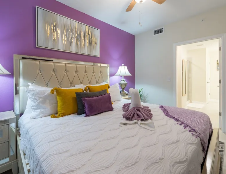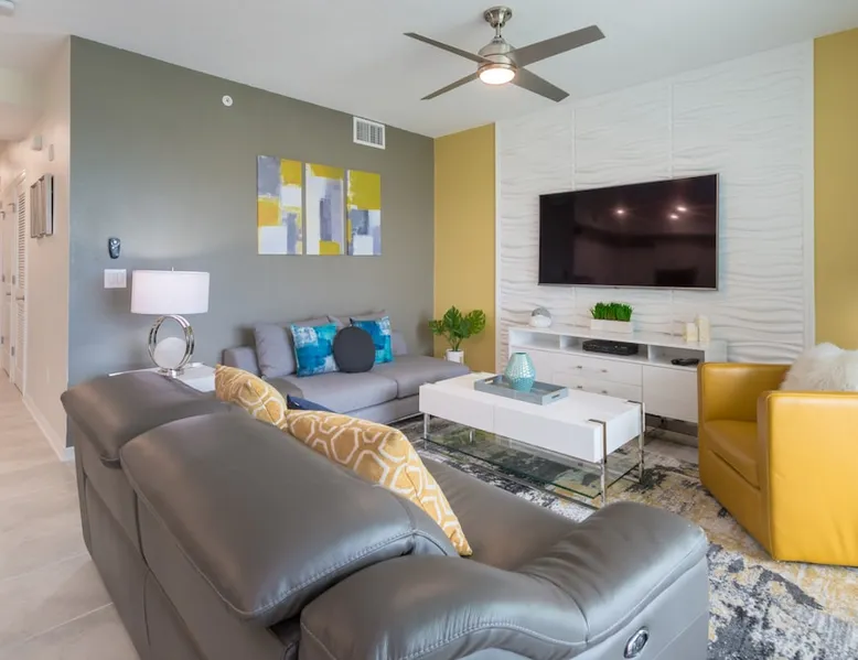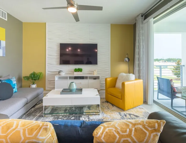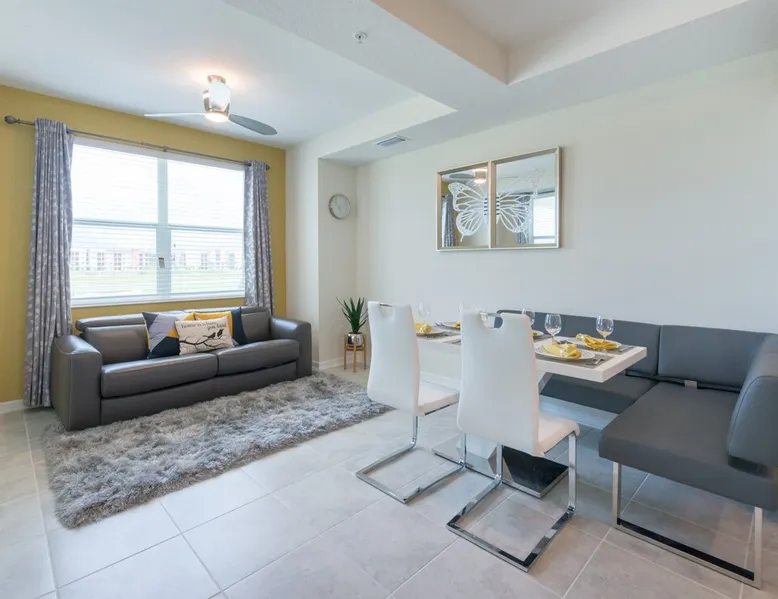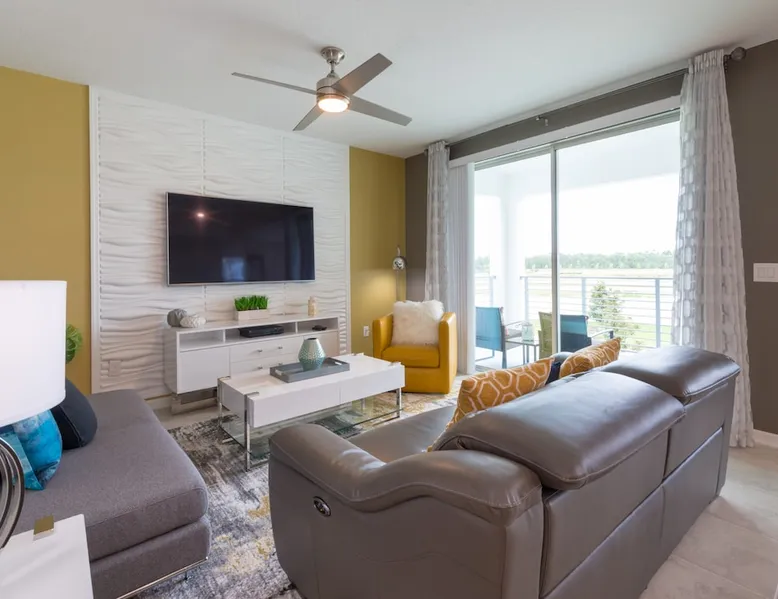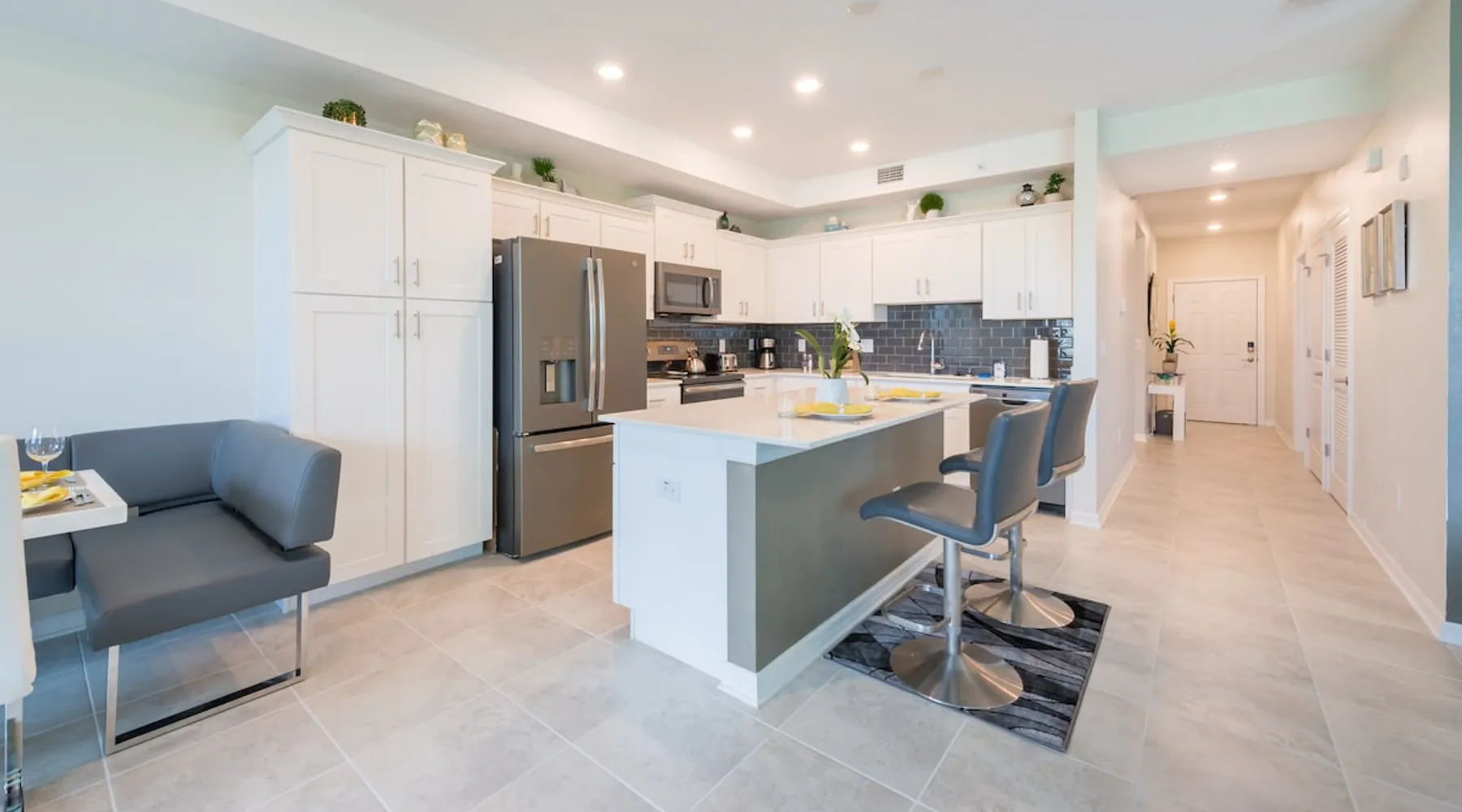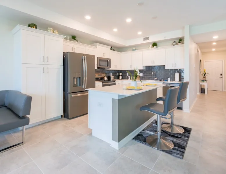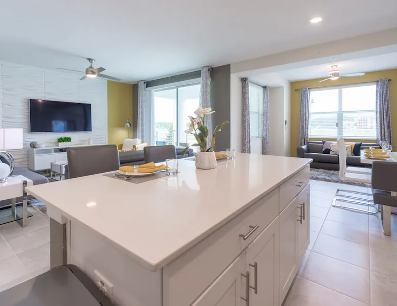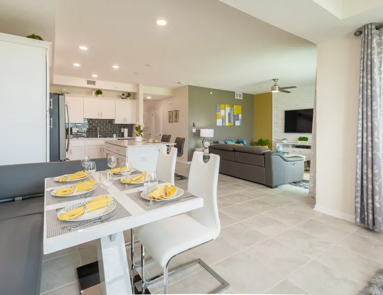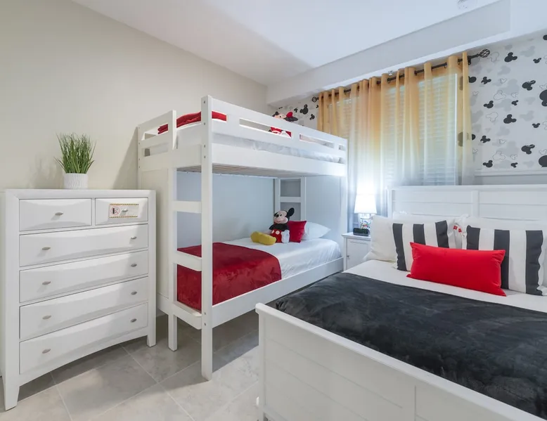 Sparkling clean and sanitized by following CDC guidelines. Storey Lake Resort is designed to maximise the comfort, convenience and proximity to Disney & other theme parks. This spacious 2 BR + Flex room condo is perfect for family dream vacations or business trips. Unit is furnished with stylish decors and comfortable furniture. After a long day at park or work, you will be enticed to sink into a cozy and relaxed home to enjoy dinner & a movie on big screen TV or simply relax on the balcony. The space This brand new development is conveniently located on Osceola Pkwy, Hwy-192 and SR 535 which makes it ideal for a short ride to major parks, regional malls, restaurants and entertainment centers. *Walmart, Publix & Target- within a mile *Premier resort with 24 hour security *WiFi, clubhouse facilities, cable services & parking for FREE! *Elevator and ramp for handicap guests, 1-floor accomodation *10 min to Disney, Sea World & Convention Ctr. *15 min to Universal Accommodations: Perfect for up to 8 guests Modern full-equipped kitchen Master suite with king bed and attached bathroom 2nd bedroom with a full bed and twin over twin bunk bed Queen sofa bed in Flex room. In-house Washer / Dryer Balcony with setting area State-of-the-art Clubhouse Facilities: *Pool, Water Slides, Lazy River, Jacuzzi, Splash park *Basketball Court, Volleyball Court, Putting Green. *Fitness Ctr, Business Ctr, Day Spa. *Tiki bar with drinks & snacks, Ice Cream parlor. *Kayak or mini-golf for a small fees.. Guest access All our guests may access to water park and other clubhouse facilities including Swimming Pools, Jacuzzi, Day Spa, Business and Fitness Center, Tiki Bar and Ice Cream Parlor. Guests can rent a Kayak or play Mini-Golf for a small fees. Other things to note Please throw your garbage bags inside the chutes located in front of elevator on each floor. There's $4 tolls on Osceola Parkway. You may take Hwy-192 or SR-535 to avoid tolls.