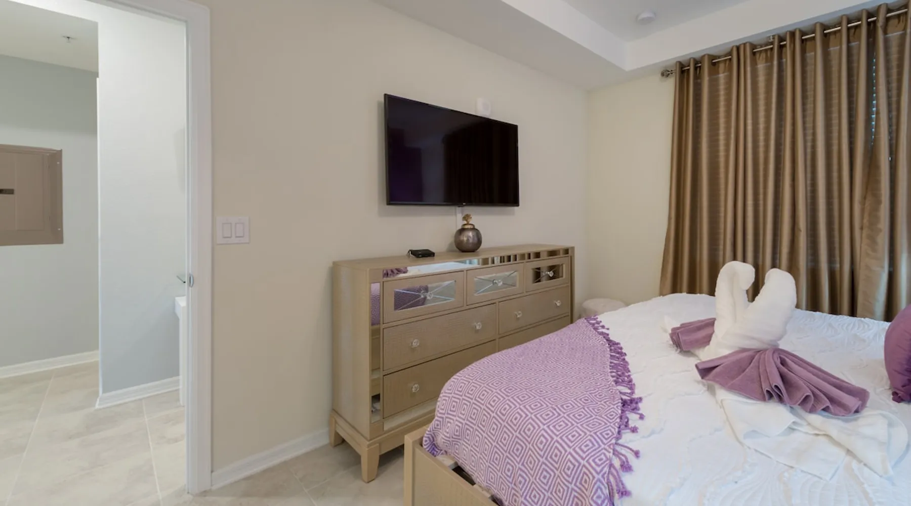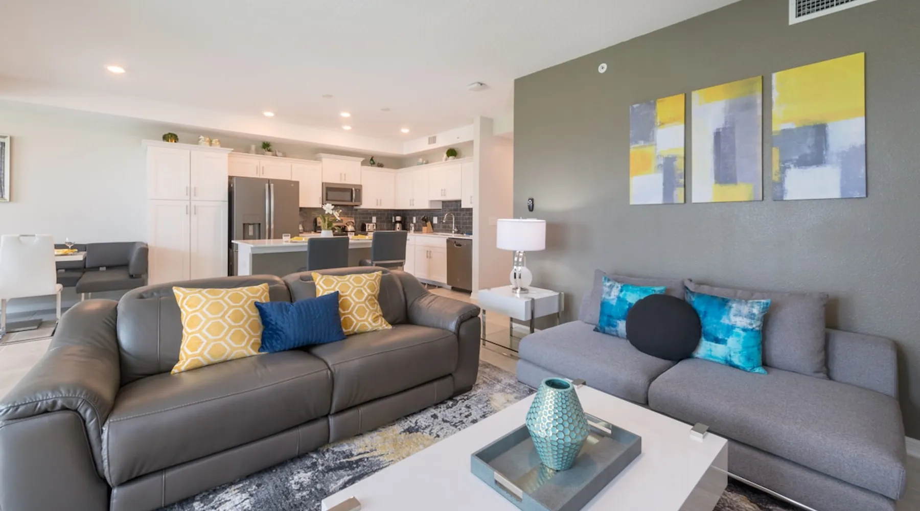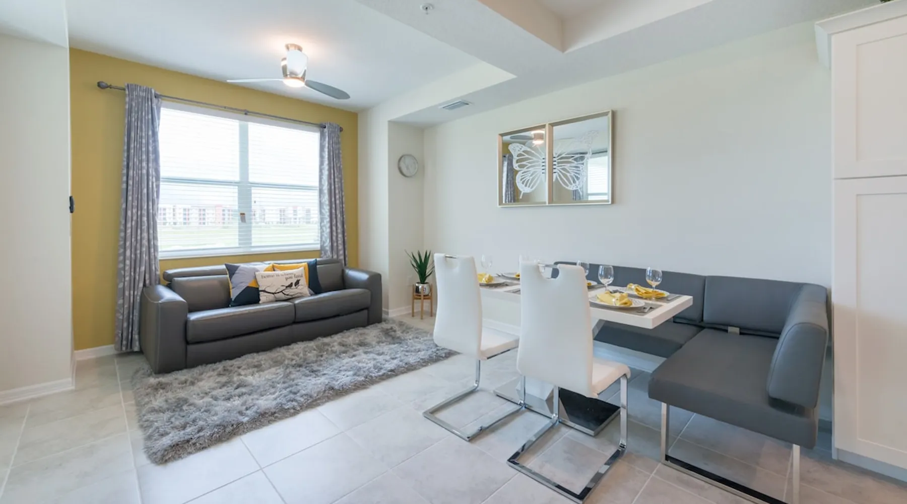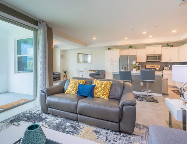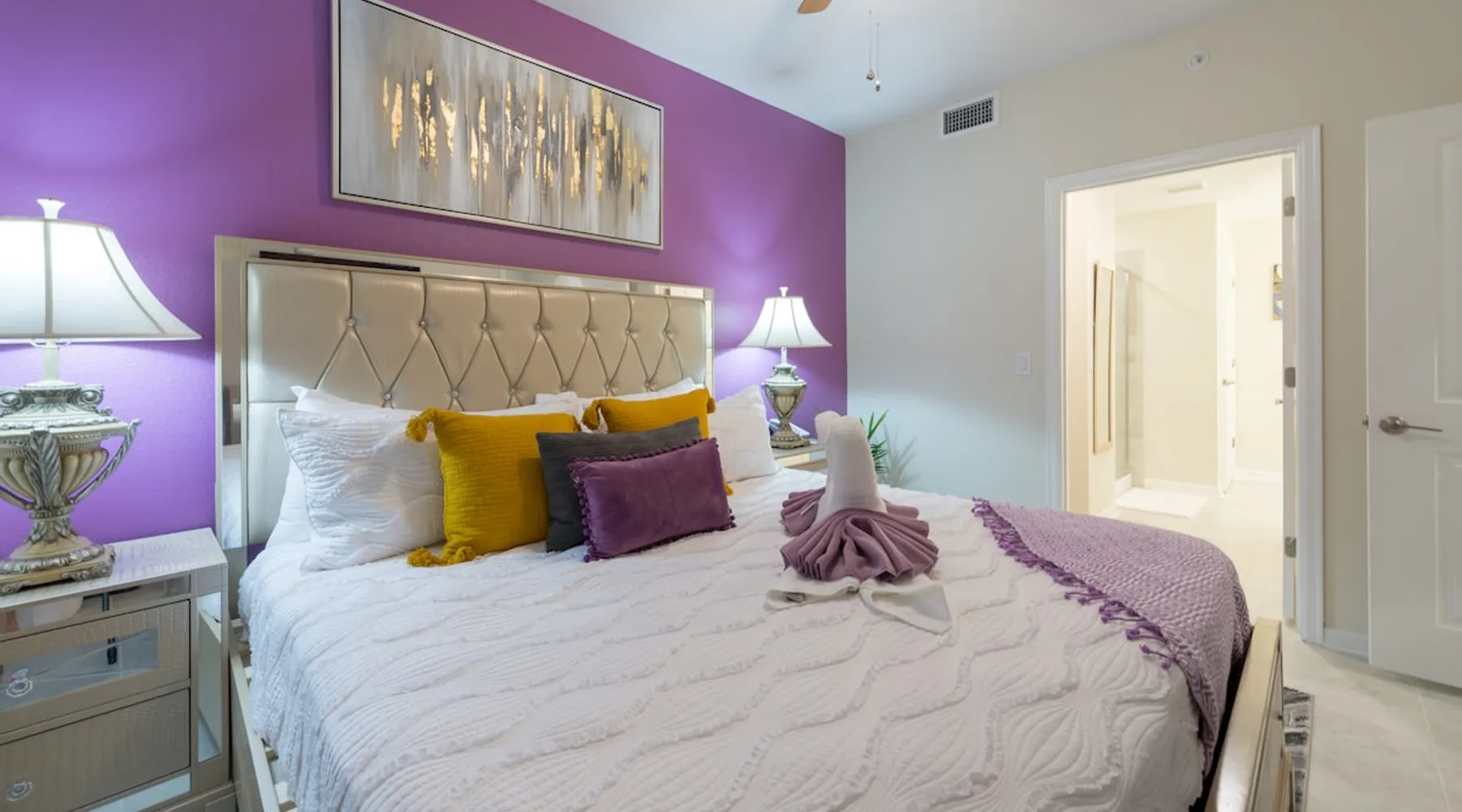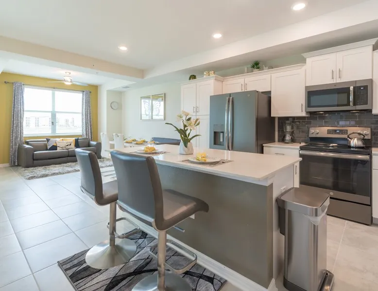 Sparkling clean and sanitized by following CDC guidelines. Storey Lake Resort is designed to maximise the comfort, convenience and proximity to Disney & other theme parks. This spacious 2 BR + Flex room condo is perfect for family dream vacations or business trips. Unit is furnished with stylish decors and comfortable furniture. After a long day at park or work, you will be enticed to sink into a cozy and relaxed home to enjoy dinner & a movie on big screen TV or simply relax on the balcony. The space This brand new development is conveniently located on Osceola Pkwy, Hwy-192 and SR 535 which makes it ideal for a short ride to major parks, regional malls, restaurants and entertainment centers. *Walmart, Publix & Target- within a mile *Premier resort with 24 hour security *WiFi, clubhouse facilities, cable services & parking for FREE! *Elevator and ramp for handicap guests, 1-floor accomodation *10 min to Disney, Sea World & Convention Ctr. *15 min to Universal Accommodations: Perfect for up to 8 guests Modern full-equipped kitchen Master suite with king bed and attached bathroom 2nd bedroom with a full bed and twin over twin bunk bed Queen sofa bed in Flex room. In-house Washer / Dryer Balcony with setting area State-of-the-art Clubhouse Facilities: *Pool, Water Slides, Lazy River, Jacuzzi, Splash park *Basketball Court, Volleyball Court, Putting Green. *Fitness Ctr, Business Ctr, Day Spa. *Tiki bar with drinks & snacks, Ice Cream parlor. *Kayak or mini-golf for a small fees.. Guest access All our guests may access to water park and other clubhouse facilities including Swimming Pools, Jacuzzi, Day Spa, Business and Fitness Center, Tiki Bar and Ice Cream Parlor. Guests can rent a Kayak or play Mini-Golf for a small fees. Other things to note Please throw your garbage bags inside the chutes located in front of elevator on each floor. There's $4 tolls on Osceola Parkway. You may take Hwy-192 or SR-535 to avoid tolls.