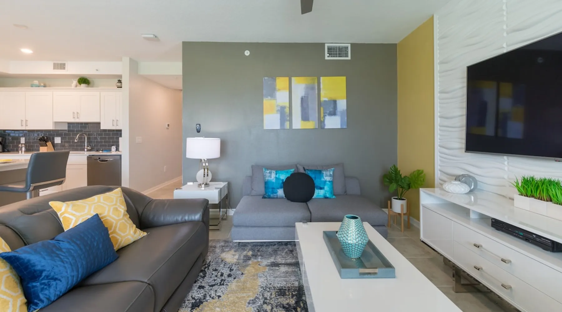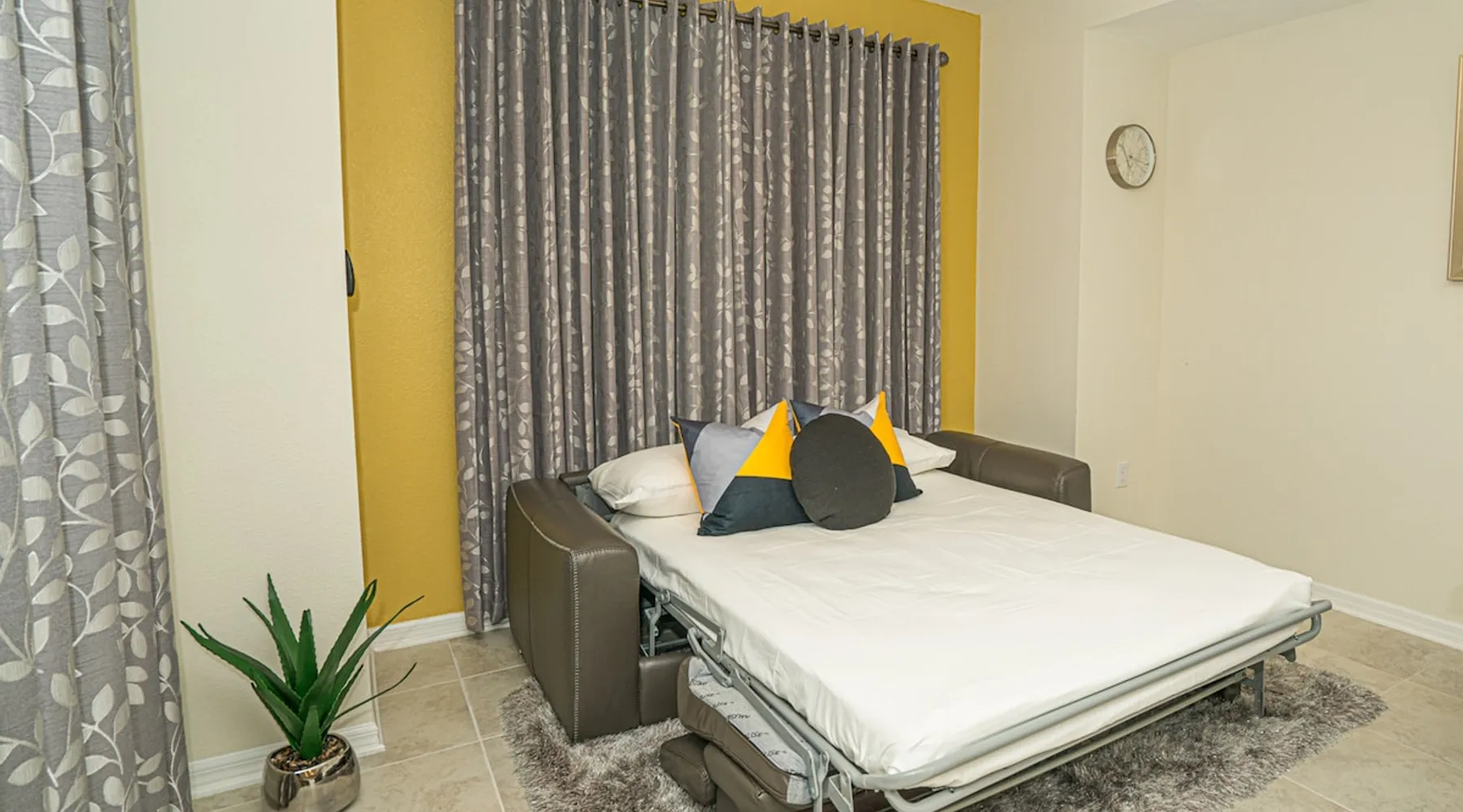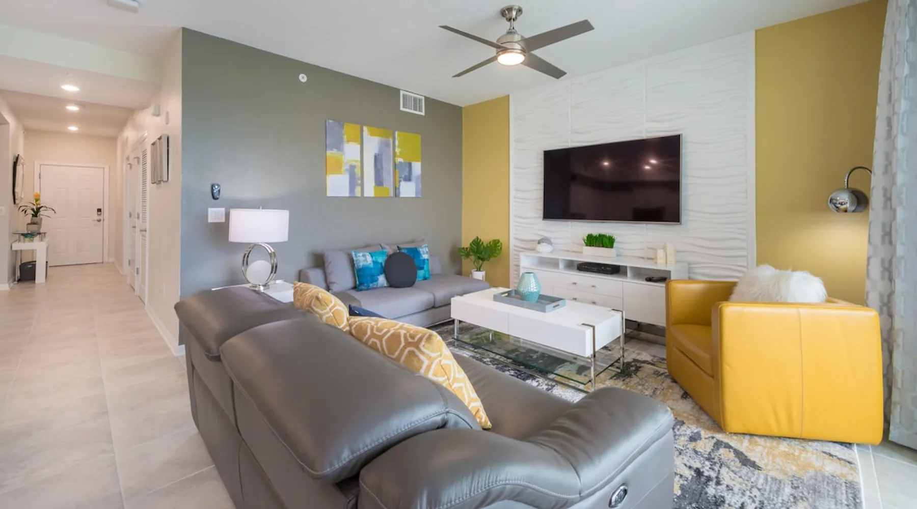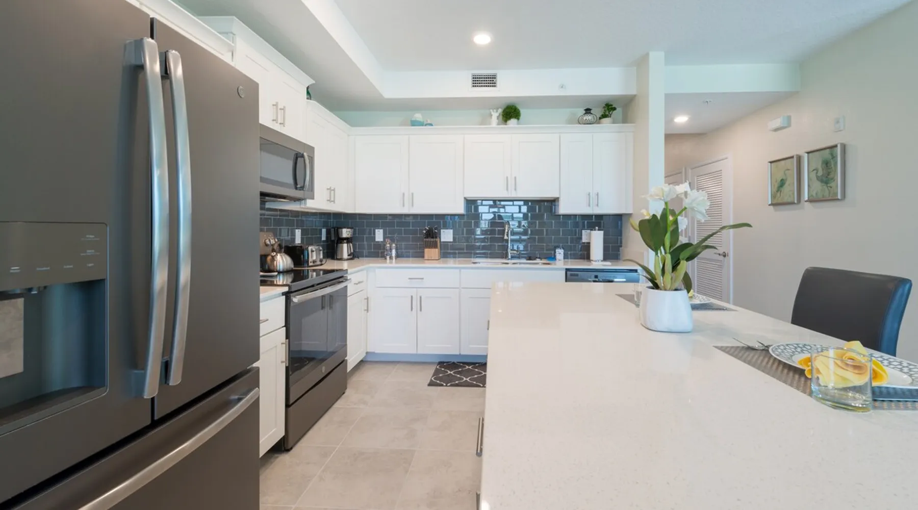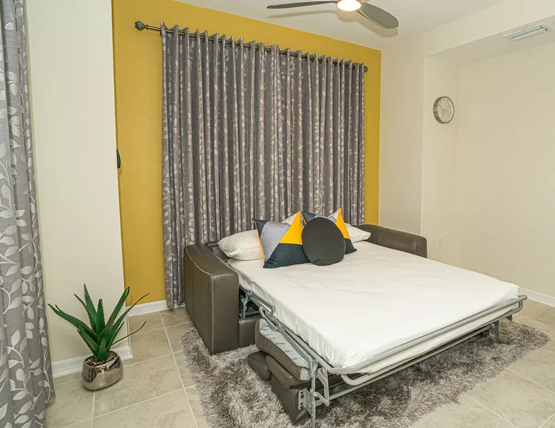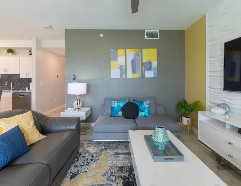 Sparkling clean and sanitized by following CDC guidelines. Storey Lake Resort is designed to maximise the comfort, convenience and proximity to Disney & other theme parks. This spacious 2 BR + Flex room condo is perfect for family dream vacations or business trips. Unit is furnished with stylish decors and comfortable furniture. After a long day at park or work, you will be enticed to sink into a cozy and relaxed home to enjoy dinner & a movie on big screen TV or simply relax on the balcony. The space This brand new development is conveniently located on Osceola Pkwy, Hwy-192 and SR 535 which makes it ideal for a short ride to major parks, regional malls, restaurants and entertainment centers. *Walmart, Publix & Target- within a mile *Premier resort with 24 hour security *WiFi, clubhouse facilities, cable services & parking for FREE! *Elevator and ramp for handicap guests, 1-floor accomodation *10 min to Disney, Sea World & Convention Ctr. *15 min to Universal Accommodations: Perfect for up to 8 guests Modern full-equipped kitchen Master suite with king bed and attached bathroom 2nd bedroom with a full bed and twin over twin bunk bed Queen sofa bed in Flex room. In-house Washer / Dryer Balcony with setting area State-of-the-art Clubhouse Facilities: *Pool, Water Slides, Lazy River, Jacuzzi, Splash park *Basketball Court, Volleyball Court, Putting Green. *Fitness Ctr, Business Ctr, Day Spa. *Tiki bar with drinks & snacks, Ice Cream parlor. *Kayak or mini-golf for a small fees.. Guest access All our guests may access to water park and other clubhouse facilities including Swimming Pools, Jacuzzi, Day Spa, Business and Fitness Center, Tiki Bar and Ice Cream Parlor. Guests can rent a Kayak or play Mini-Golf for a small fees. Other things to note Please throw your garbage bags inside the chutes located in front of elevator on each floor. There's $4 tolls on Osceola Parkway. You may take Hwy-192 or SR-535 to avoid tolls.
