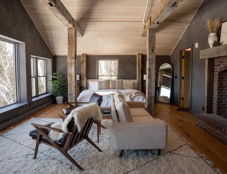 Sterling Forest Lodge is a picturesque escape in the mountains above Stowe, Vermont. Typically, we specialize in intimate wellness experiences and retreats that are all-inclusive programs with dining, wellness, and unparalleled access to nature. When not hosting retreats, we offer access to some of our rooms via Airbnb. This listing is for our Grand Suite pictured above. Other rooms are available to rent as well so please inquire if you would like to book more than one room! The space Sterling Forest Lodge is a boutique lodge and wellness retreat. Occasionally we offer our rooms on Airbnb when we do not have retreats. All our rooms are very well designed with brand new amenities and high-end appliances. Our mattresses and linens are all organic and sustainably made by Avocado Green Mattresses and VERY comfortable. The Grand suite also has a copper tub in the room with amazing views of the green mountains. This room can be combined with our Bunk Room (Walnut) should you want to rent more than one room for your stay with us. Please inquire about that option. Guest access Guests have access to their room and all common spaces including multiple living rooms with fireplaces, breakfast nook, library and much more. You also have access to our 30 acres of beautiful walking and XC ski trails! There is no kitchen access, but we do have a mini fridge. Breakfast is not included in Airbnb stays. Other things to note We limit two people per room. Ages 12+ We HIGHLY recommend 4WD/AWD or Snow tires to access the Lodge during winter months, especially when it has recently snowed. We are at the end of a dirt road in the mountains and sometimes the roads can be challenging. Please heed this warning! Please inquire if you would like to book more than one room during your stay.