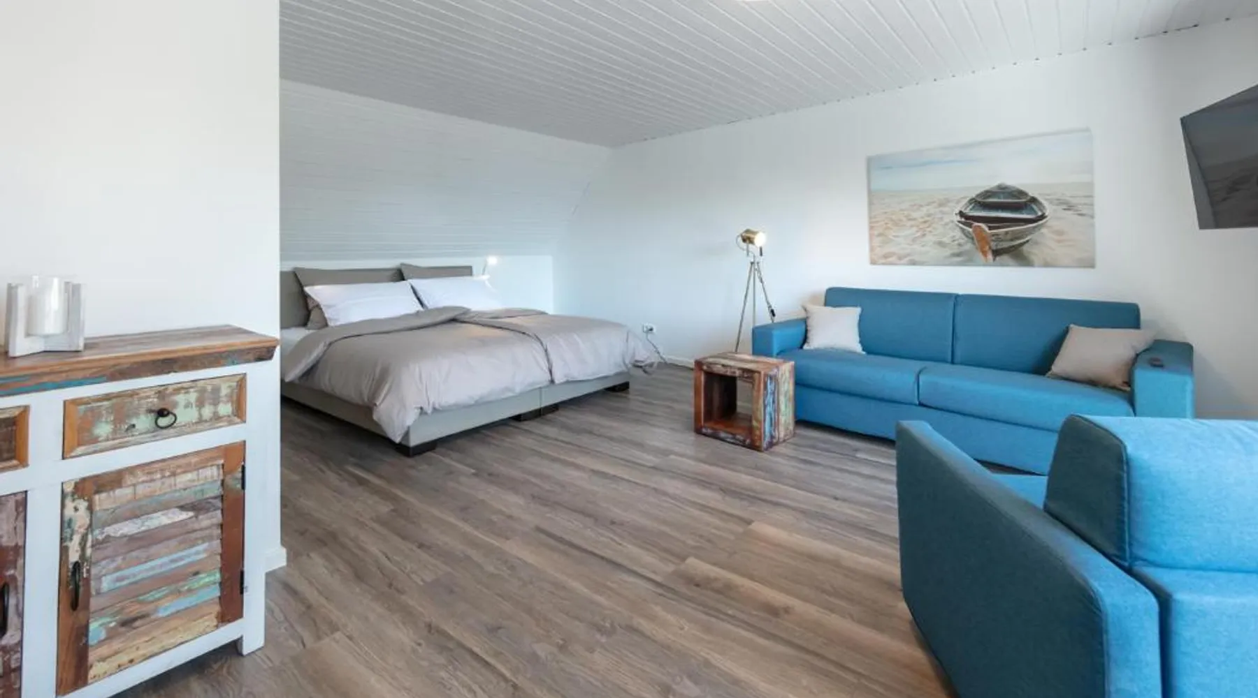 Spacious Accommodations: Alte Seilerei in Kappeln an der Schlei offers a spacious villa with two bedrooms and two bathrooms. The property features a living room, kitchenette, and balcony, ensuring comfort for all guests. Relaxing Facilities: Guests can enjoy a sauna, sun terrace, and garden. Free WiFi is available throughout the villa, providing connectivity for all travelers. Convenient Amenities: The villa includes a minimarket, outdoor seating area, hairdresser/beautician, family rooms, bicycle parking, and barbecue facilities. Free on-site private parking is provided. Local Attractions: Located 26 mi from the University of Flensburg and 27 mi from Pedestrian Area Flensburg and Train Station Flensburg, the property is also close to Flensburg Harbor and Maritime Museum Flensburg. Cycling activities are available nearby. This villa offers a sauna. Guests will find a stovetop, a refrigerator, a dishwasher and kitchenware in the fully equipped kitchen. The villa also provides guests with a barbecue. The spacious villa provides a flat-screen TV with streaming services, a private entrance, a tea and coffee maker, a seating area as well as garden views. The unit offers 5 beds.