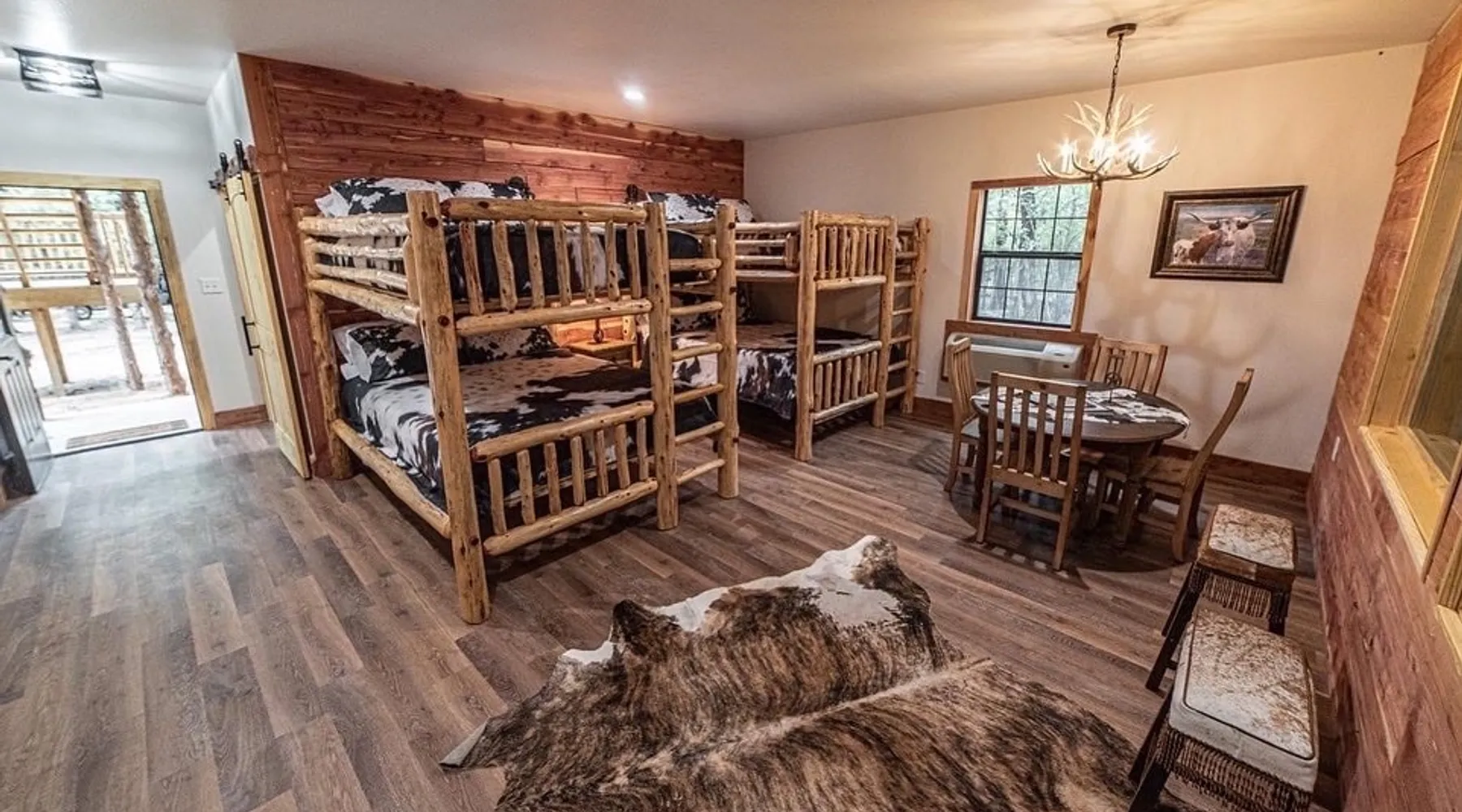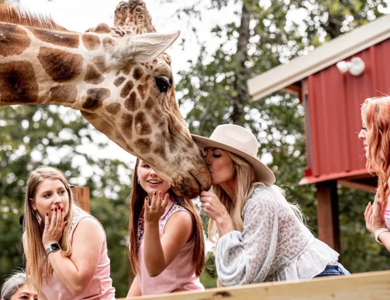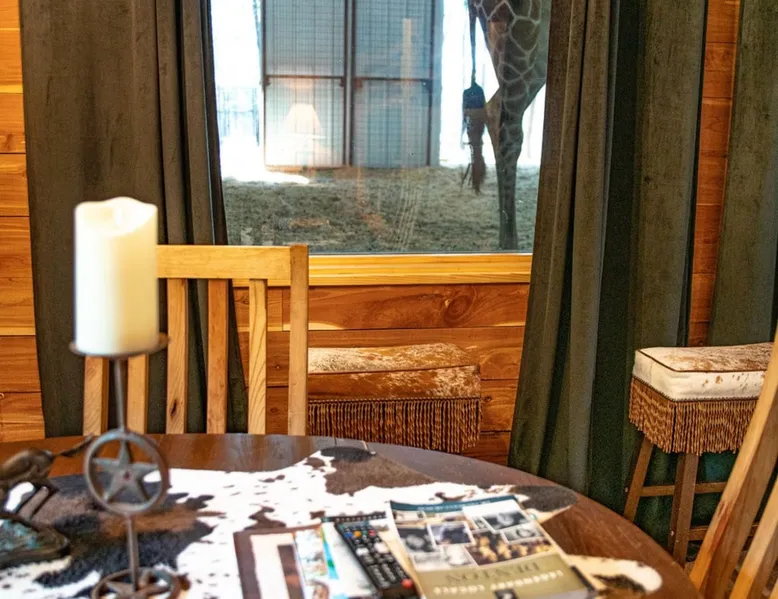 Bring your family for a stay that will create lifetime memories as you cohabitate with Puzzles the Giraffe. This luxury bunkhouse, on the lower level, is dedicated to the Texas Pitchfork Ranch with all the amenities you and your fellow wranglers would expect and can enjoy. Your family can experience a 5 star stay! ADD the dining experience which includes a chef dinner & wildlife encounter for $598 for 2 and get a complimentary bottle of wine for the room! Restaurant is closed on Mon & Wed. The space You’ll be able to observe puzzles our giraffe day & night and feed him our provided snacks only while in the comfort of your room. The room is stocked with complimentary snacks & drinks, a cappuccino machine , custom giraffe mugs, televisions with smart apps, toiletries & all bedding. We have room for the whole family with 2 sets of queen bunkbeds! (Please note: there is an additional $100 charge for each guest per night after the first 4 and loud excessive noise is not allowed for the safety of the animals.) With this room you also have the option to make use of the adjoining door to our Waggoner Suite which can hold up to 2 guests. You can book both rooms for some amazing family fun! Our ranch is located in the heart of North Texas just one hour from Dallas Fort Worth. We have amazing amenities to include hot tub, cowboy pool, game room, walking trails, prayer garden, firepits , scavenger hunt for big foot & more !! You will be able to feed and watch puzzles the giraffe day and night right from the comfort of your room! If you are an animal lover this is the place to be! SPA- Come spoil yourself at our brand new spa; relax, refresh, recharge! If anyone in your party would like to book a massage, please let us know and we would be happy to get you booked! Benefits: "'Massage is not just a luxury. Tis a way to a healthier and happier life.' • Enhance immunity by stimulating lymph flow, which is body's natural defense system • Endorphin release to alleviate pain & lessen anxiety or depression. • Increase join flexibility, and improve range of motion Pump oxygen and nutrients into tissues and vital organs, improving circulation • Promote tissue regeneration, which reduces scar tissue reduces stretch marks Our Mission: Our goal is provide every guest with a welcoming touch of serenity. We offer therapeutic and relaxing massages depending on your needs. Healing is a priority for us so come enhance your stay and may you be restored. Restoration Ora: "Touch the body. Heal the mind. Calm the spirit" Spa Menu: MASSAGE: 60 Minutes $135 | 90 Minutes $175 $40 DEPOSIT REQUIRED - SWEDISH MASSAGE - LYMPHATIC MASAGE 60 Minutes $145 | 90 Minutes $190 $40 DEPOSIT REQUIRED - DEEP TISSUE MASSAGE Add on: $15 - HOT STONES - CUPPING FACIAL 60 Minutes $80 $40 DEPOSIT REQUIRED - CUSTOM FACIAL Add On: $25 - LIP TREATMENT (SCRUB, MASK, BALM) - EYE MASK - AHA PEEL - GUA SHA MASSAGE - DERMAPLANING Guest access You have full access to the ranch, a large picnic area with campfires & yard games, walking trails, prayer garden, finding Bigfoot, Pickleball, basketball hoop, hot tub & swim area, playground, as well as a game room setup with board games, video games, a microwave for guest use, church on Sundays, spa (by appt only) & the, reservation only, gourmet restaurant on Tuesdays, Thursdays, Fridays & Saturdays for dinner and Sundays for brunch (by reservation only). You are able to walk around & see the animals, feed approved ones with a $10 feed bucket. We do ask no guests pass under the "Take a Walk on the Wild Side" sign with out a wild life guide for your safety & the safety of the animals. We ask no entering open gates, doors or anywhere marked employees only. Please respect all boundaries & NO TOUCHING the animals. This is for their safety & yours as well as a USDA rule. Thank you for your understanding. Other things to note You get to stay with Puzzles our giraffe The suite provides: •puzzles the giraffe approved snacks •giraffe coffee mugs (mugs can be purchased in the mercantile *Our cancellation policy is strict, nonrefundable and we’re unable to adjust dates once a reservation is made.* **Additional costs for exotic animal meet and greet- THiS is NOT included with your lodging reservation and sellout quickly so please reserve your spot right away! (Please note any experience booked is non refundable & there is a no cancellation policy when booked) See prices below. 🌿 Oak Meadow Ranch Experiences 🌿 Immersive, Hands-On Animal Encounters for All Ages, except the water buffalo (All experiences are non-refundable, non-cancellable and cannot be rescheduled once booked. Open to non-lodging guests unless noted.) ⸻ 🍽 Signature Dining & Animal Experience Dinner & Wildlife Tour – $299/person 4 hrs Rotating gourmet 4–5 course, chef menu, dinner, live music, axe throwing, sloth encounter, interactive animal tour, and campfire fun. (Tues, Thurs, Fri, Sat @ 5:30 PM) Sunday Brunch & Wildlife Tour – $299/person | 3 hrs Rotating chef menu, live music, full bar, plus a full interactive animal tour. (Sundays @ 12 PM, optional church @ 10:30 AM) ⸻ 🐾 Private & Premium Encounters Private Animal Tour – $750/person Interact with all animals, privately guided. Wake Up with the Lemurs – $400/person Two lemurs wake you in your room, fruit breakfast, private lemur hangout, mimosa by the fire pit. Babysit the Babies – $300/person Playtime with our youngest wildlife. Sloth Serenity – $749/person One-on-one cuddle with baby sloth David Lee, charcuterie board, champagne, keepsake gift. Photographer add-on available. (Max 4 guests, private only) ⸻ 🌊 Seasonal Water Experiences Swim with Otters – $349/person, 1 hr Play, feed, and swim in our heated spa with otters! (7 days a week, seasonal) Water Buffalo Swim – $150/person One guest at a time, photos available. ⸻ 🐪 Fun Add-Ons & Extras Feed Buckets – $10 Feed camels, deer, zebras, birds & more. Continental Breakfast (Room Service) –