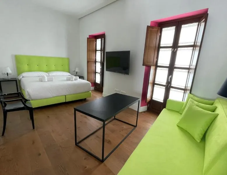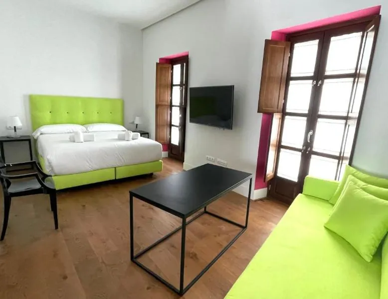 Prime City Center Location: Ritual Alameda Suites in Seville offers a central location with key attractions nearby. Isla Mágica and Barrio Santa Cruz are 1.2 mi away, while Plaza de Armas and the Royal Alcázar of Seville are 1.2 mi from the property. Comfortable Amenities: Guests enjoy a terrace and free WiFi, ensuring a pleasant stay. The apartment features air-conditioning, a kitchenette, and a private bathroom with a walk-in shower. Additional amenities include a washing machine, sofa bed, and work desk. Convenient Services: The property provides private and express check-in and check-out services, a elevator, and a tour desk. Reception staff speak German, English, and Spanish, catering to international visitors. Nearby Activities: Visitors can engage in kayaking or canoeing in the surrounding area. Seville Airport is 5.6 mi away, offering easy access to the city. This spacious apartment consists of 1 living room, 2 separate bedrooms and 2 bathrooms with a shower and free toiletries. The well-equipped kitchen features a refrigerator, kitchenware, a microwave and a toaster. Featuring a terrace, this apartment also provides air conditioning, a washing machine and a flat-screen TV with streaming services. The unit offers 3 beds.